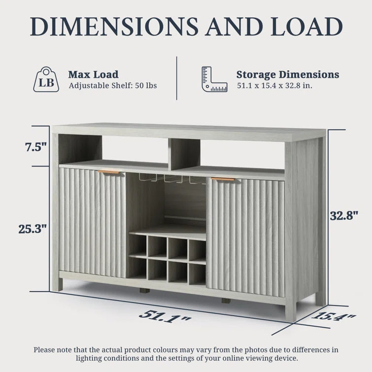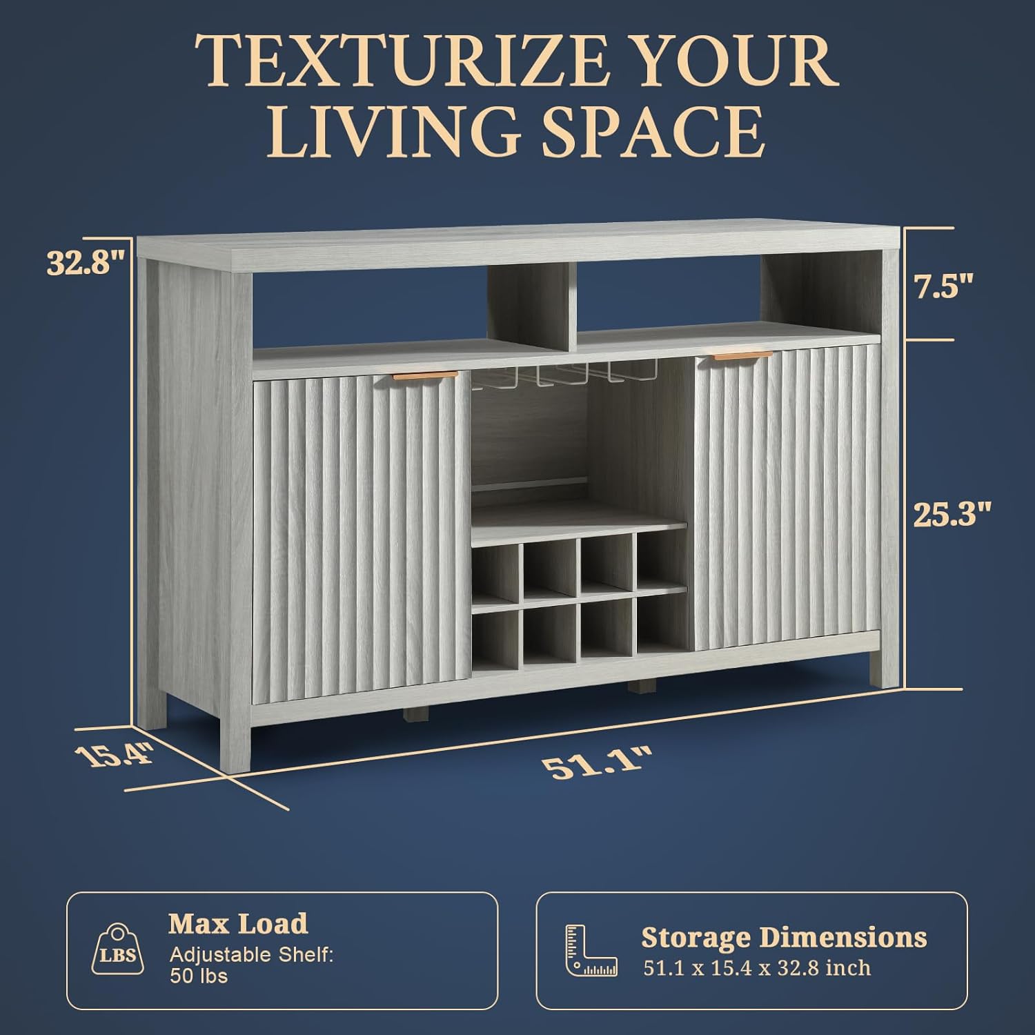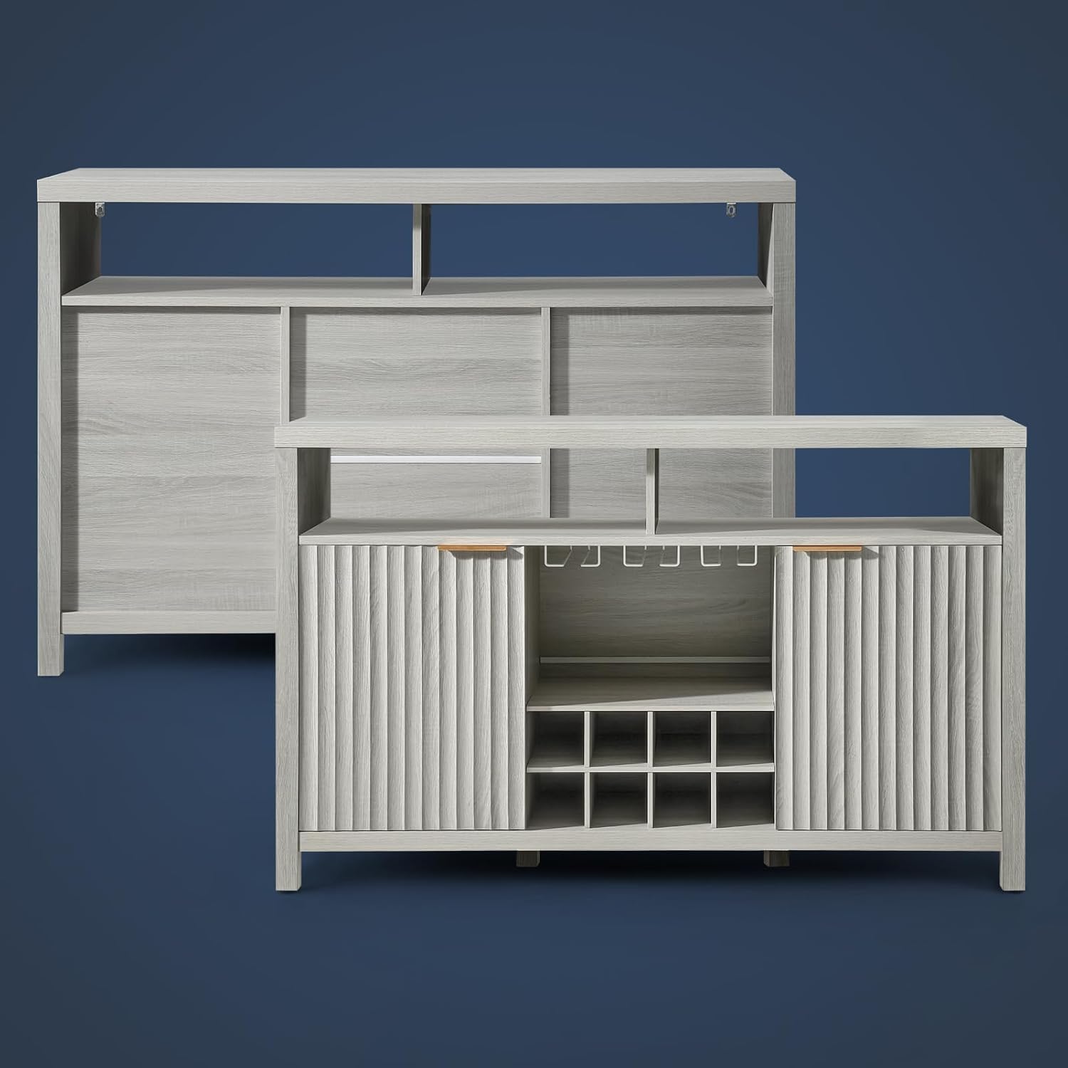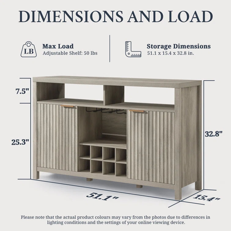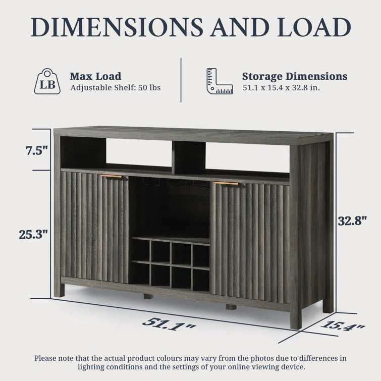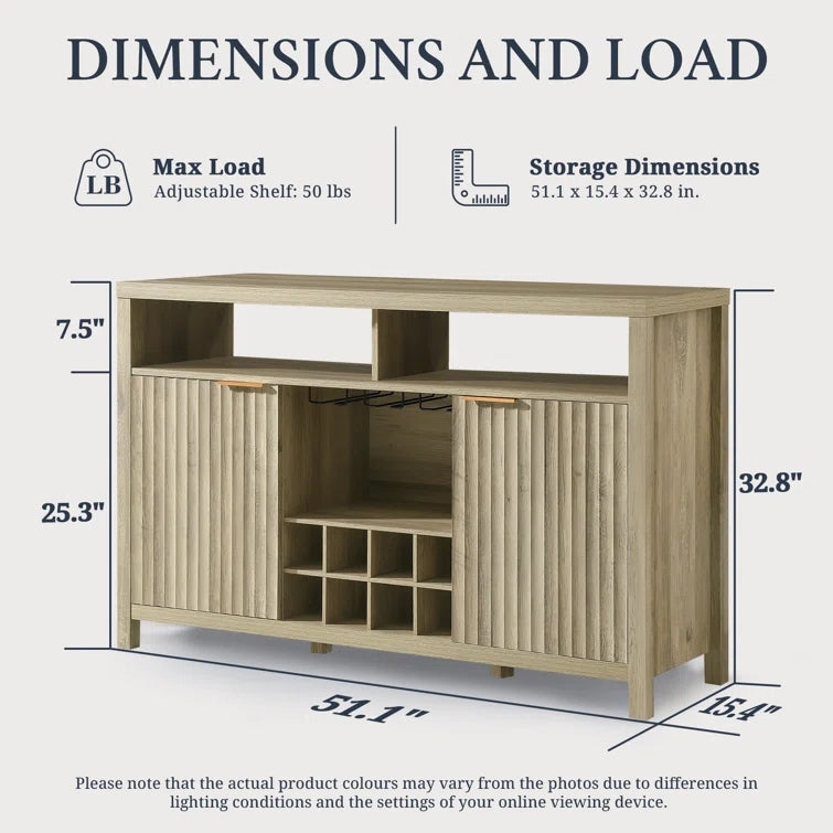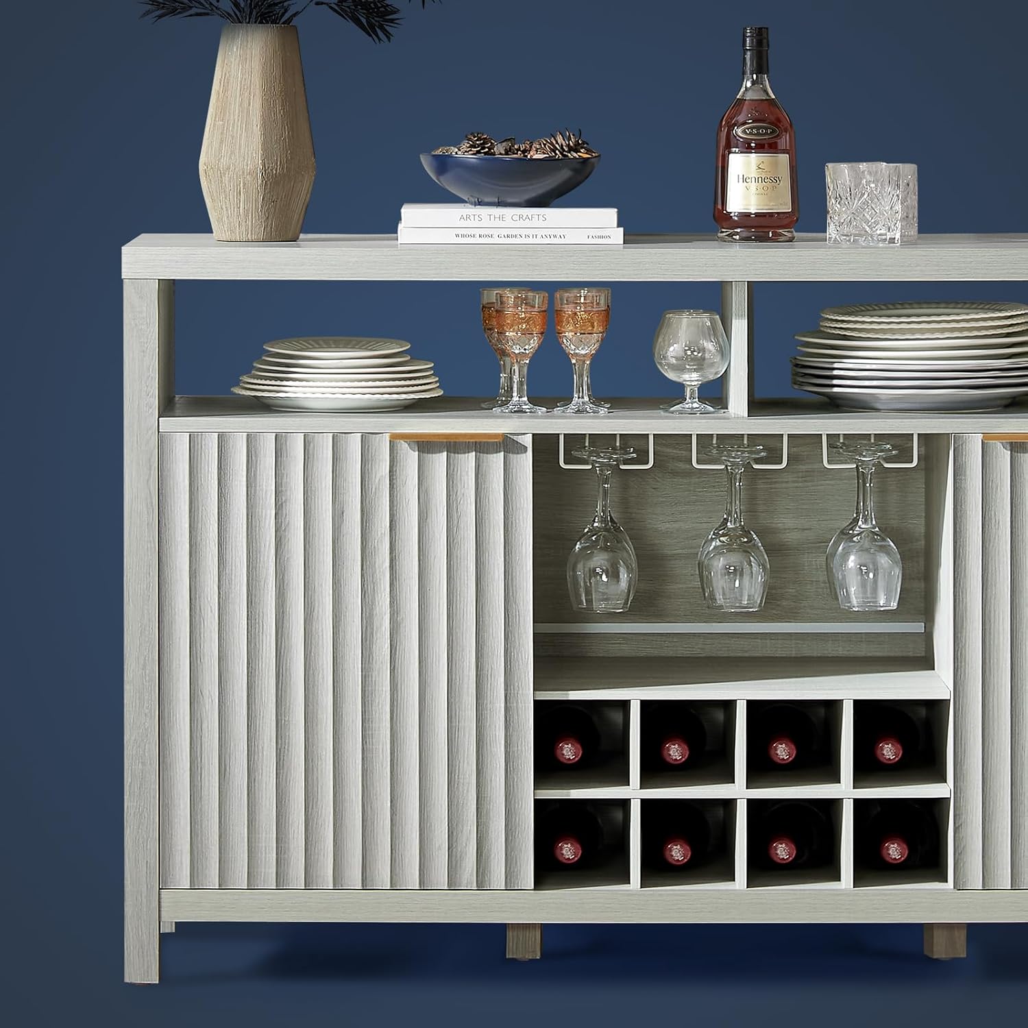 The wine bar cabinet comes complete with a dedicated space for 8 wine bottles and 3 rows of glass racks, providing an ideal solution for your wine collection. With two lockers and two storage compartments, the cabinet offers versatile storage options. The locker partitions are adjustable, allowing you to customize the space to accommodate a variety of storage needs.