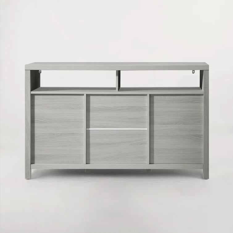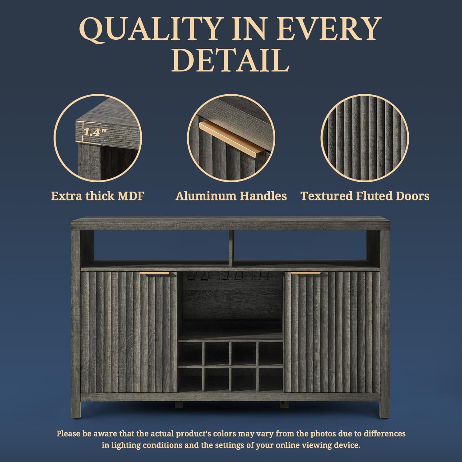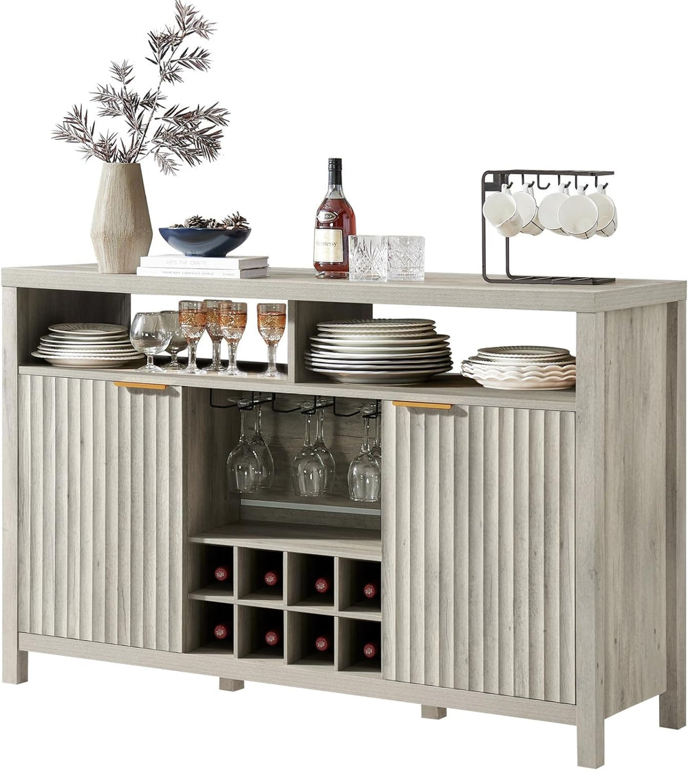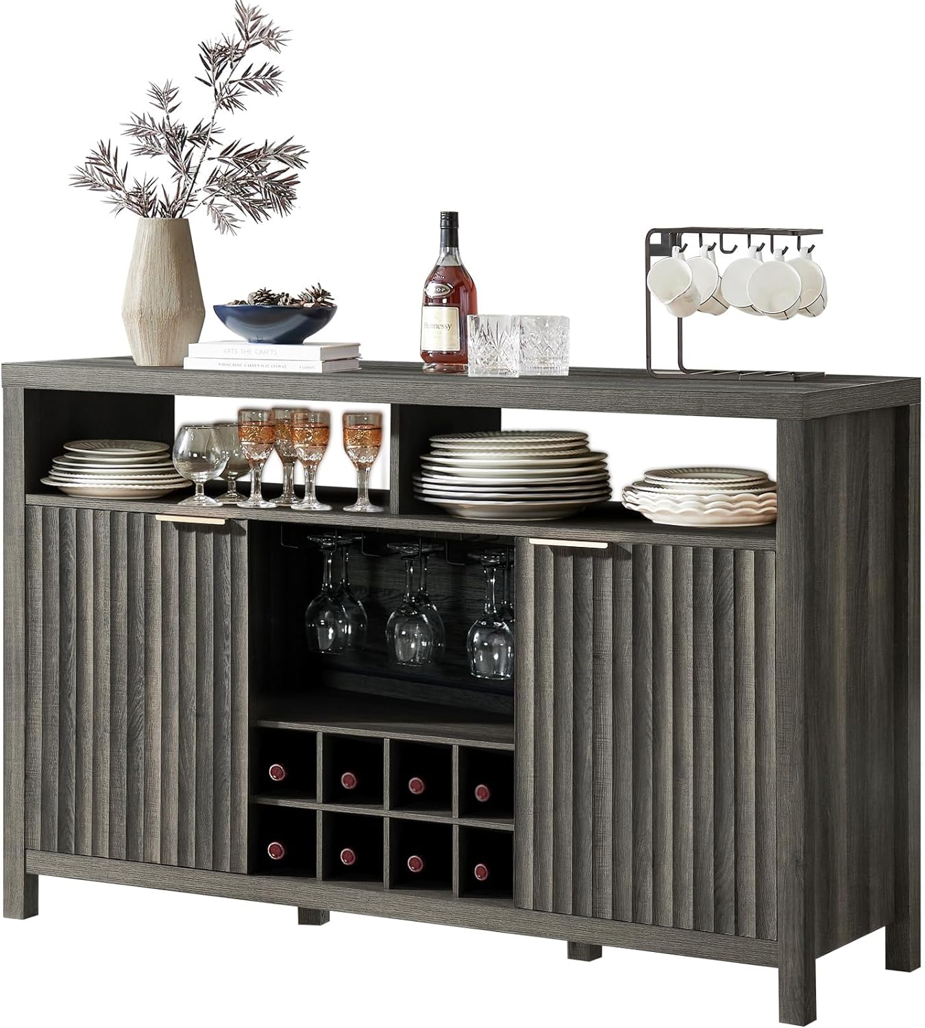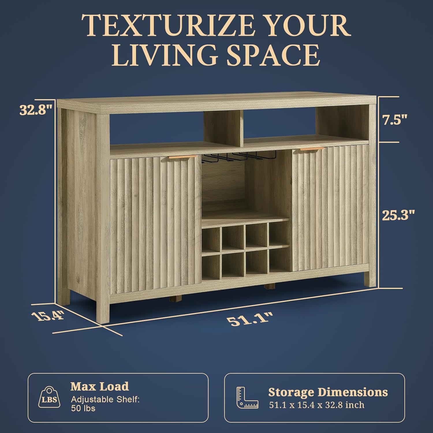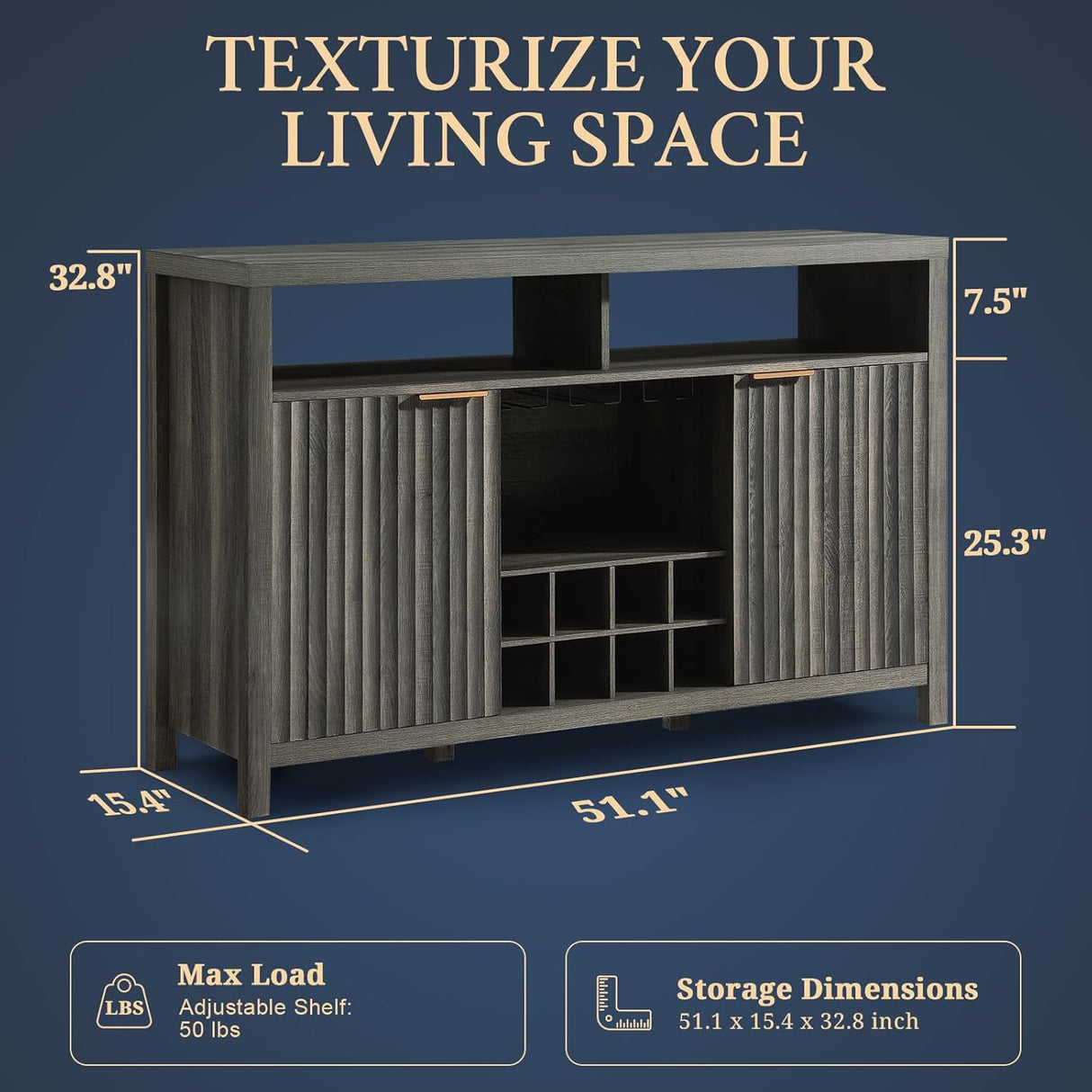 The wine bar cabinet comes complete with a dedicated space for 8 wine bottles and 3 rows of glass racks, providing an ideal solution for your wine collection. With two lockers and two storage compartments, the cabinet offers versatile storage options. The locker partitions are adjustable, allowing you to customize the space to accommodate a variety of storage needs.