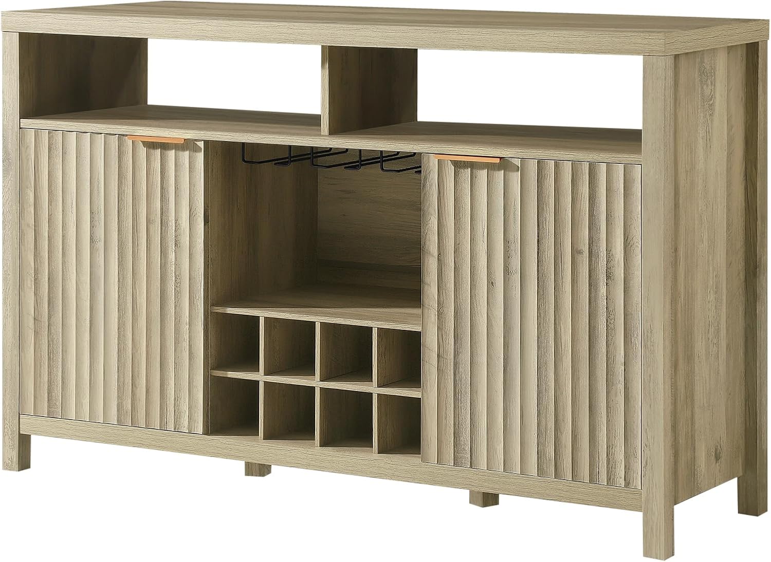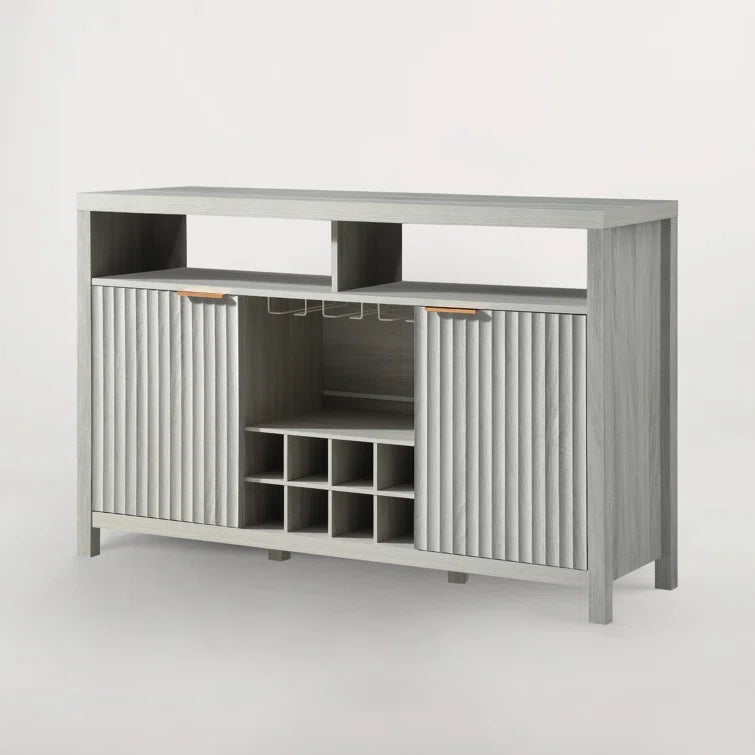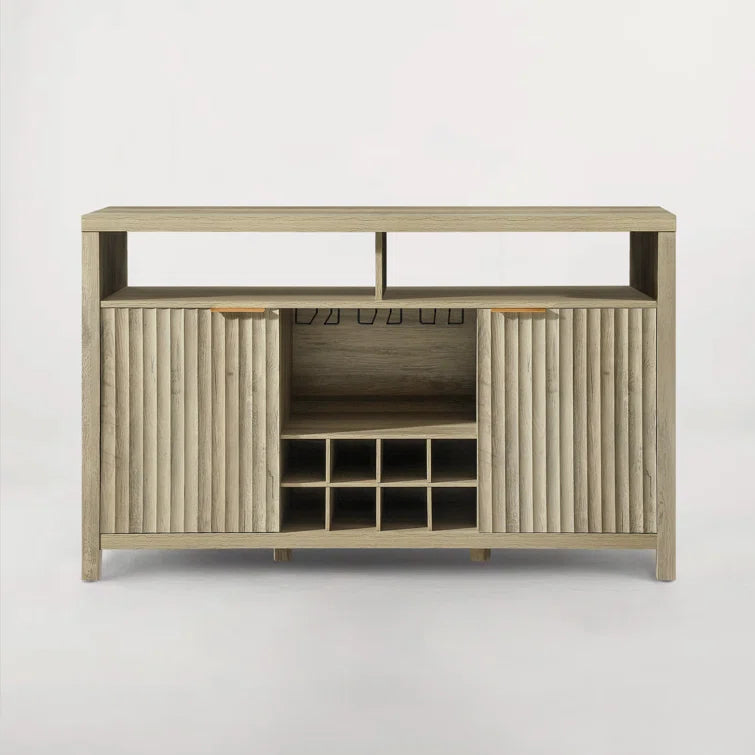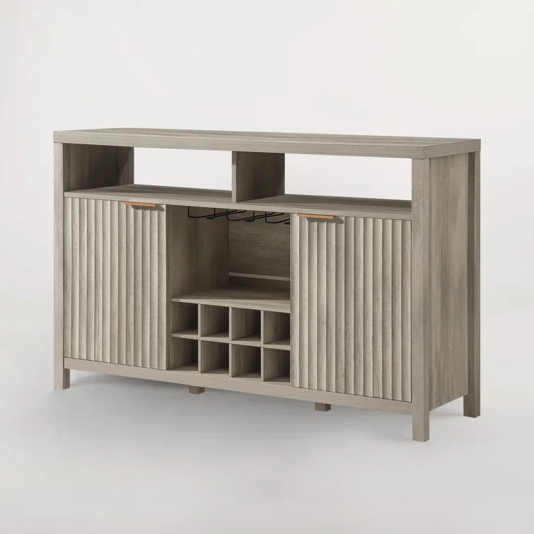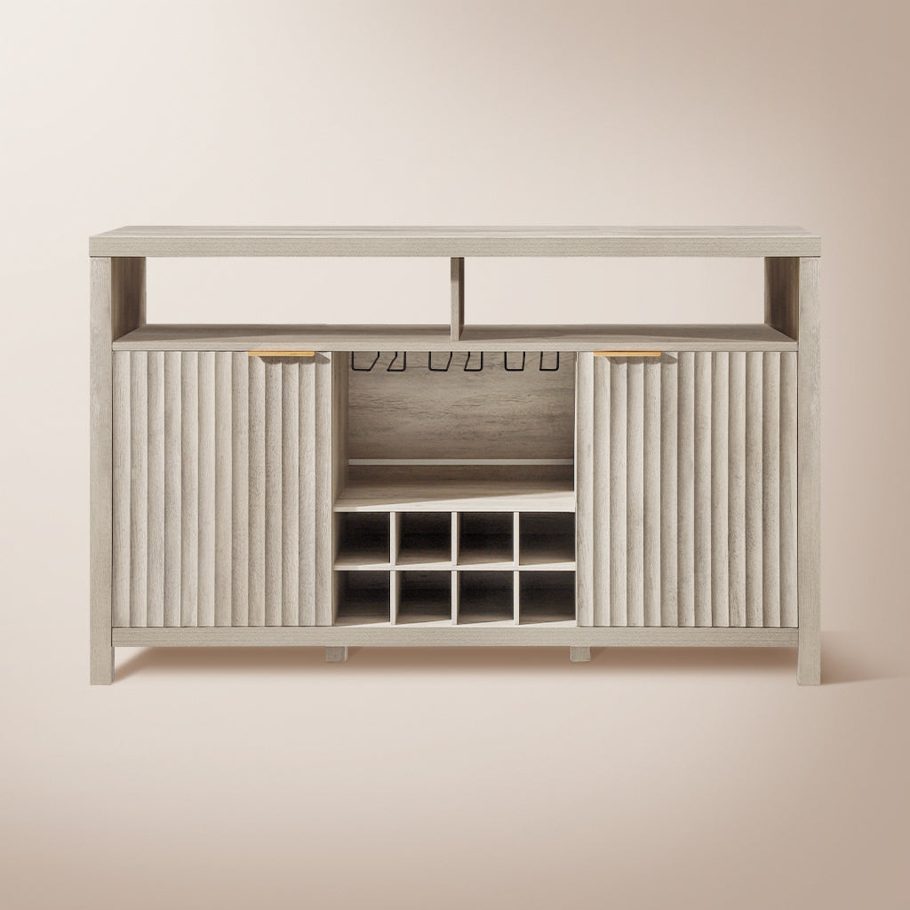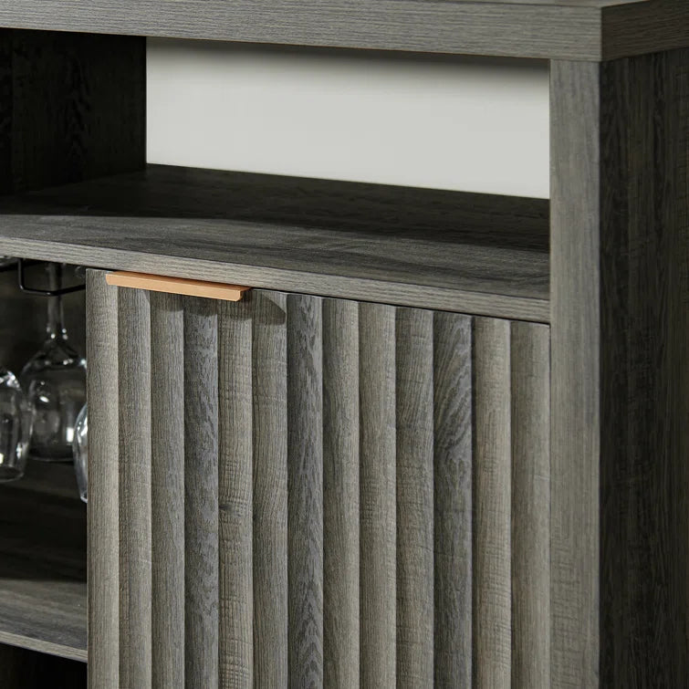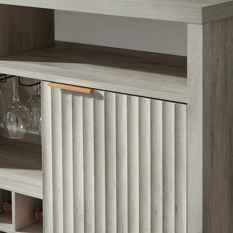 Wooden Fluted Mid Century 32.8" Tall Liquor Bar Cabinets - Sunwashed Ash Oak / 1PC / Exterior Grade MDF Board is backordered and will ship as soon as it is back in stock.