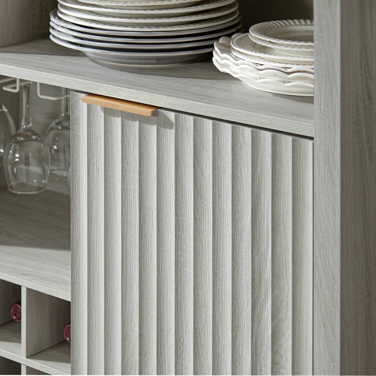 Wooden Fluted Mid Century 32.8" Tall Liquor Bar Cabinets