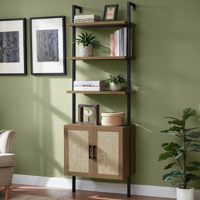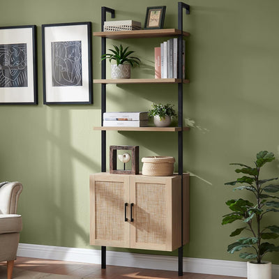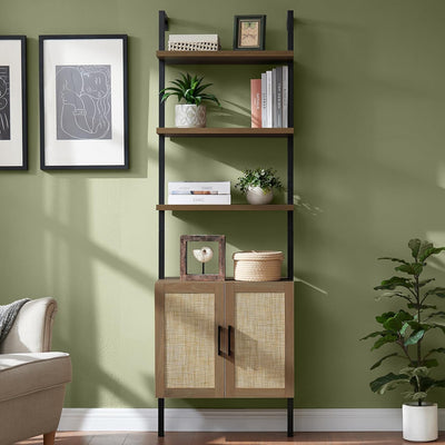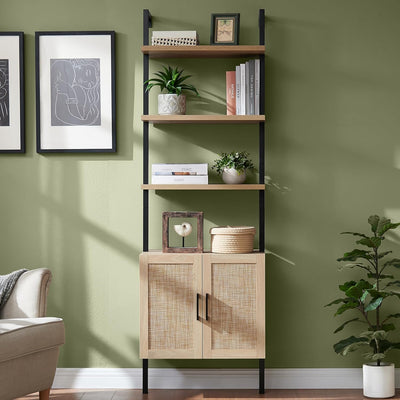 Rattan Ladder 5 Tier Open Tall Bookshelf