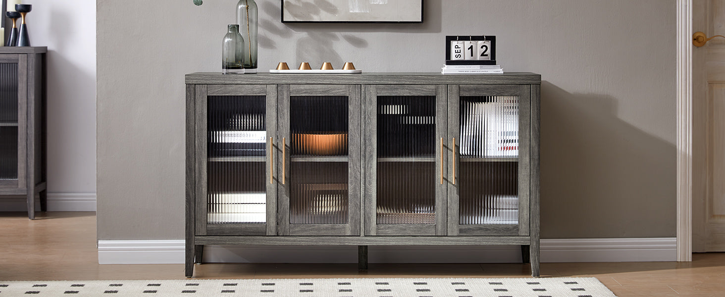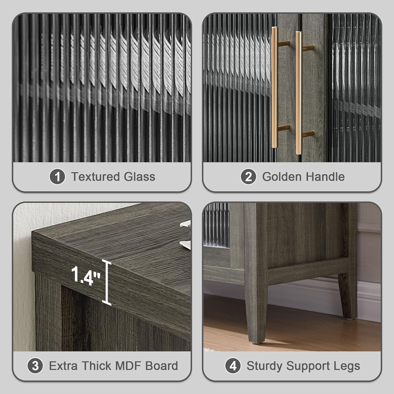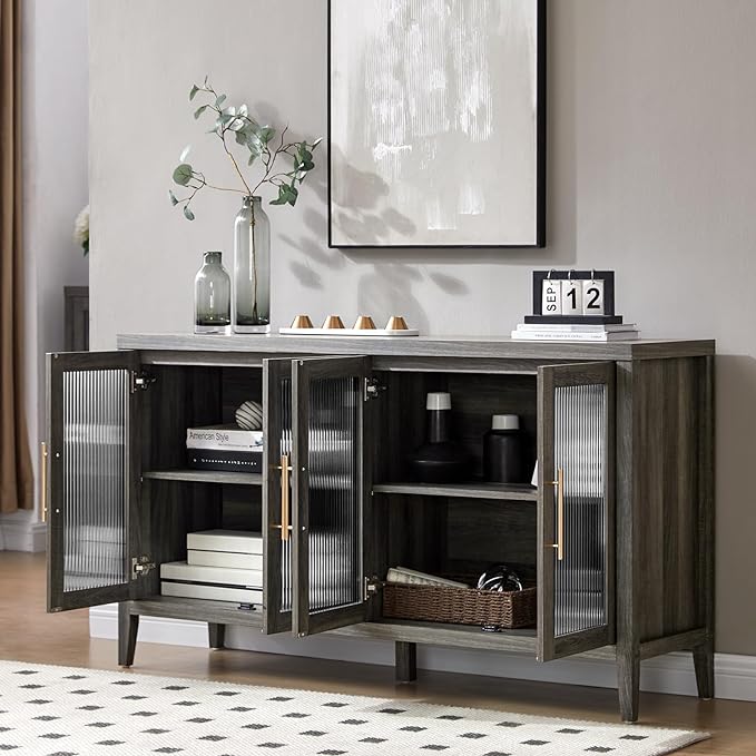 {"materialstitle":"Quality in Every Detail","image":"https://cdn.shopify.com/s/files/1/0780/4230/0713/files/1_e0581d60-fedb-4459-a2f3-807e3dffbf27.jpg?v=1722236046","paragraph":["This storage cabinet features four doors with elegant fluted glass, creating a chic and sophisticated look. The fluted glass design allows light to refract beautifully, adding a subtle, misty effect to your space. Perfect for creating a warm and inviting ambiance in any room!","【Flexible Layered Design】 The sideboard cabinet offers spacious storage with two large compartments. Inside, the kitchen buffet storage cabinet features removable shelves with three adjustable heights, allowing you to customize the storage space to suit your needs. Ideal for keeping your living and dining areas organized.","【Multifunctional Cabinet】Whether used as a credenza, accent cabinet, console cabinet, or bar cabinet, this versatile piece fits seamlessly into any room. Perfect for the living room, dining room, entryway, bedroom, or even as a TV stand. The multifunctional design adds both style and functionality to your home.","【Easy to Assemble】Each component of the entryway cabinet is labeled, and the accompanying instructions feature detailed illustrations for every step. Unbox and assemble your storage cabinet within 30 minutes, with no need for complex tools or professional expertise—easy and quick installation."]}