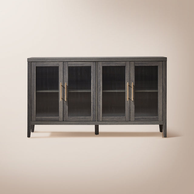 This storage cabinet has four doors and features elegant fluted glass for a chic and sophisticated look. The fluted glass design allows light to be perfectly refracted, adding a subtle mist effect to your space.
