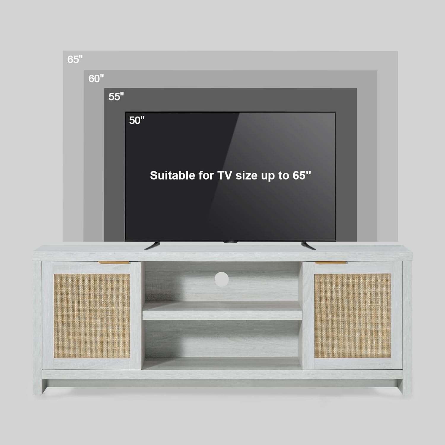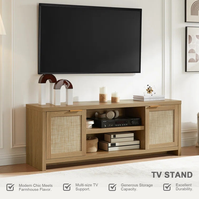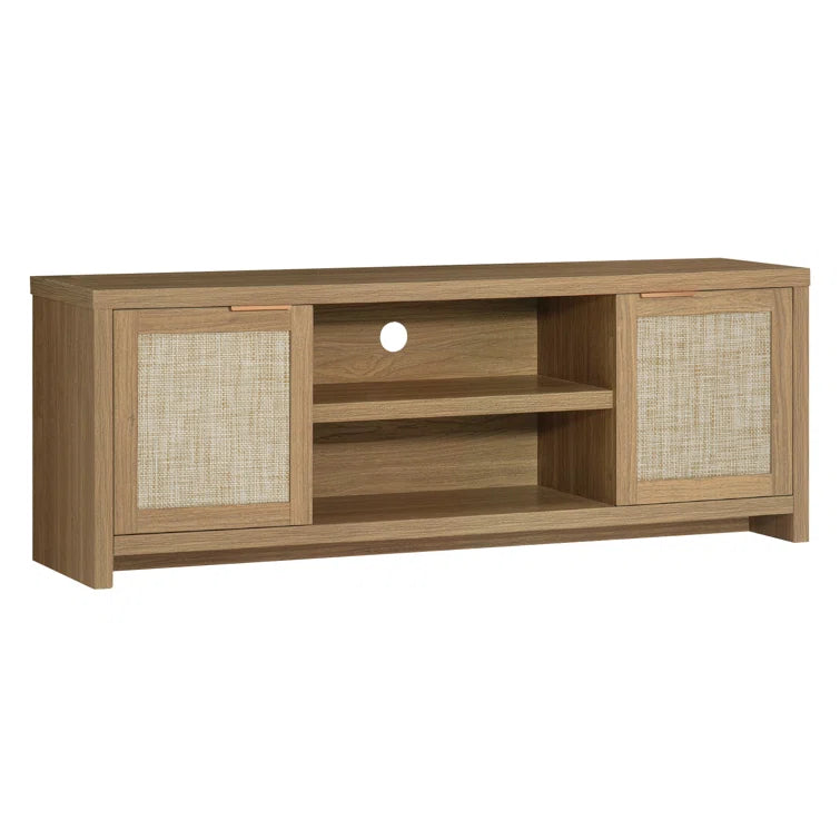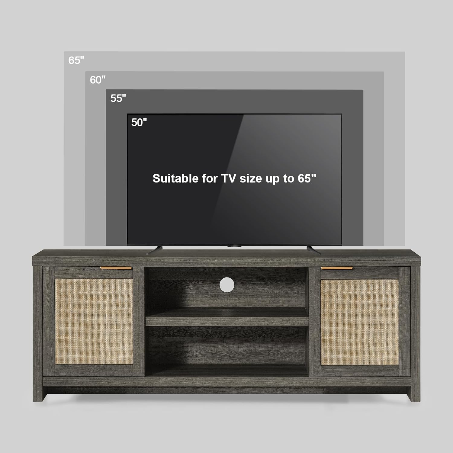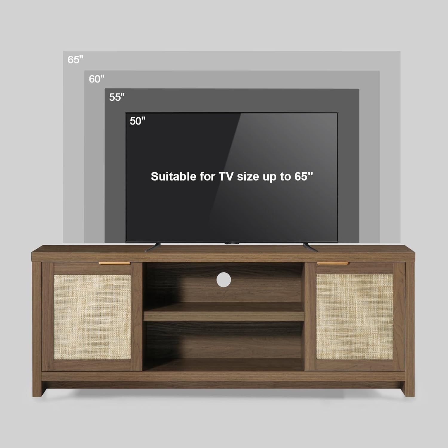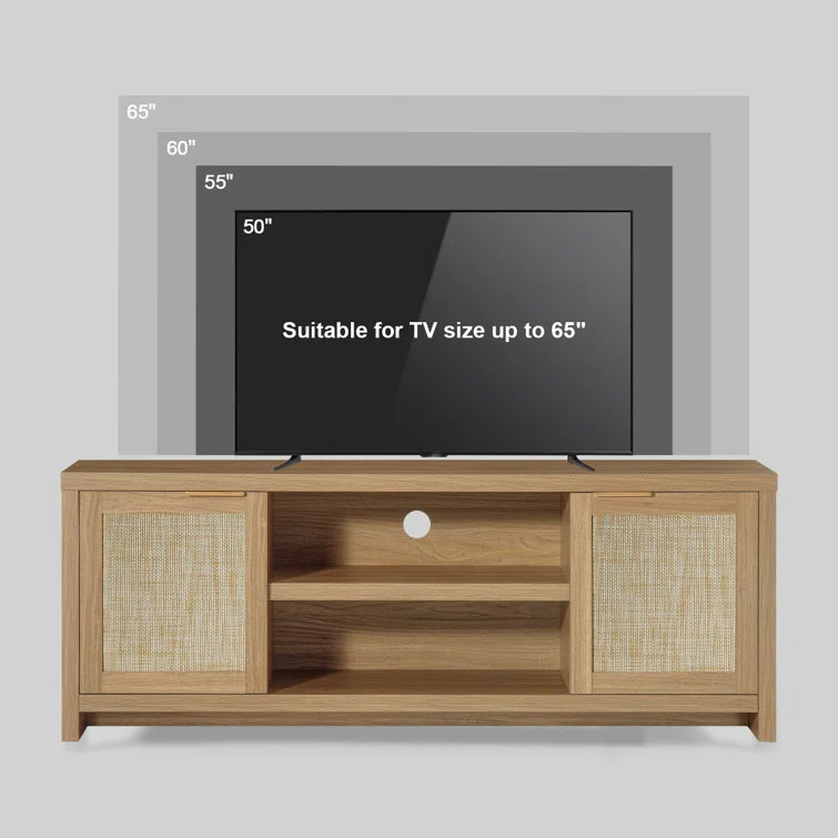 Rattan 65-Inch TV Stand with 2-Door Storage