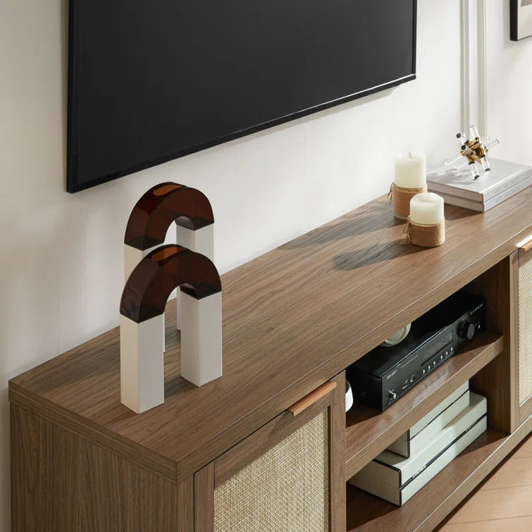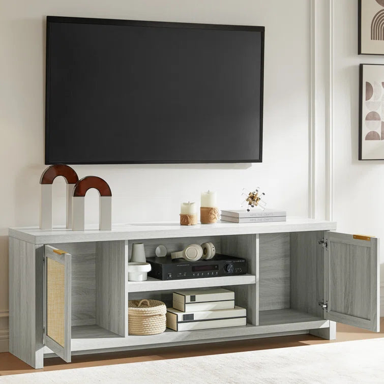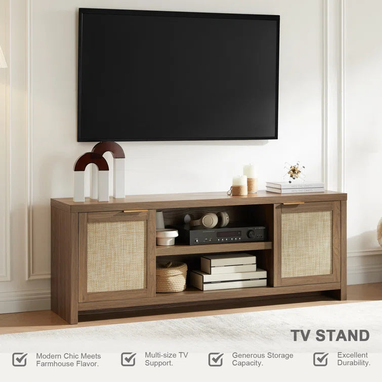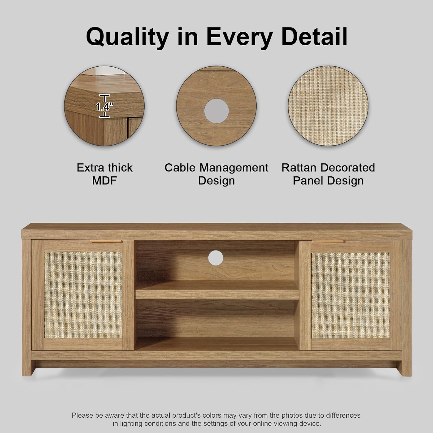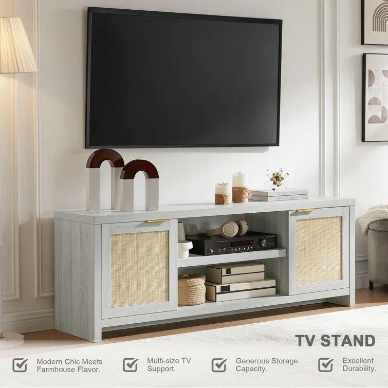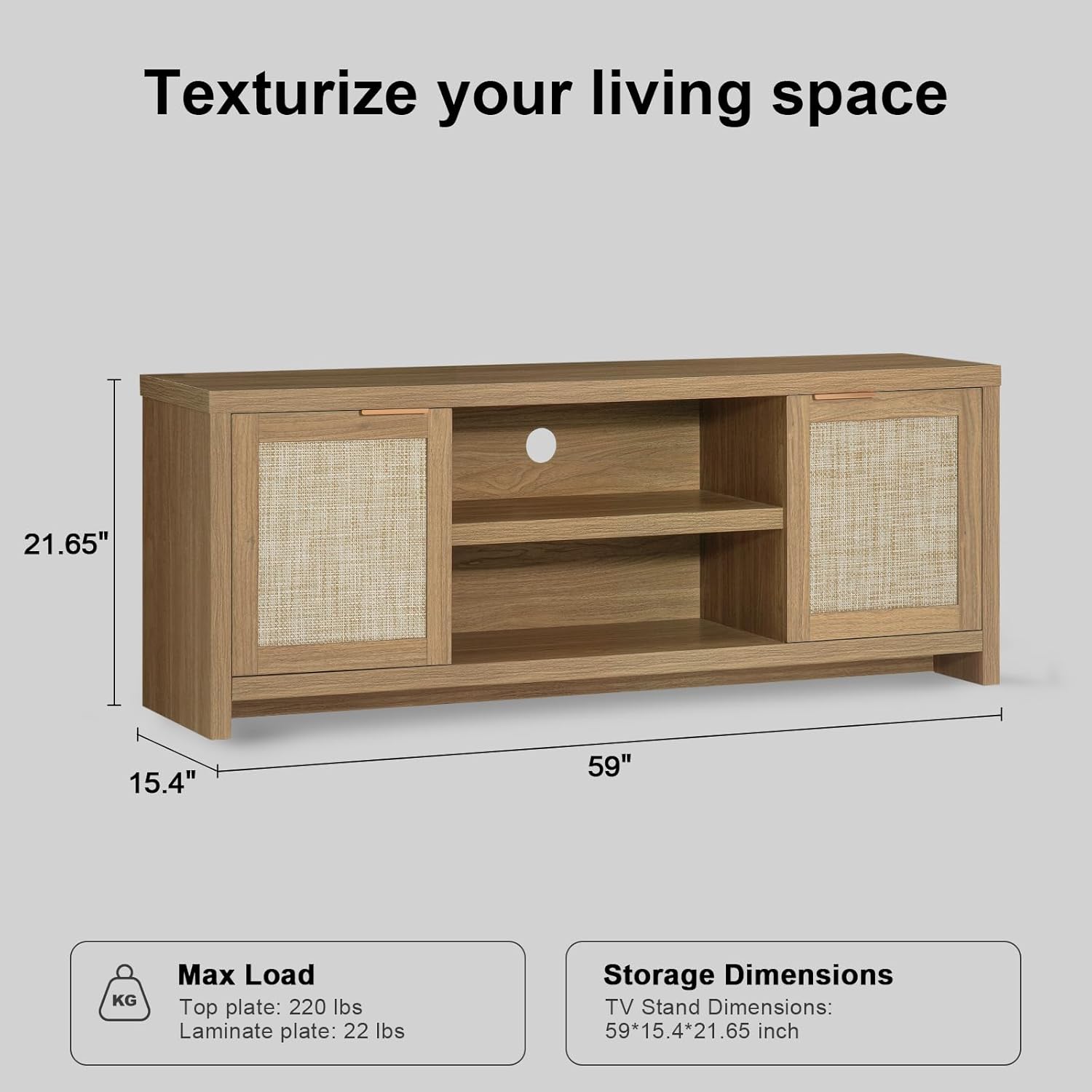 Rattan 65-Inch TV Stand with 2-Door Storage