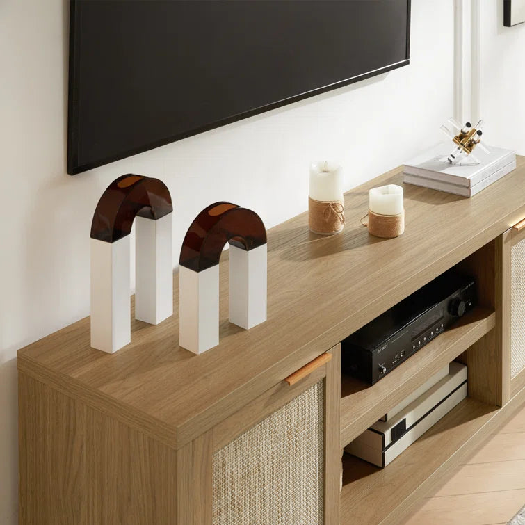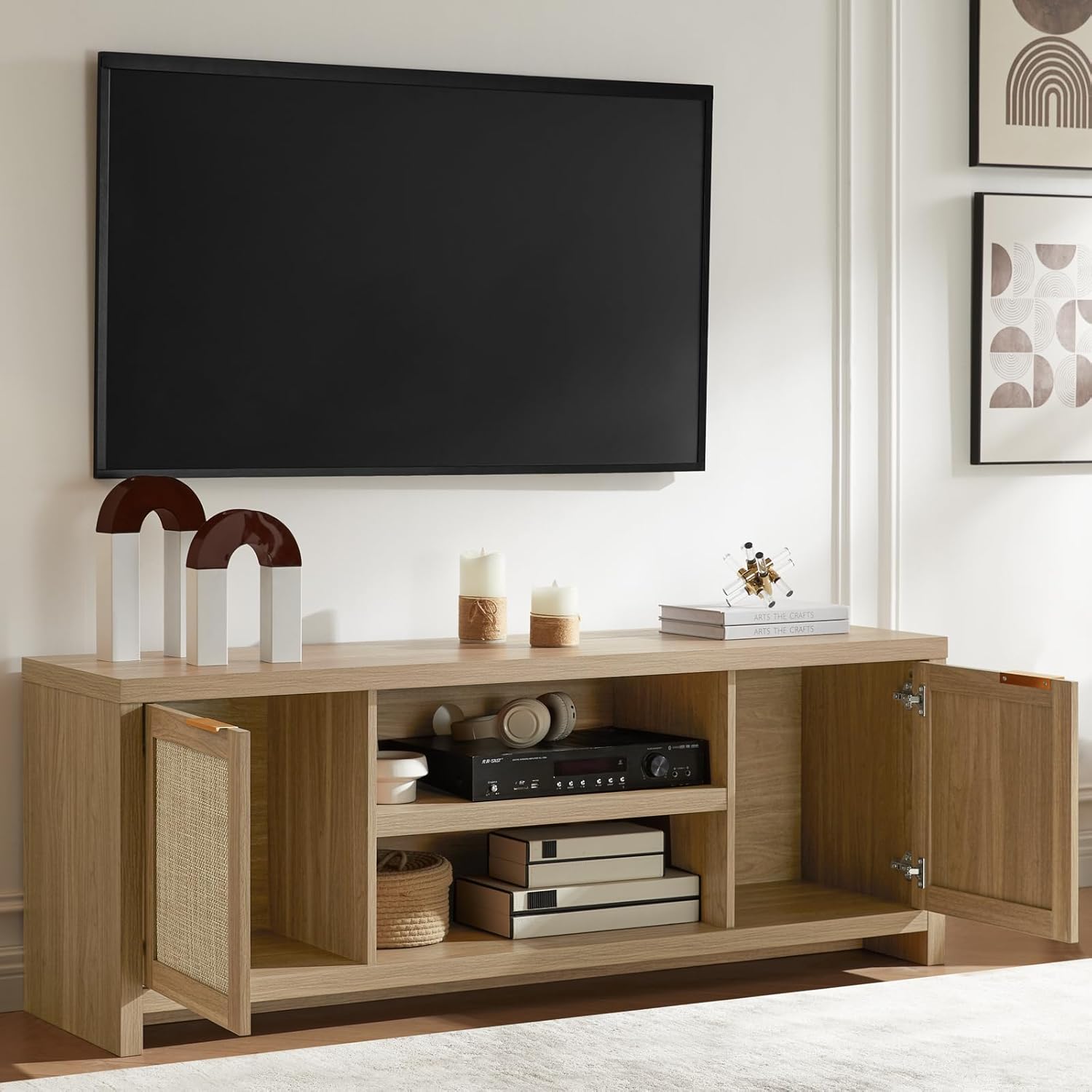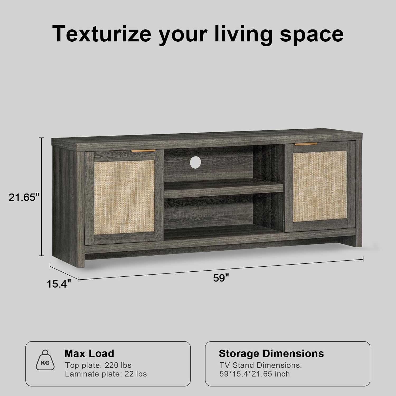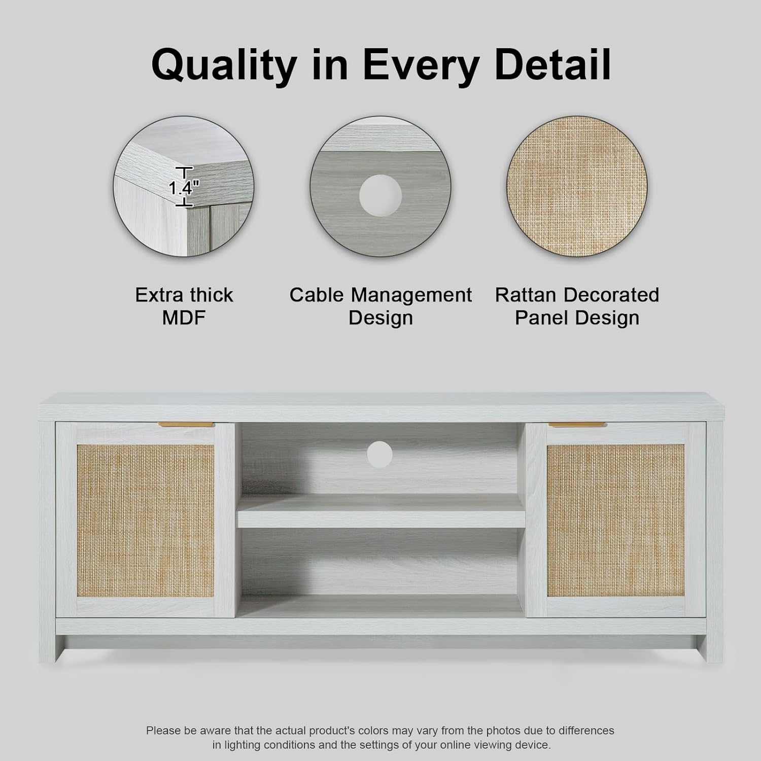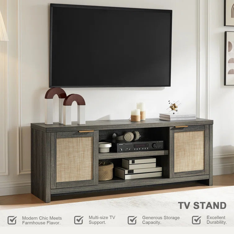 Rattan 65-Inch TV Stand with 2-Door Storage