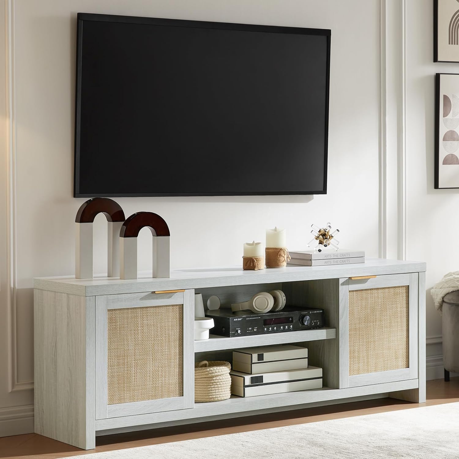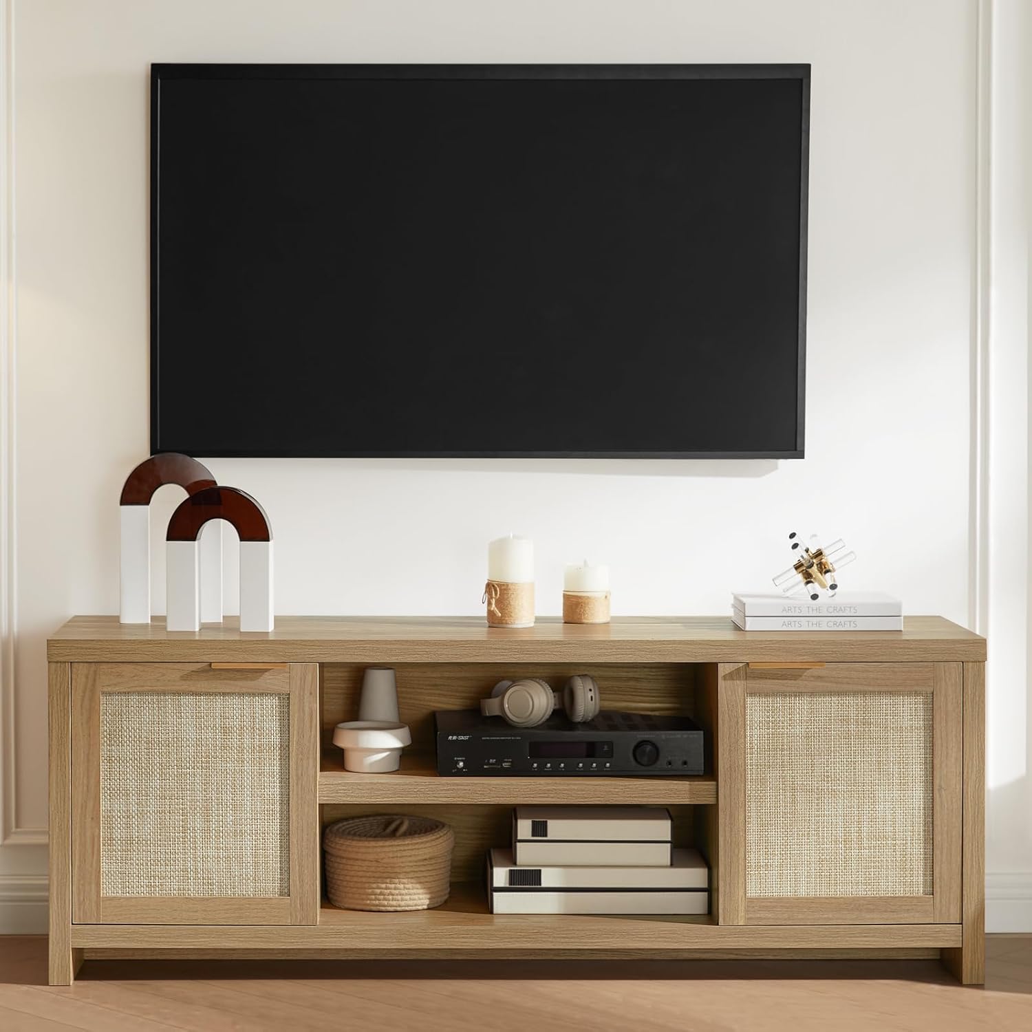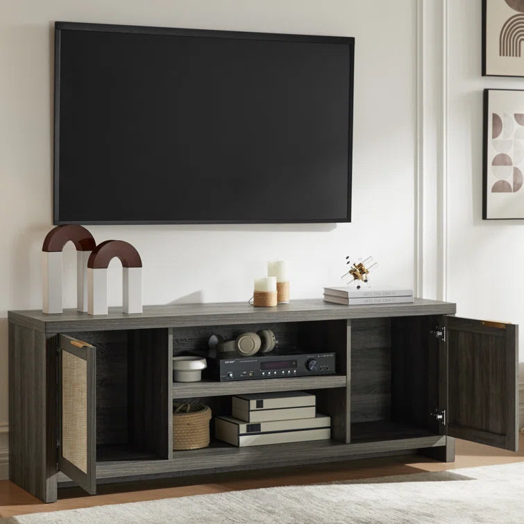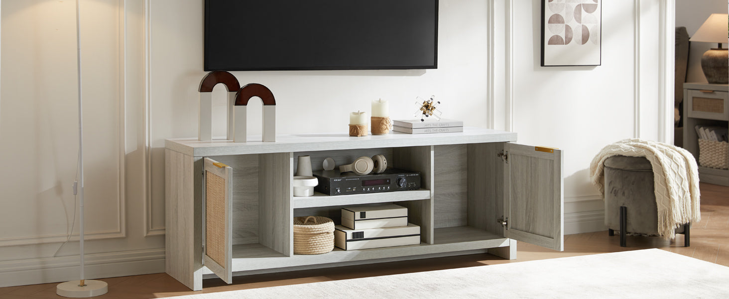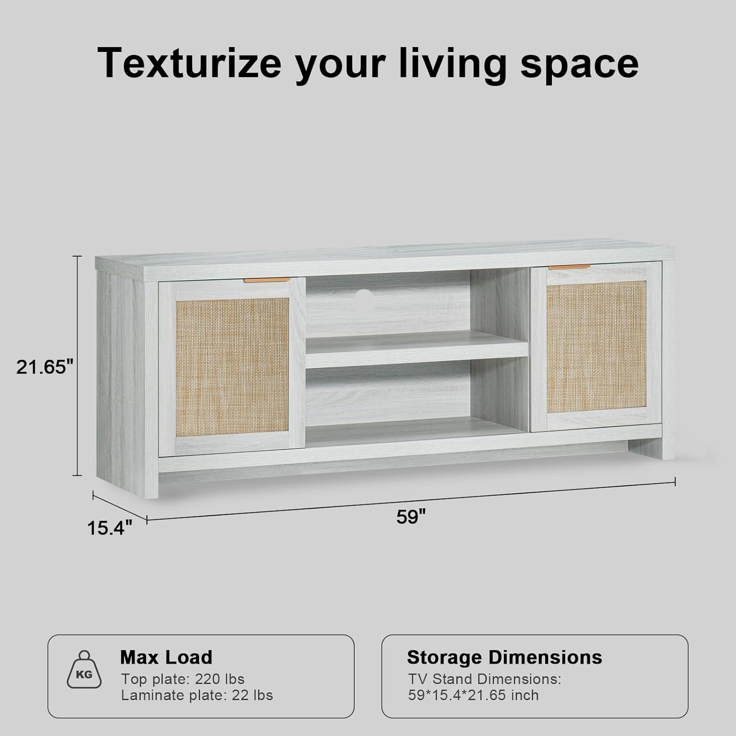 Rattan 65-Inch TV Stand with 2-Door Storage