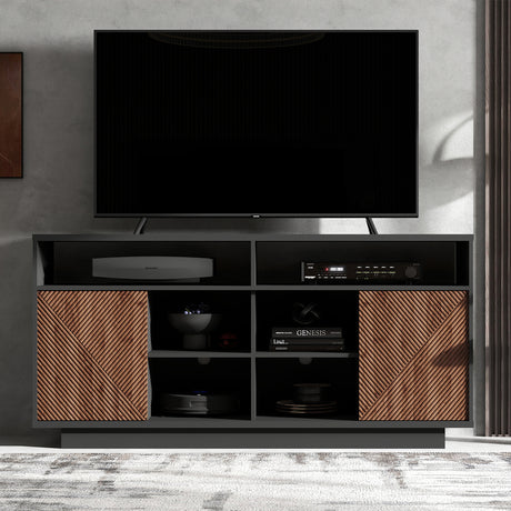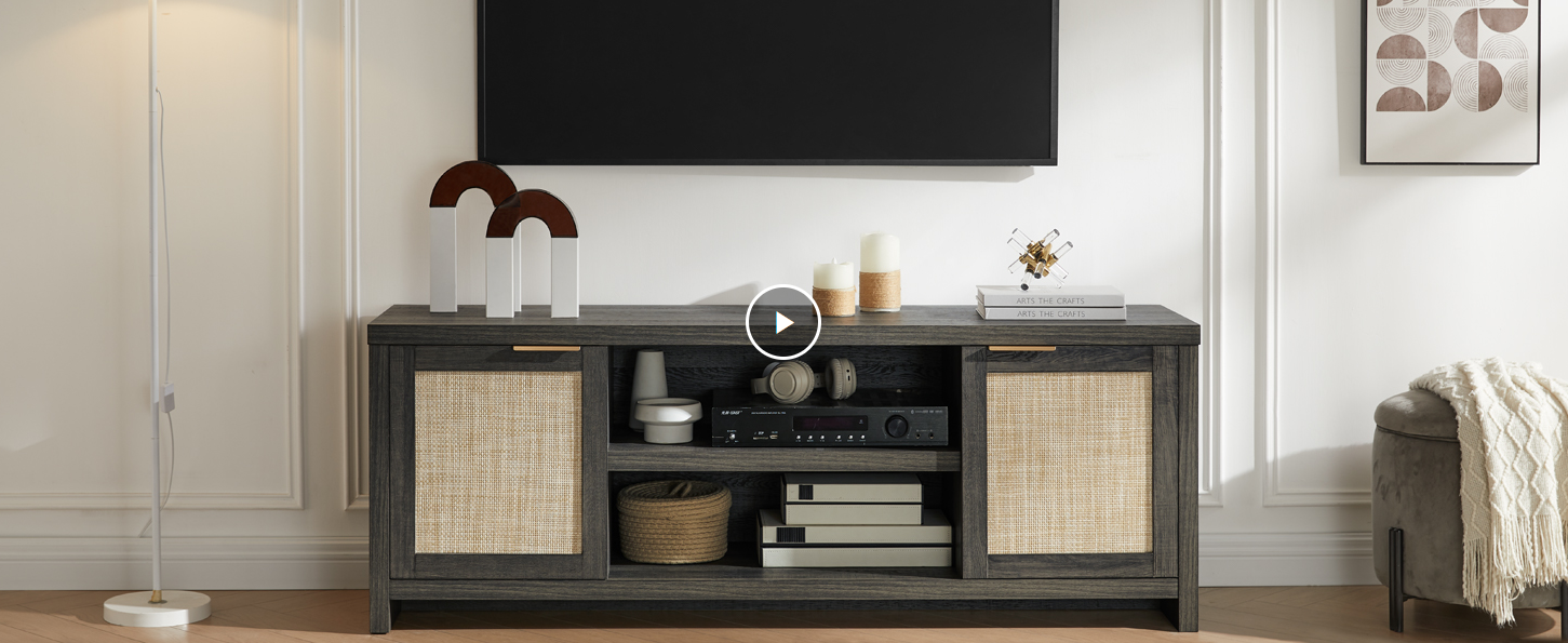 Rattan 65-Inch TV Stand with 2-Door Storage - Midnight Oak / 1PC / Engineered Wood is backordered and will ship as soon as it is back in stock.