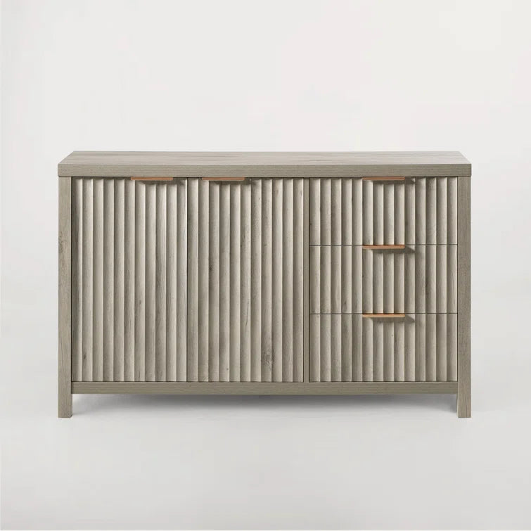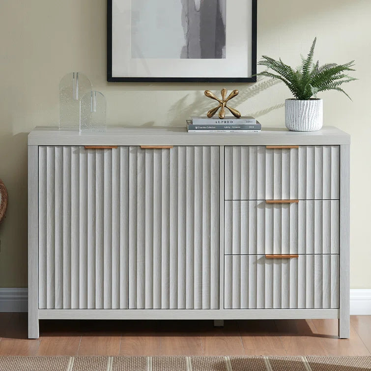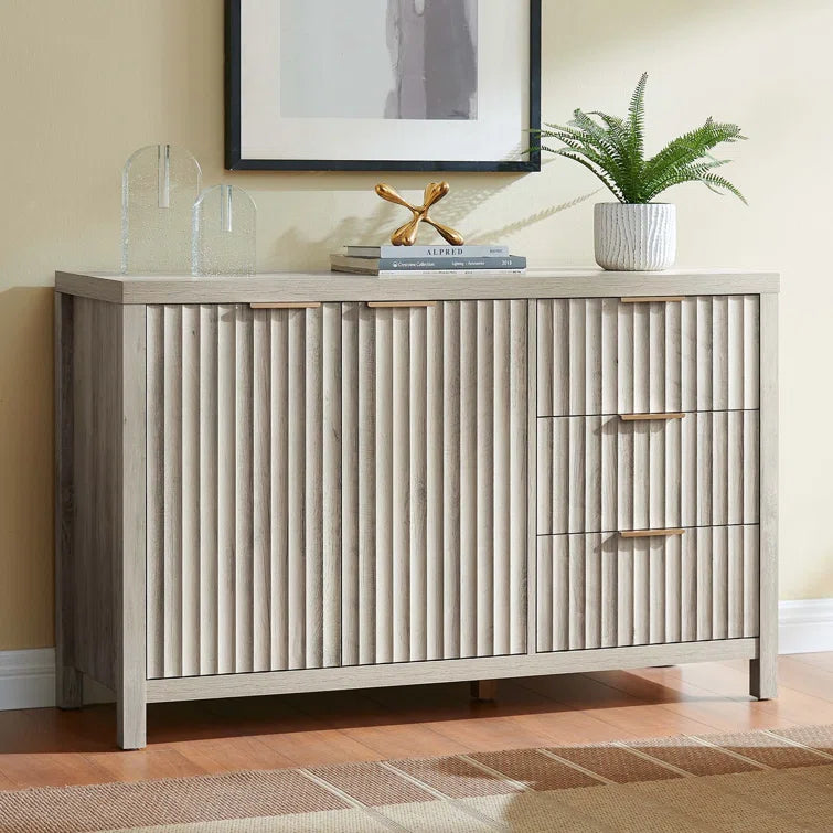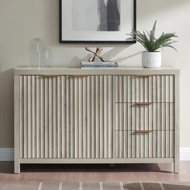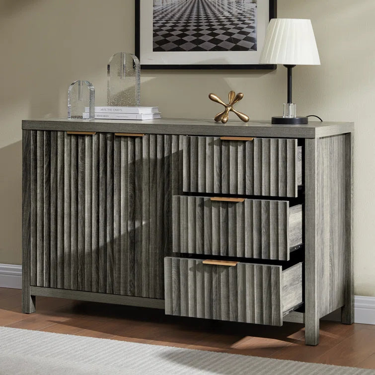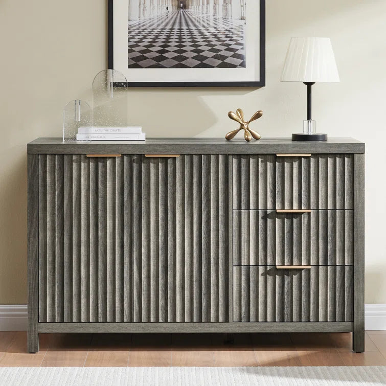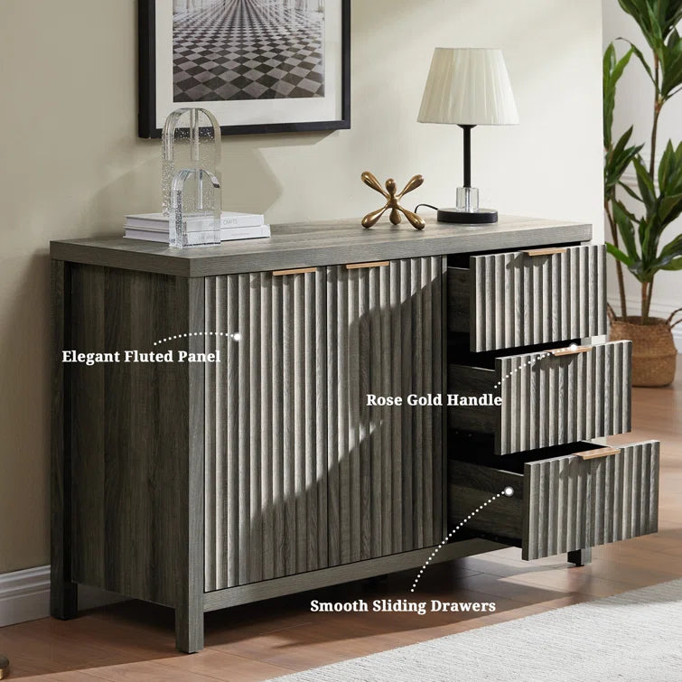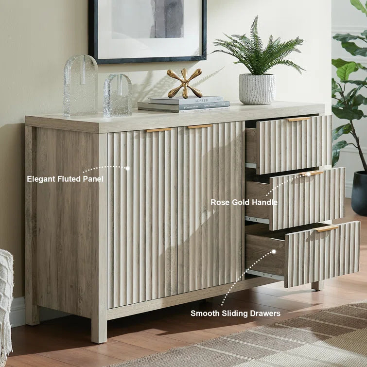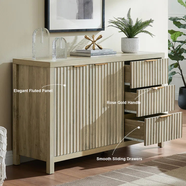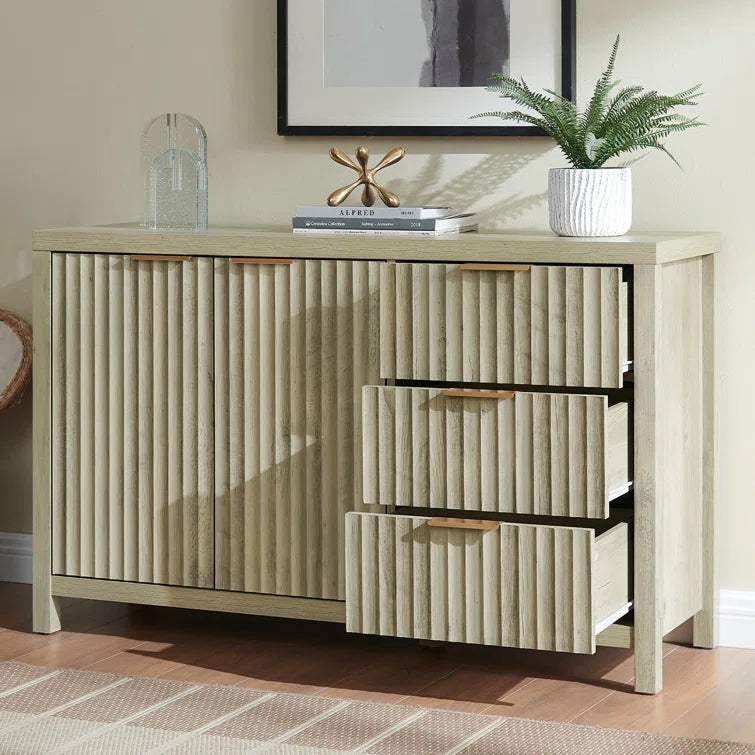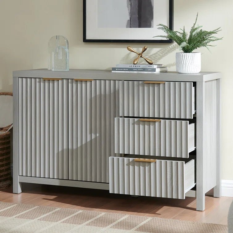 The design of this cabinet is amazing! The fluted wood adds texture, and the clean lines give it a contemporary feel. I was able to fit a lot of my dining room essentials inside, and the drawers are perfect for things like serving utensils and tablecloths. A stylish, yet practical addition to my home!