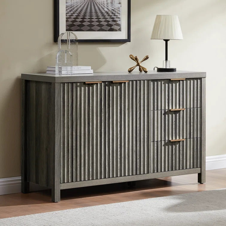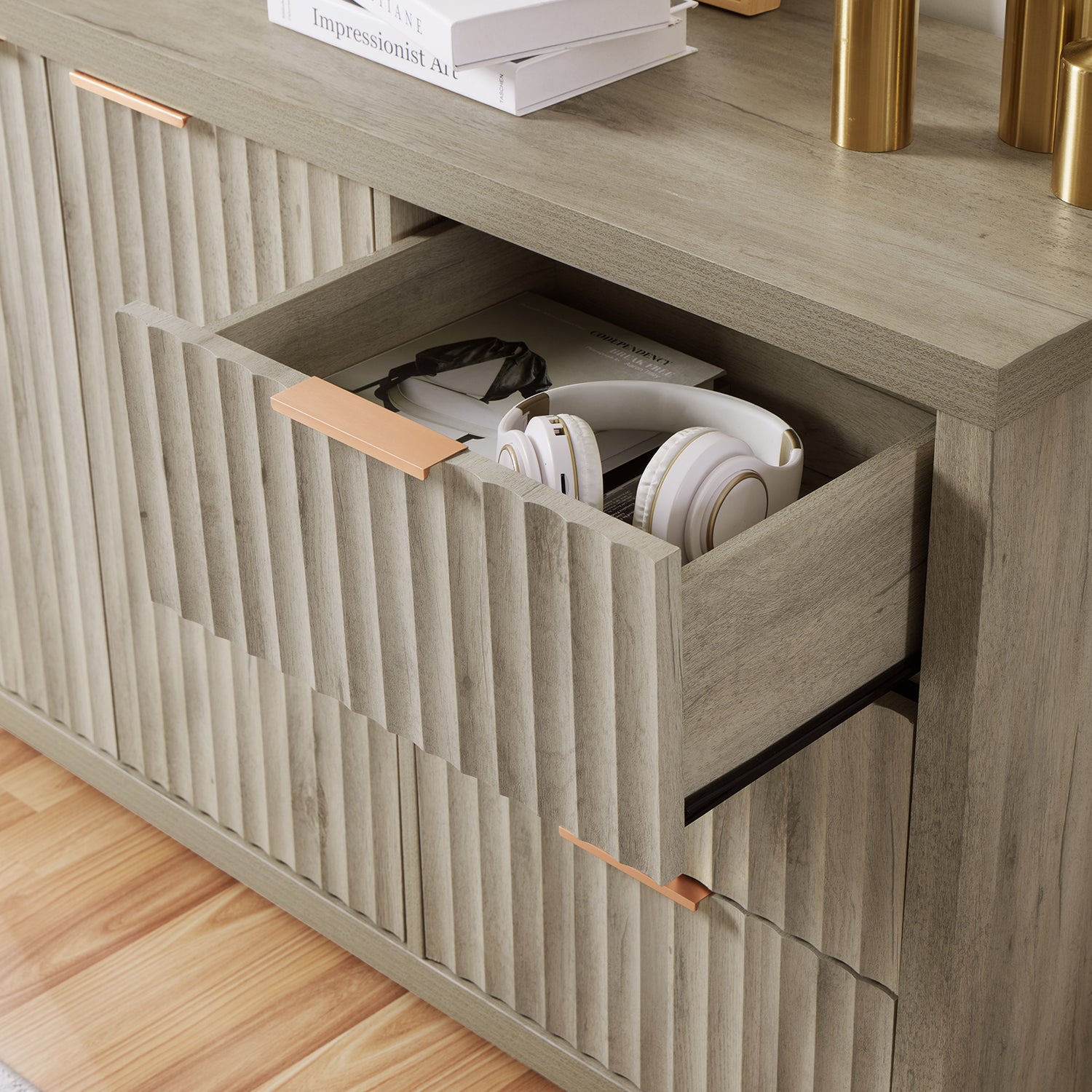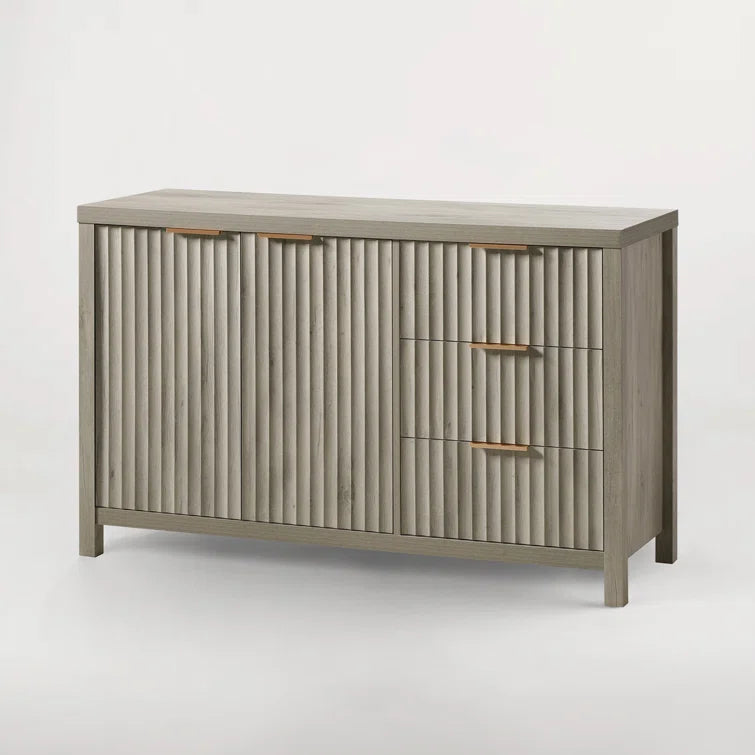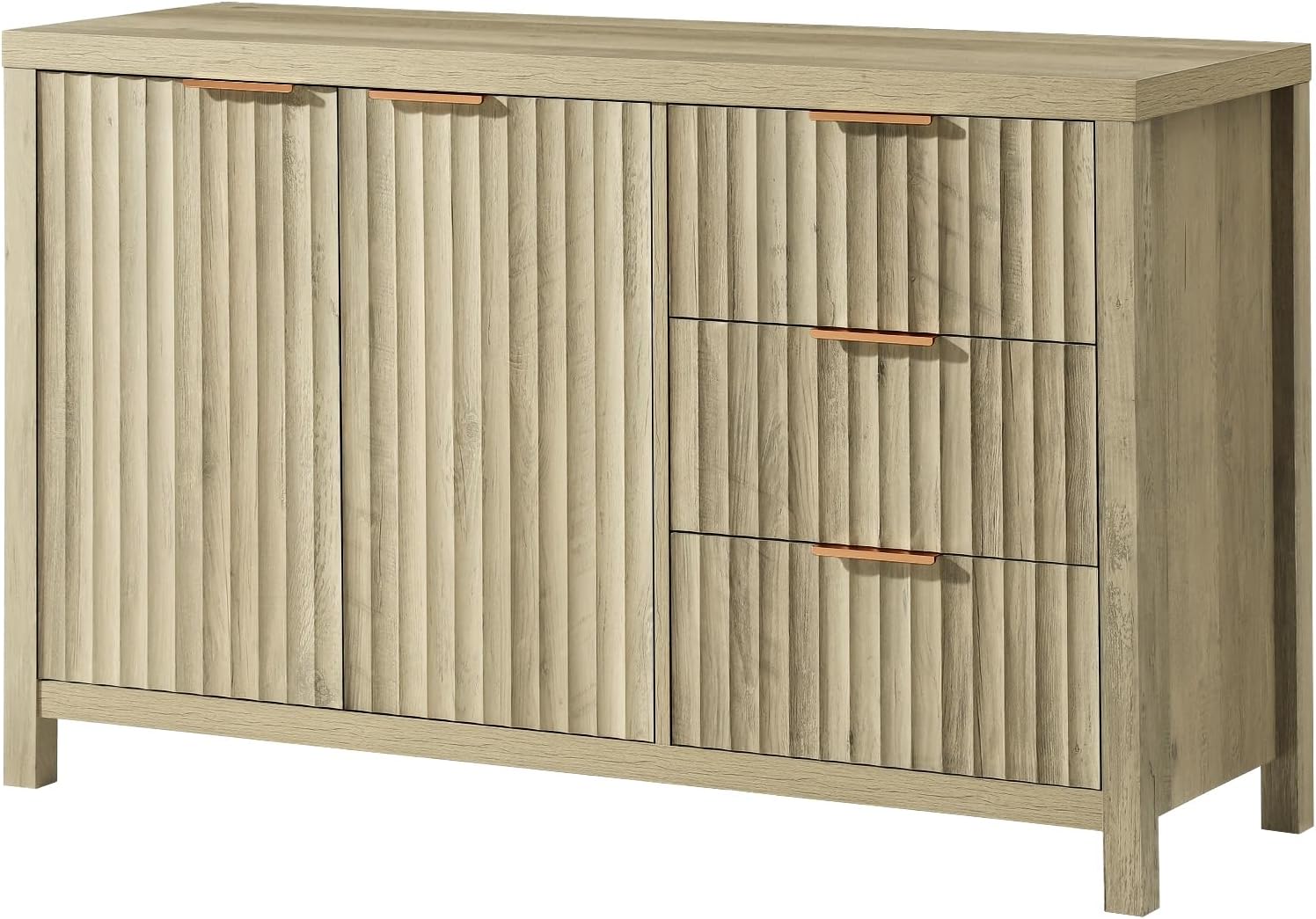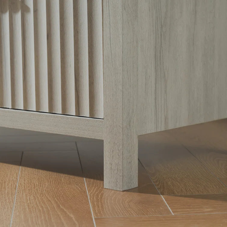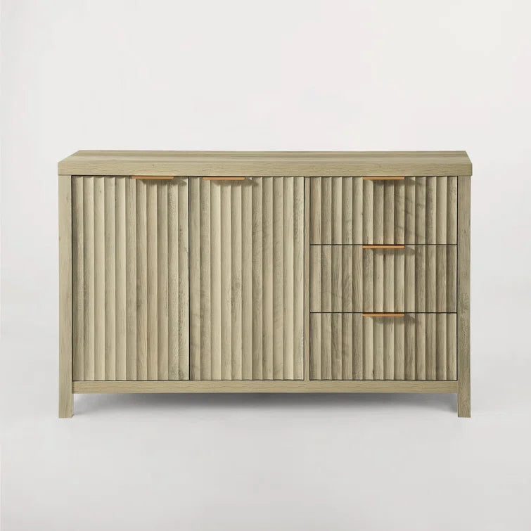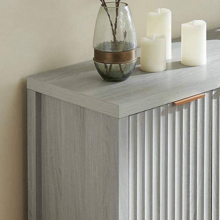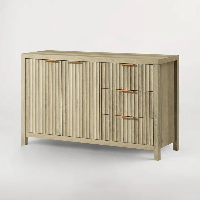 The design of this cabinet is amazing! The fluted wood adds texture, and the clean lines give it a contemporary feel. I was able to fit a lot of my dining room essentials inside, and the drawers are perfect for things like serving utensils and tablecloths. A stylish, yet practical addition to my home!