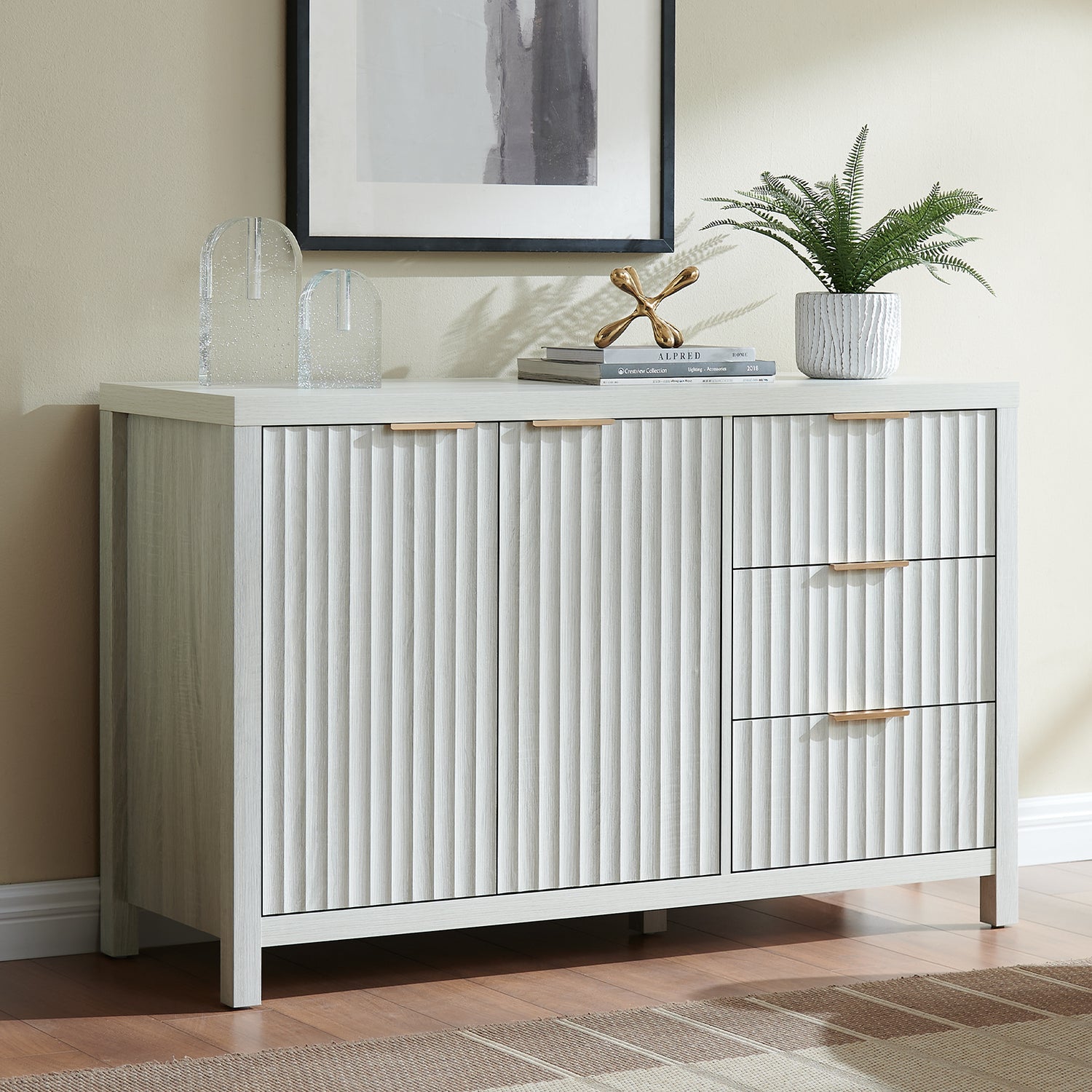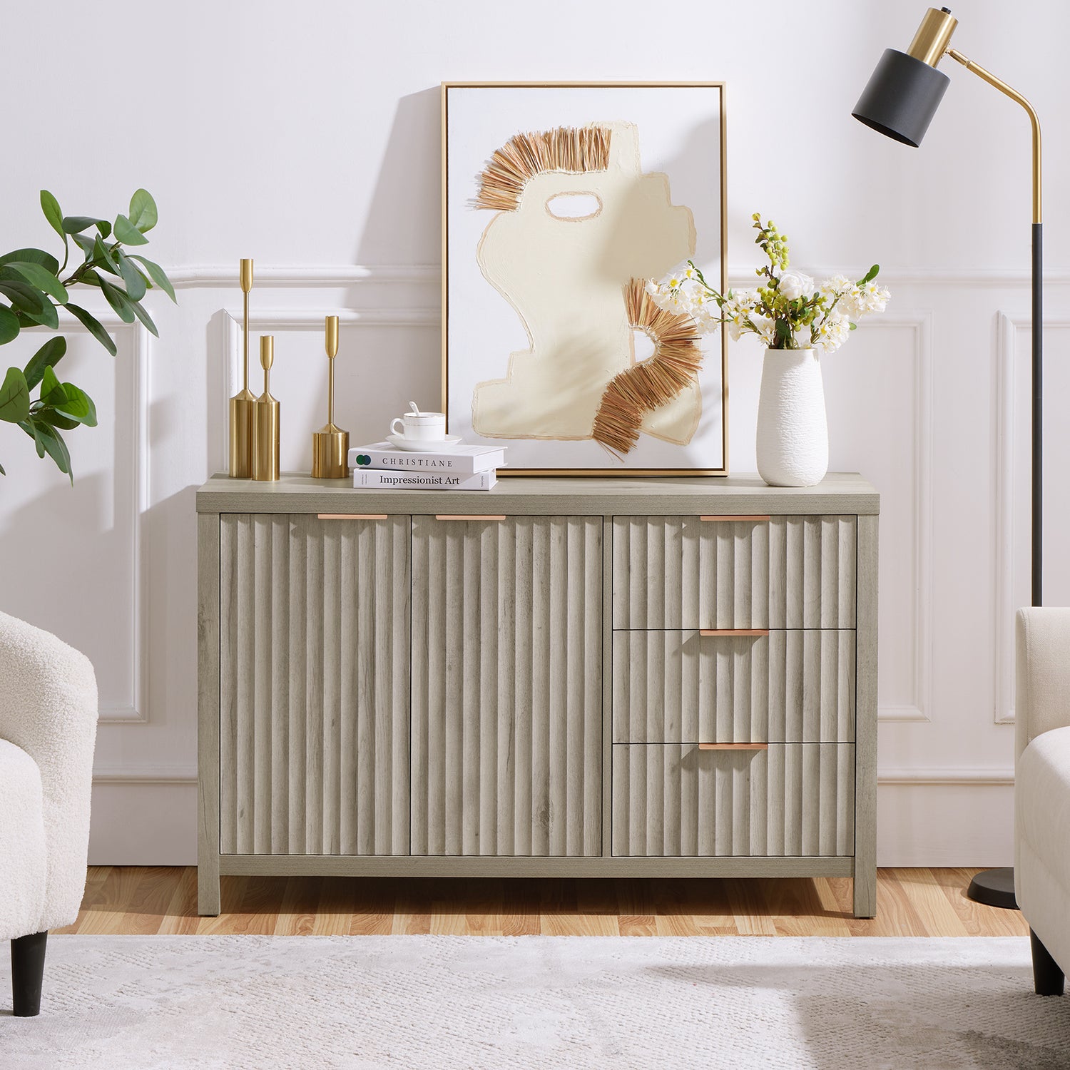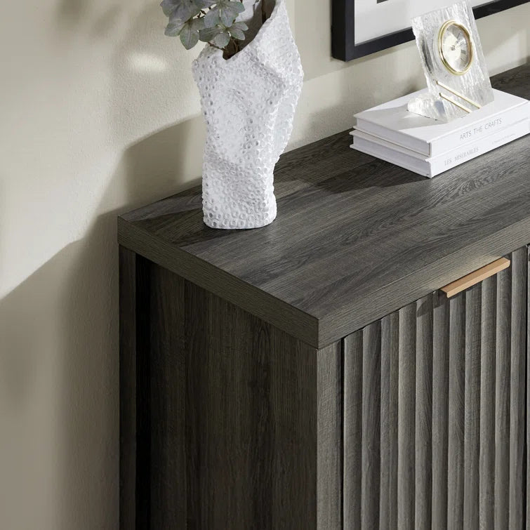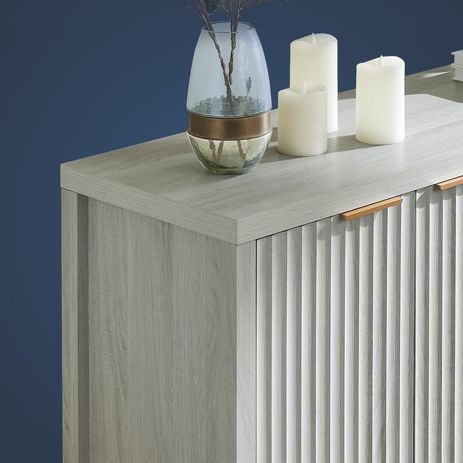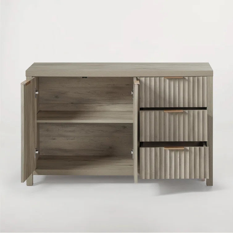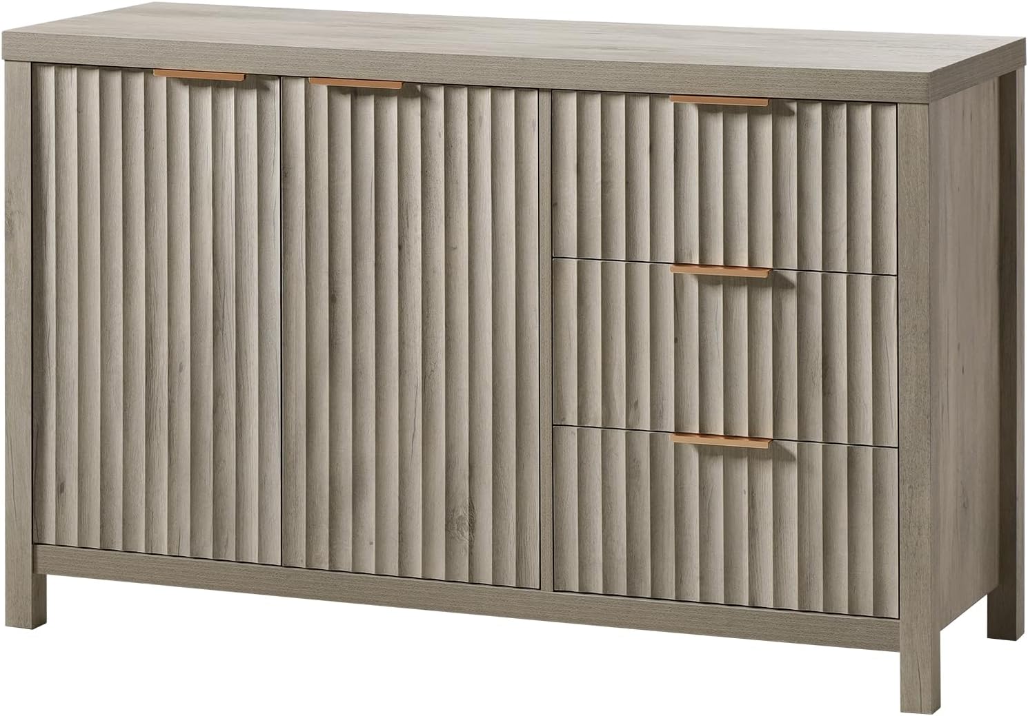 The design of this cabinet is amazing! The fluted wood adds texture, and the clean lines give it a contemporary feel. I was able to fit a lot of my dining room essentials inside, and the drawers are perfect for things like serving utensils and tablecloths. A stylish, yet practical addition to my home!