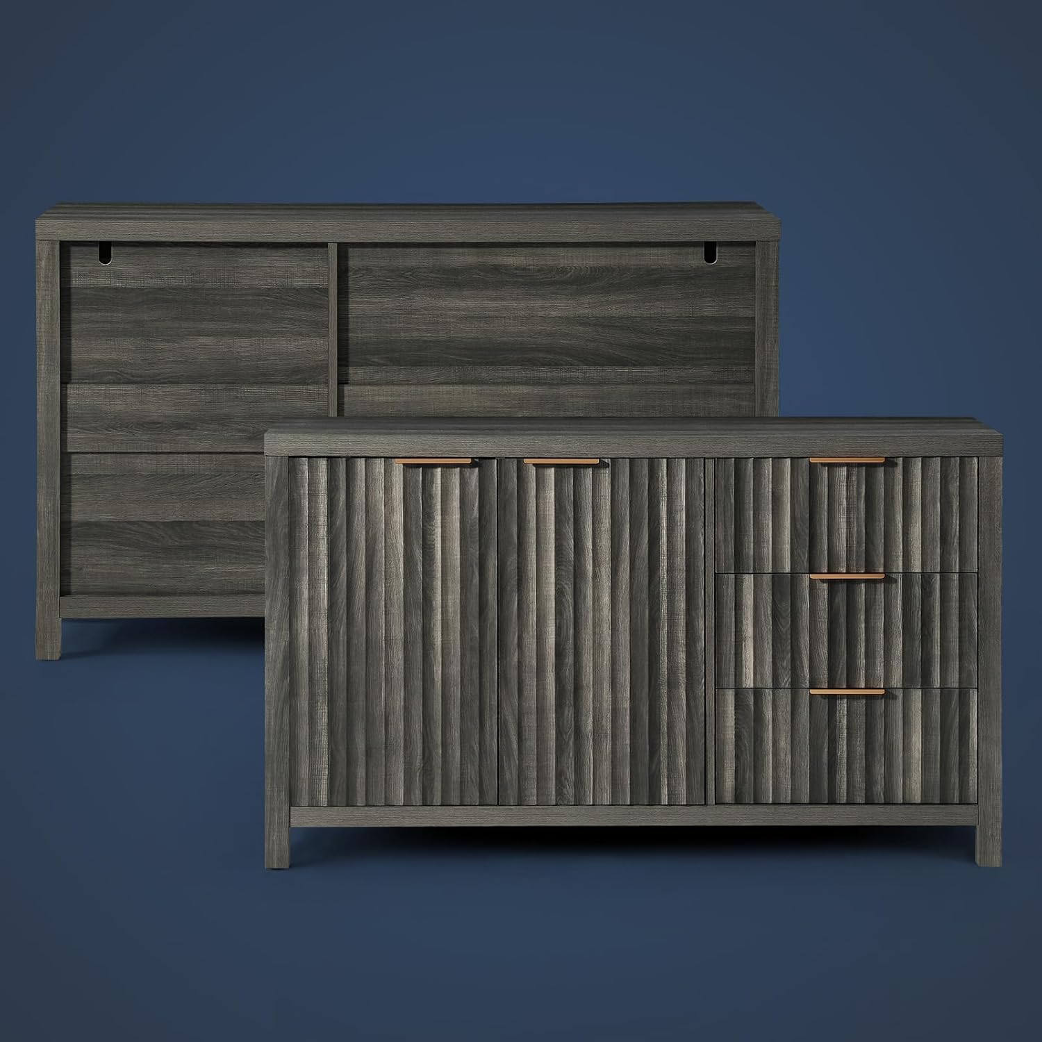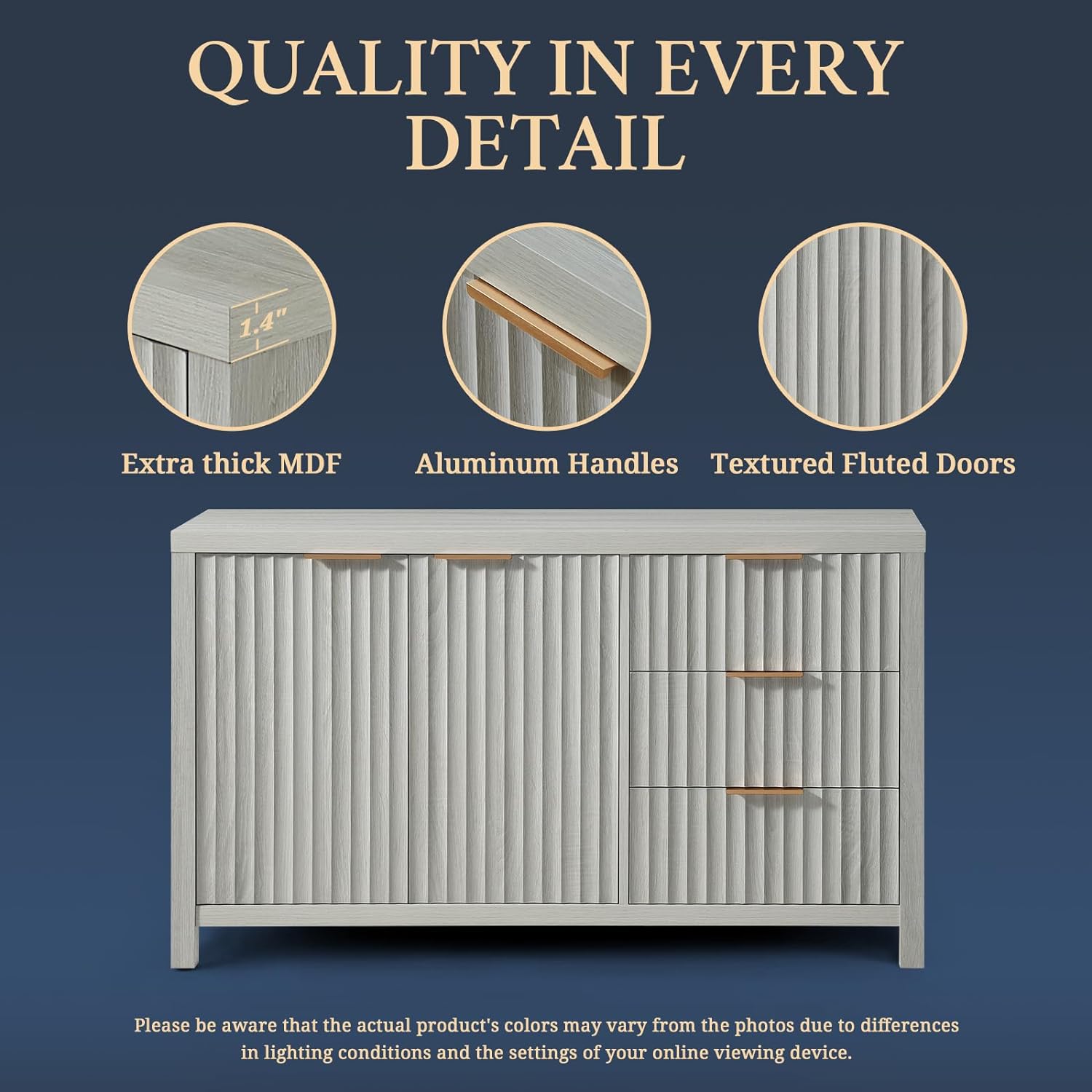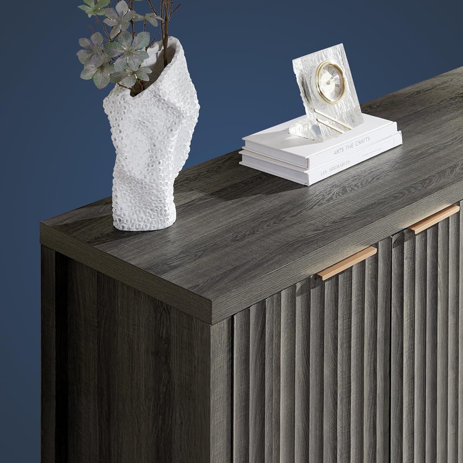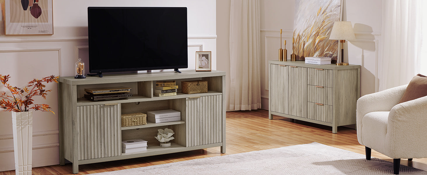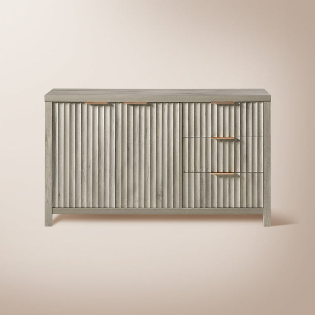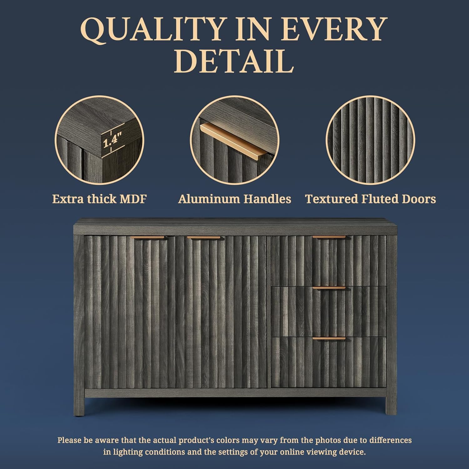 The design of this cabinet is amazing! The fluted wood adds texture, and the clean lines give it a contemporary feel. I was able to fit a lot of my dining room essentials inside, and the drawers are perfect for things like serving utensils and tablecloths. A stylish, yet practical addition to my home!