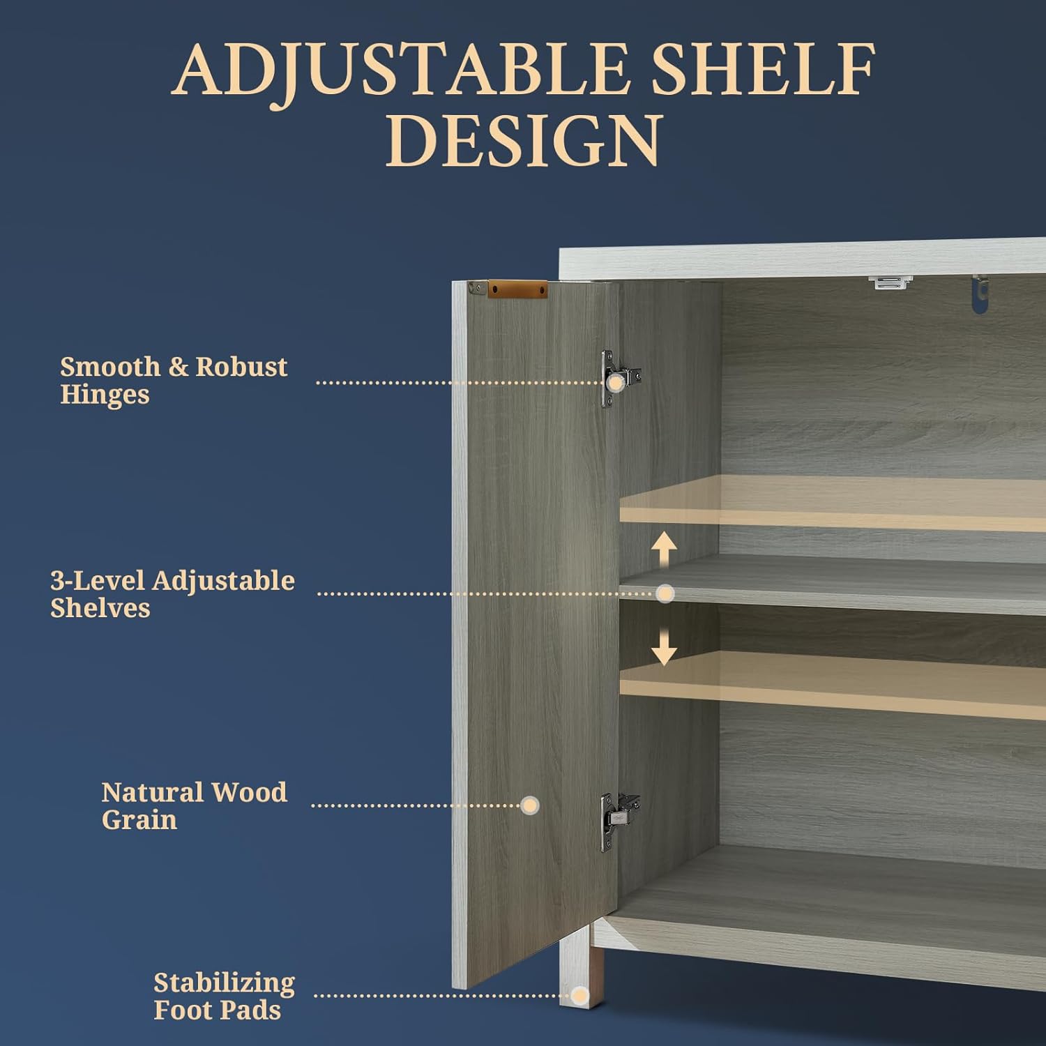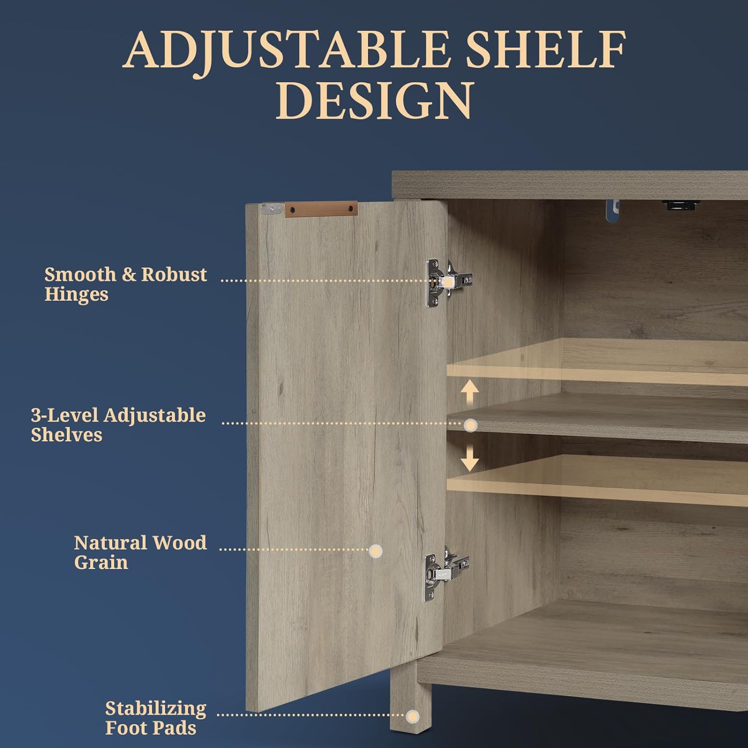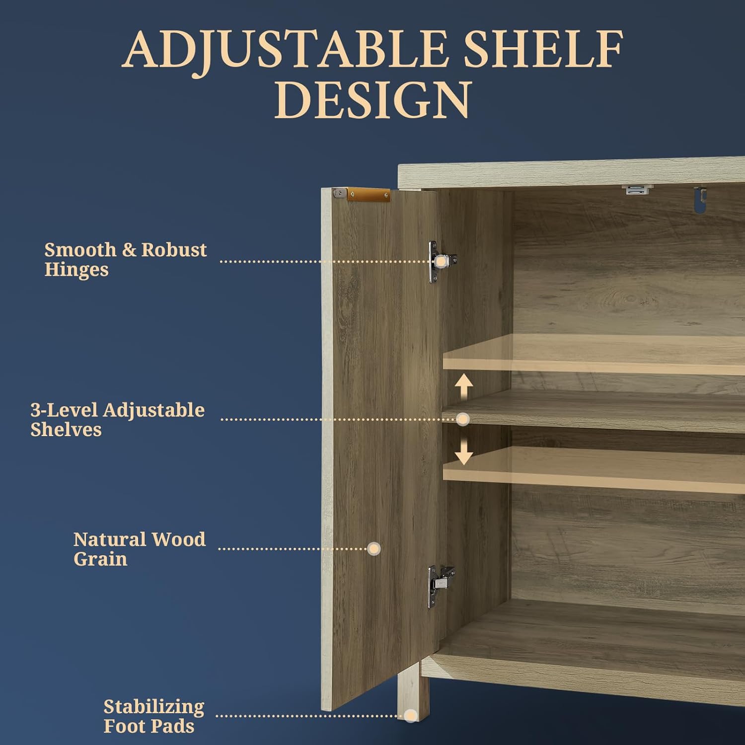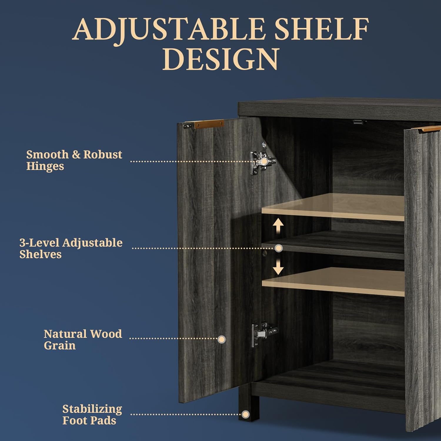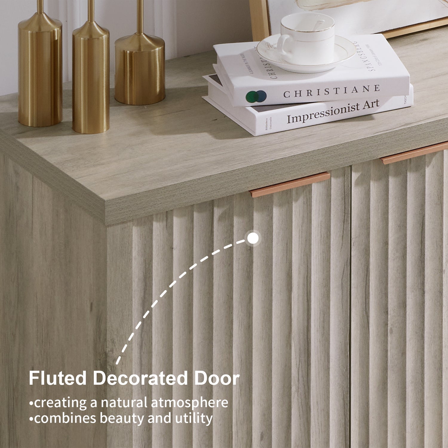 {"materialstitle":"Quality in Every Detail","image":"https://cdn.shopify.com/s/files/1/0780/4230/0713/files/1_0aa645cb-7537-4df8-bb36-3009a785778f.jpg?v=1722254869","paragraph":["This accent cabinet features hand-carved wavy patterns on each panel, enhancing the modern appeal and visual depth of your space, infusing every corner with a stylish and elegant ambiance.!","【3-Level Adjustable Shelves】This intricately designed buffet cabinet includes two doors and three drawers, with three adjustable shelves for flexible storage customization according to personal needs.","【Durable and Sturdy】 This modern sideboard is made from exterior grade MDF, enhancing both structural stability and durability. The 1.4-inch thick top ensures excellent load-bearing capacity, making it perfect for displaying decorative items.","【Product Dimensions】Total Dimensions: 46.69 L x 15.43 W x 29.21 H | Individual Storage: 25.98 L x 13.78 W x 23.62 H | Each Drawer: 16.54L x 13.78W x 5.71H inches | Maximum Top Panel Load: Maximum Top Panel Load: 100 lbs | Maximum Adjustable Shelves Load: 50 lbs | Maximum Drawers Load: 20 lbs | Cabinet leg height: 2.76 in.","【Easy to Assemble】This fluted credenza comes with clear, detailed instructions, numbered parts, and all necessary tools for assembly. Follow our video tutorial for easy setup, or reach out to our professional team for further assistance."]}