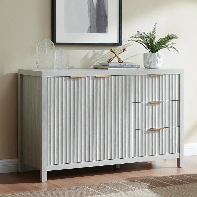 This cabinet has added so much style to my living room! The fluted detailing and sleek finish give it a modern yet timeless look. The storage is excellent, with the three drawers offering just enough space for smaller items, while the doors keep everything else neatly hidden.