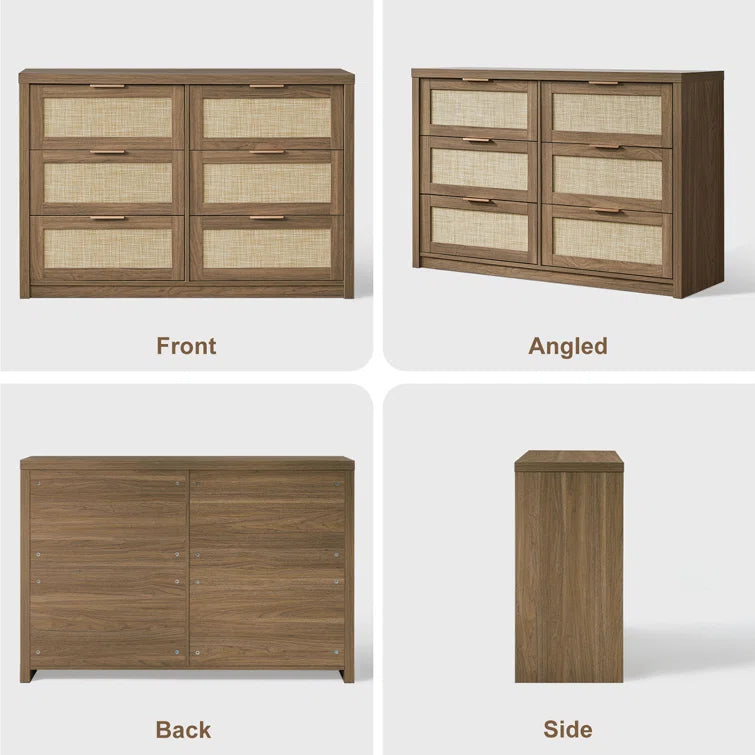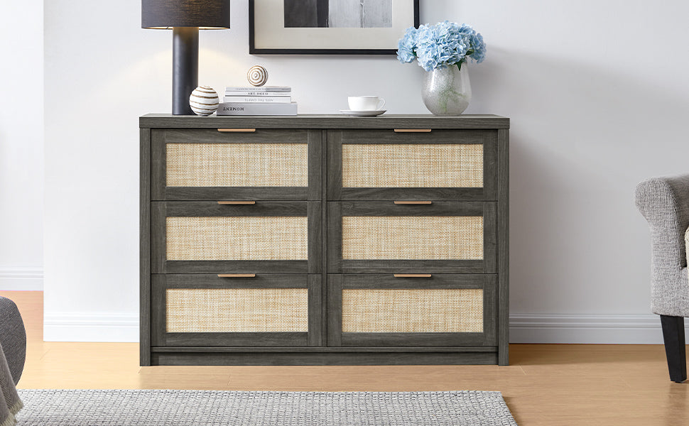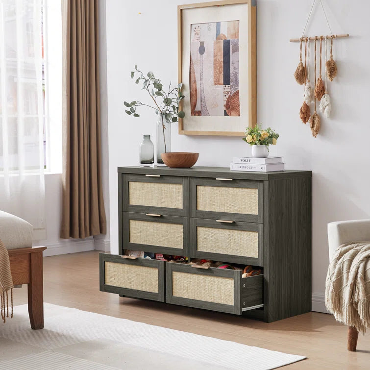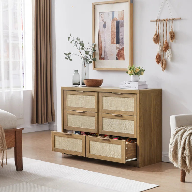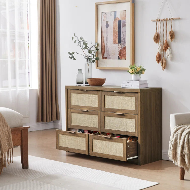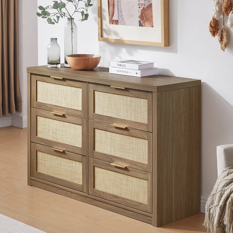 Rattan 6-Drawer Dresser Storage Chest
