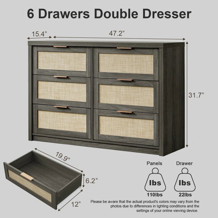 Rattan 6-Drawer Dresser Storage Chest - Weathered Oak / Medium (47" W) / Exterior Grade MDF Board is backordered and will ship as soon as it is back in stock.