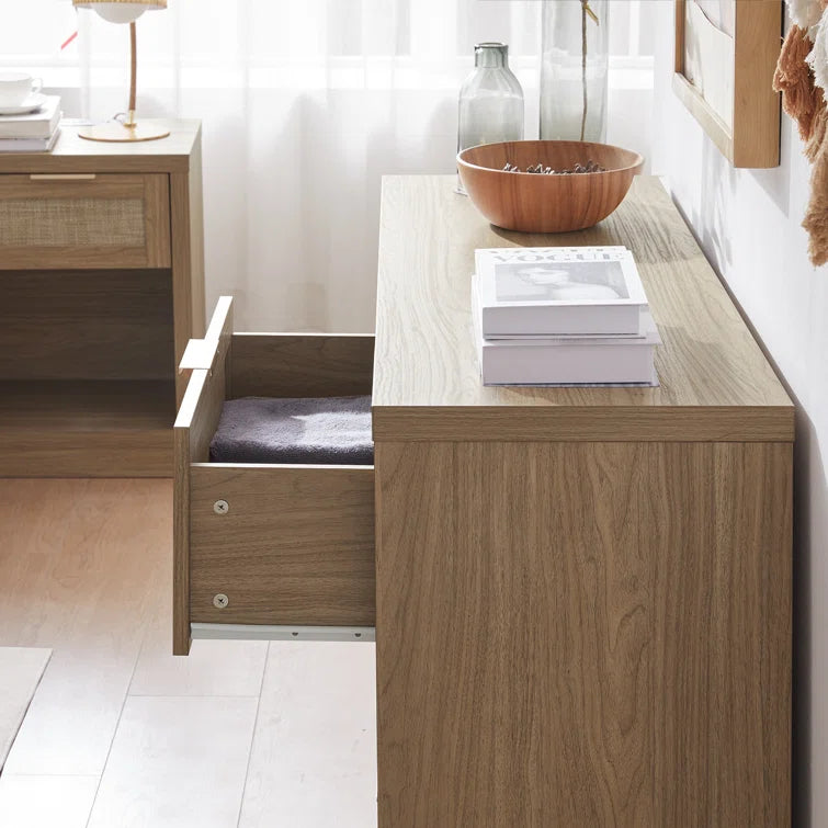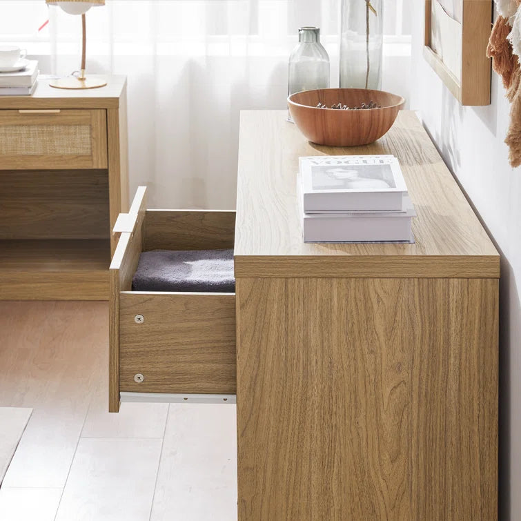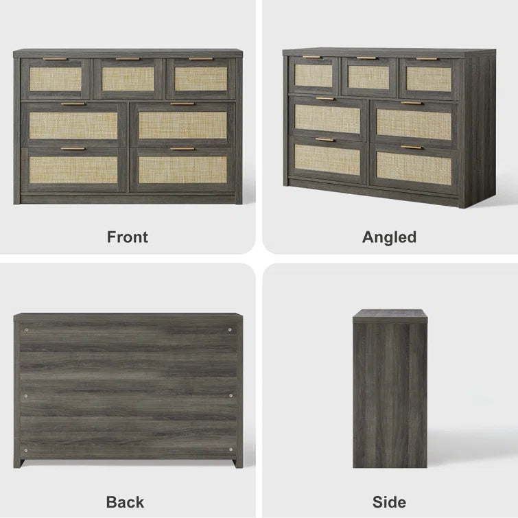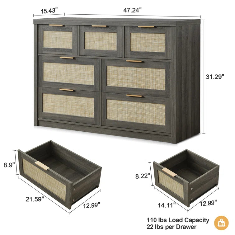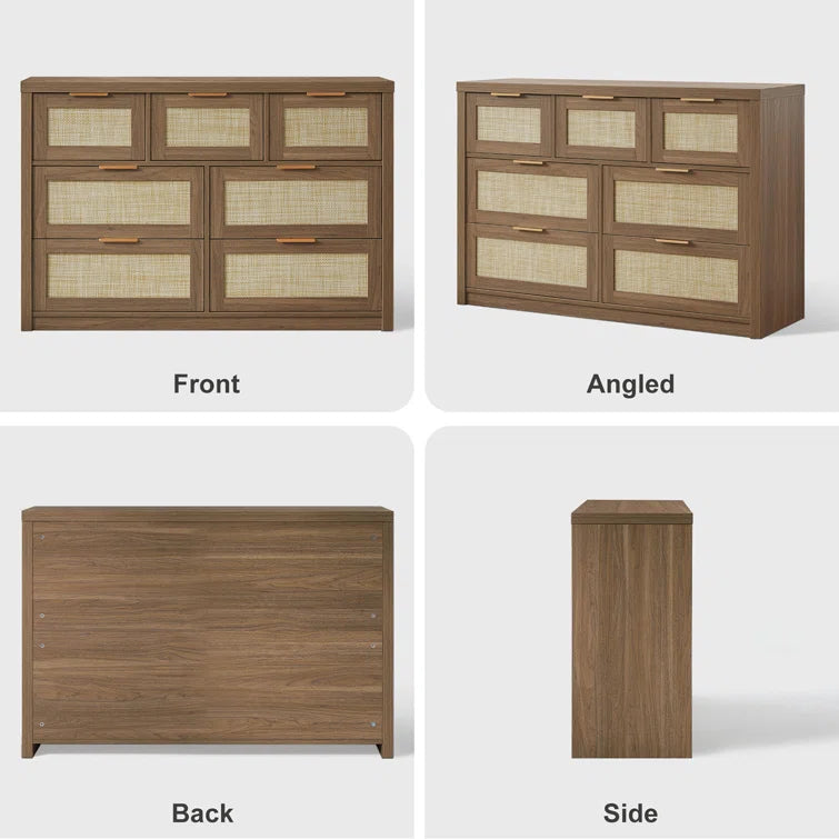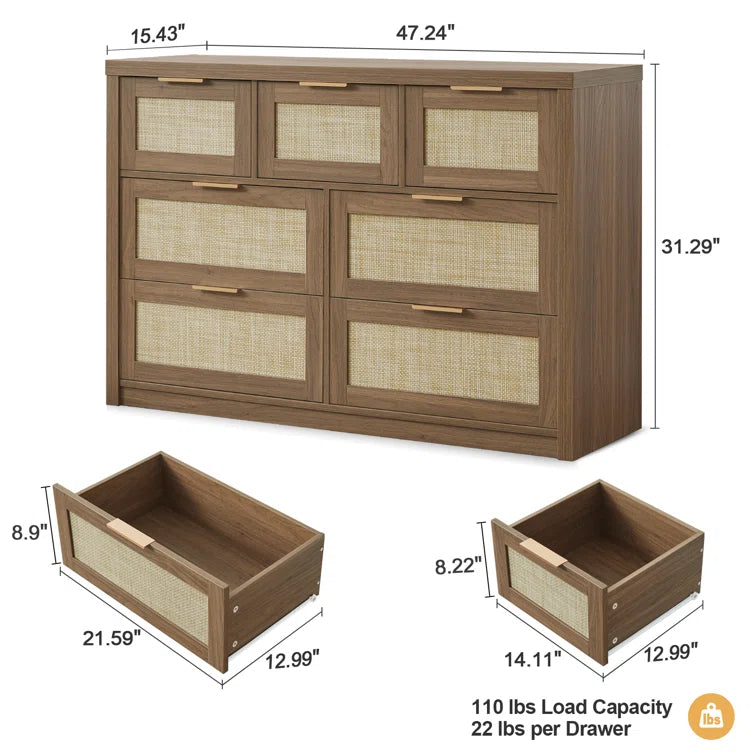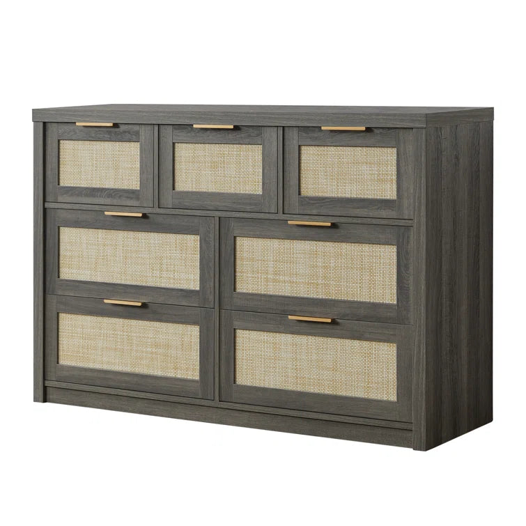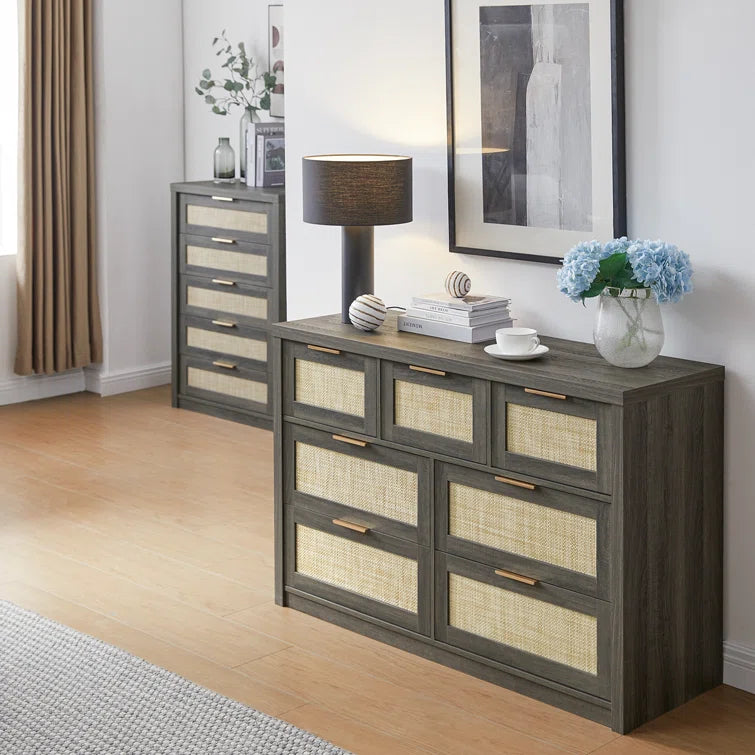 With 7 drawers, this rattan dresser blends natural charm with practicality. Featuring a carefully woven rattan top, it brings the soothing essence of nature into your home.