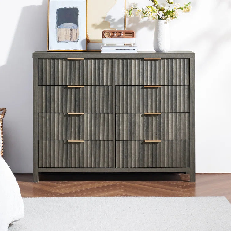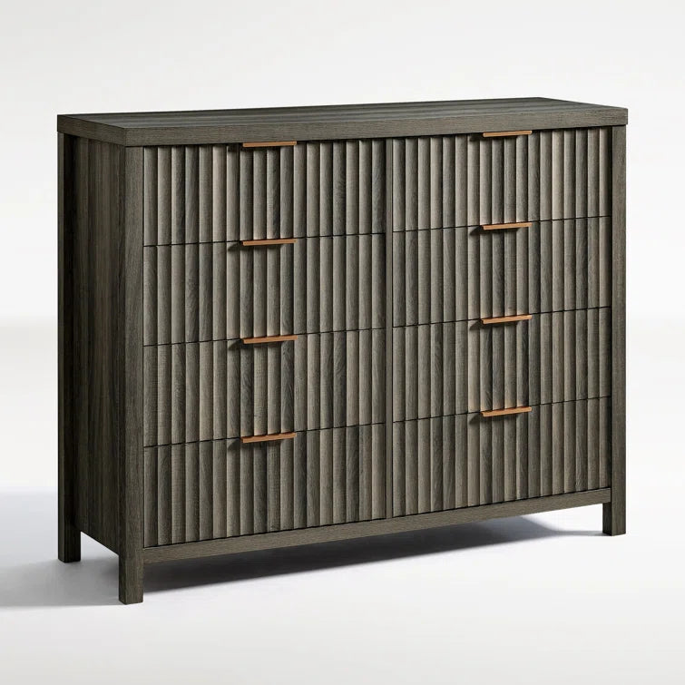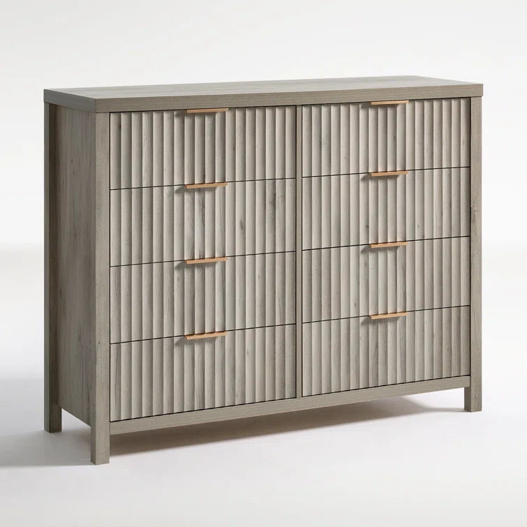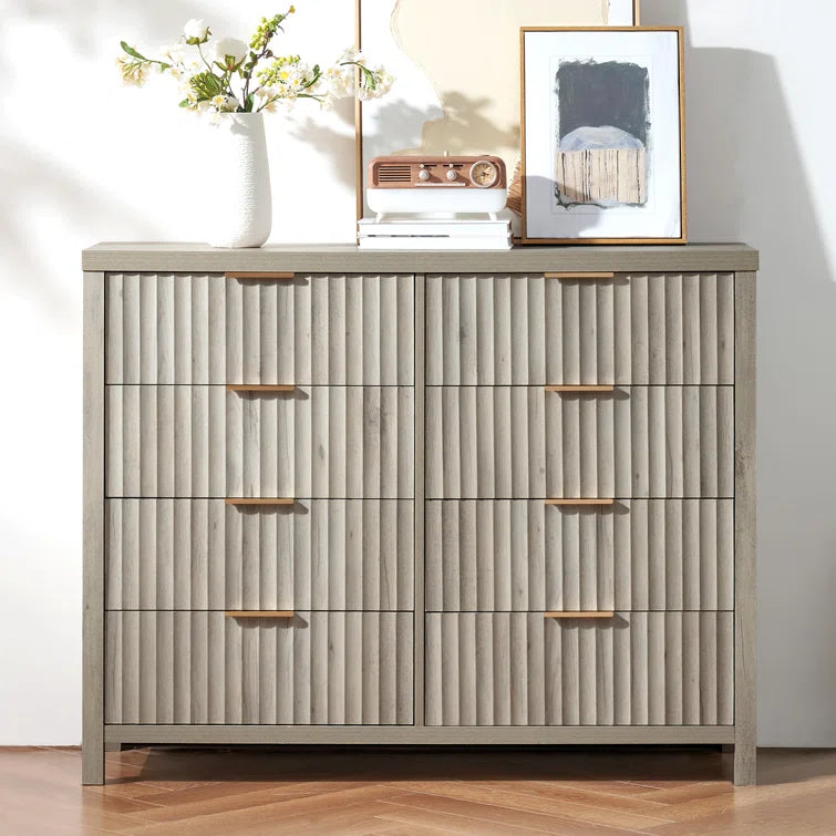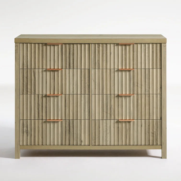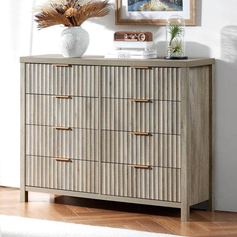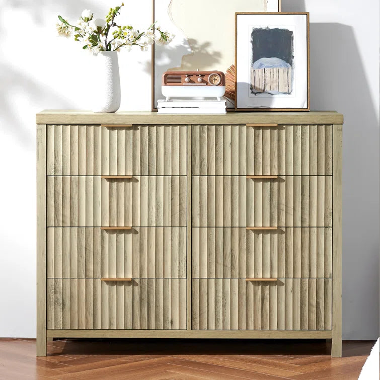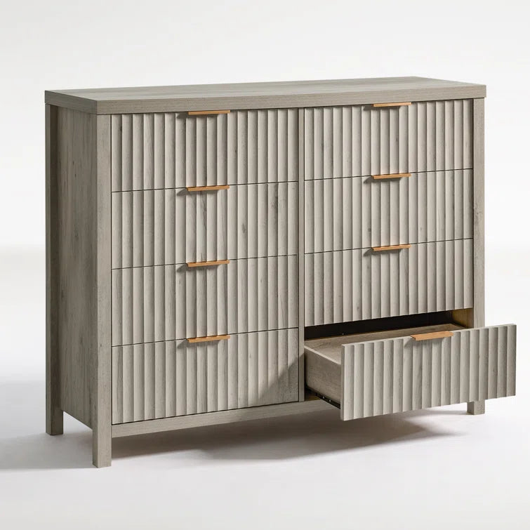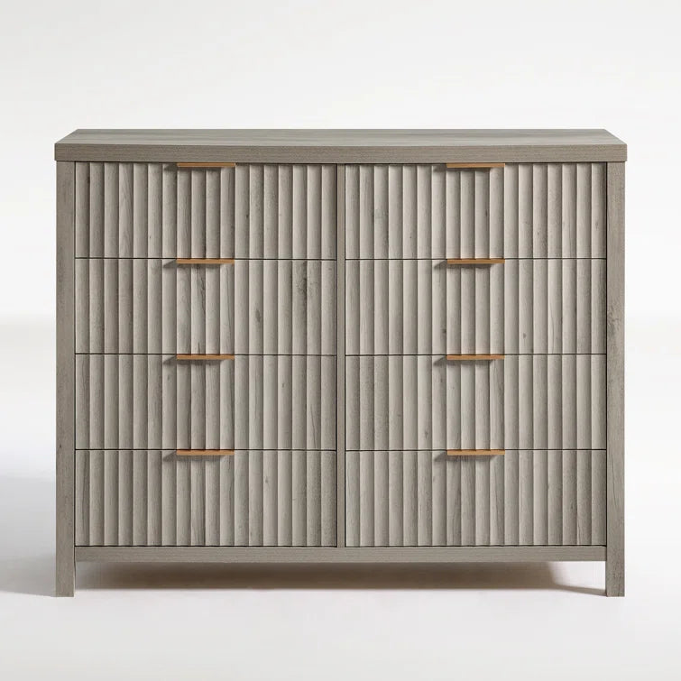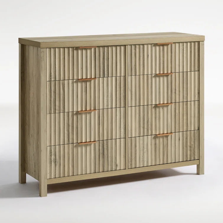 Wooden Fluted Wide Modern Chest of 8 Drawers