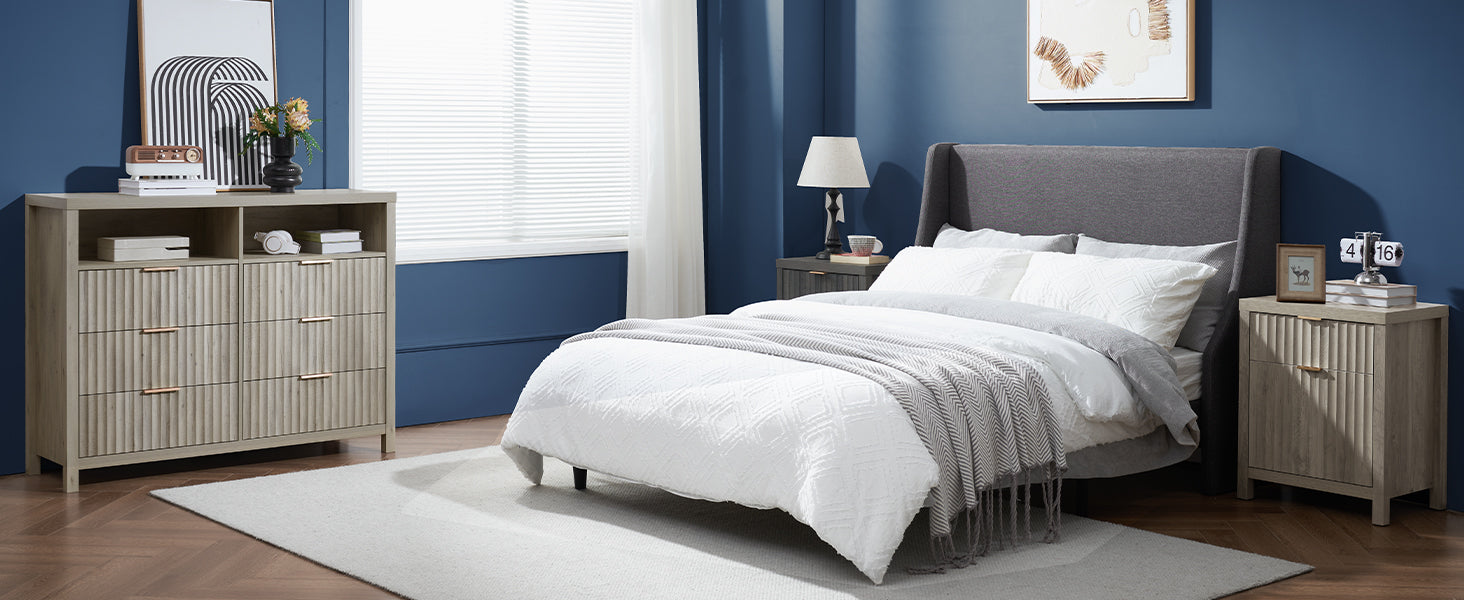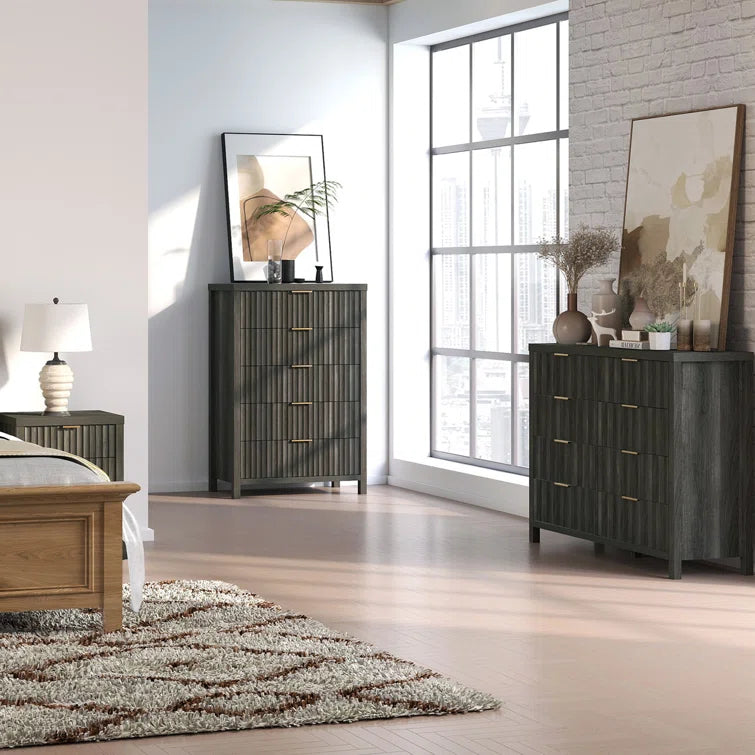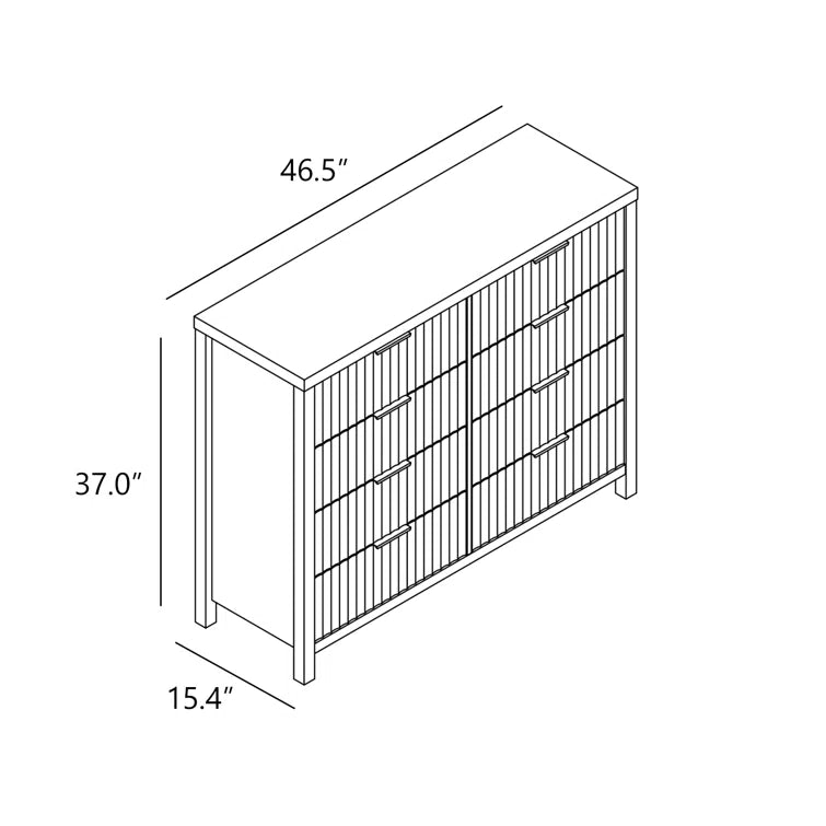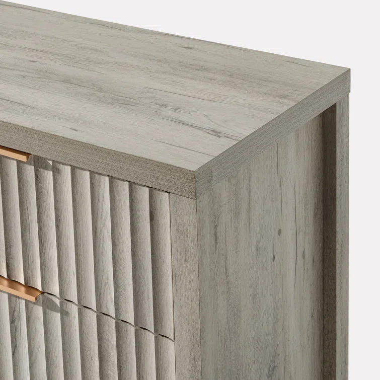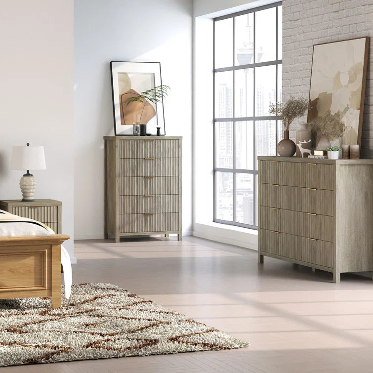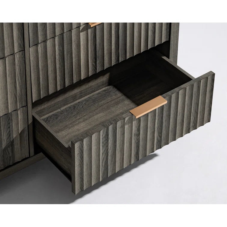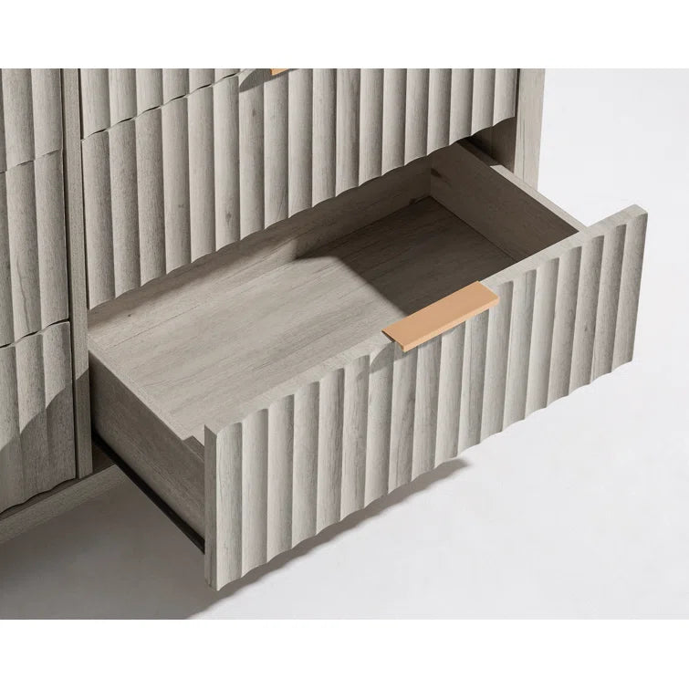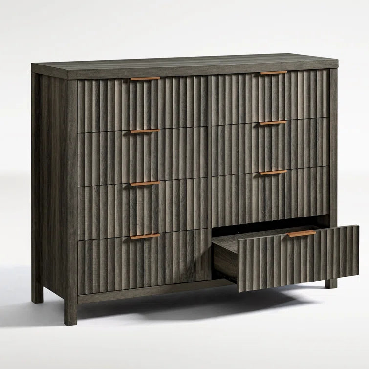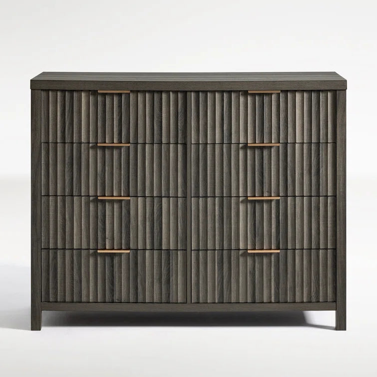Wooden Fluted Wide Modern Chest of 8 Drawers