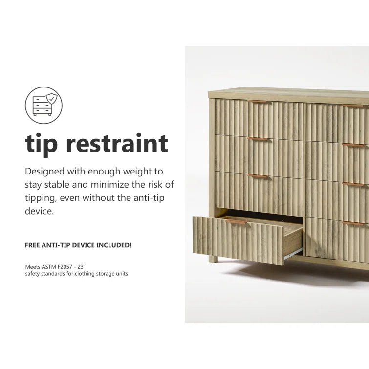 Wooden Fluted Wide Modern Chest of 8 Drawers - Sunwashed Ash Oak / 1PC / Exterior Grade MDF Board is backordered and will ship as soon as it is back in stock.