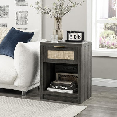 {"materialstitle":"Quality in Every Detail","image":"https://cdn.shopify.com/s/files/1/0780/4230/0713/files/1_ff8ada0d-acae-4dc5-a84f-1926ddbd1064.jpg?v=1722244919","paragraph":["The Hampstead series blends rustic elegance with practical features, creating furniture that adds natural warmth and modern convenience to your home. Defined by rattan textures and soft wood tones, this series embodies timeless charm and functional living.","【Rattan Single-Drawer Nightstand with Charging Station】Combining vintage charm with modern practicality, this nightstand features a rattan - accented drawer front that brings a touch of boho - inspired elegance to any room.Its natural wood tones easily complement bedrooms, living rooms, or home offices, enhancing your decor with a cozy, timeless appeal.","【Compact Design with Integrated Storage】Measuring 18.5 inches (W) x 15.6 inches (D) x 25 inches (H), this nightstand is perfect for compact spaces. The spacious single drawer offers hidden storage for bedtime essentials, while the open shelf below provides easy access to books or decor. The top surface accommodates lamps, charging devices, or decor pieces.","【Adaptable to Various Interior Styles】Whether placed in a modern bedroom, a bohemian-inspired living room, or a minimalist home office, this nightstand fits effortlessly into any setting. Its versatile design not only enhances the room’s overall aesthetic but also brings a touch of warmth and natural charm to your home.","【Convenient Charging Station】Designed for modern living, the built - in charging station features USB ports and outlets, making it effortless to charge your devices.Keep your electronics powered and your space tidy with this integrated solution.","【Sturdy and Durable Construction】Crafted from high-quality MDF with a scratch-resistant laminate finish, this nightstand is built for everyday use. The sturdy construction ensures long-lasting durability, while the protective foot pads safeguard your floors from scratches.","【Easy Assembly】This nightstand comes with clear instructions and labeled parts, ensuring a hassle-free assembly process. Enjoy the combination of timeless rattan design and modern functionality with the Hampstead series."]}
