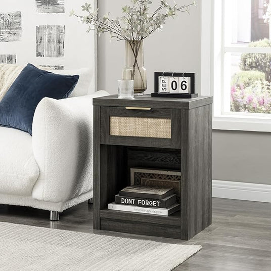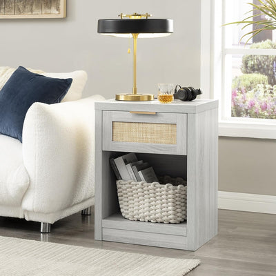Rattan Single-Drawer Nightstand with Charging Station