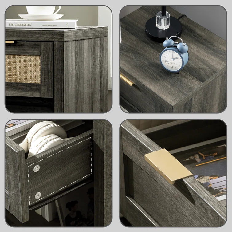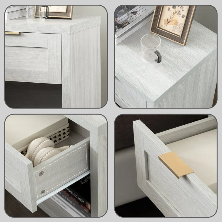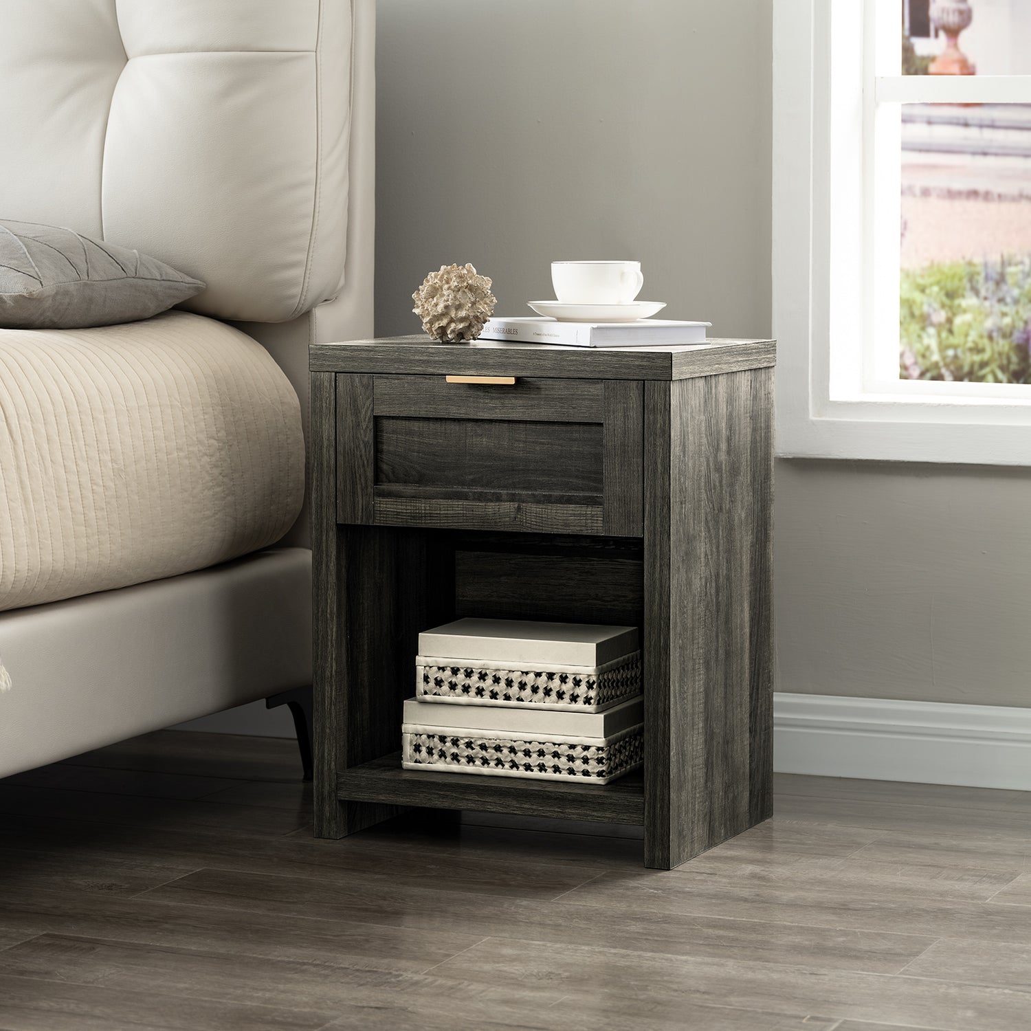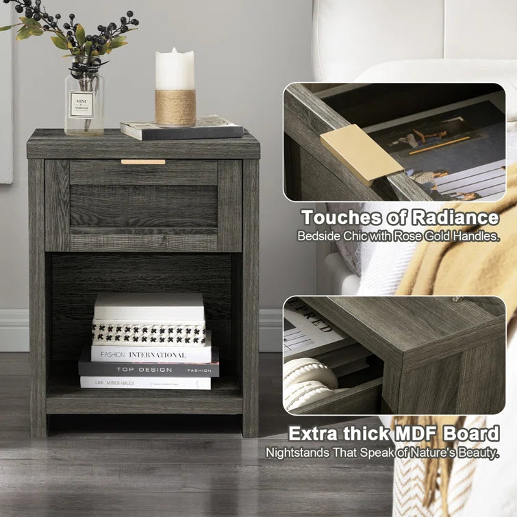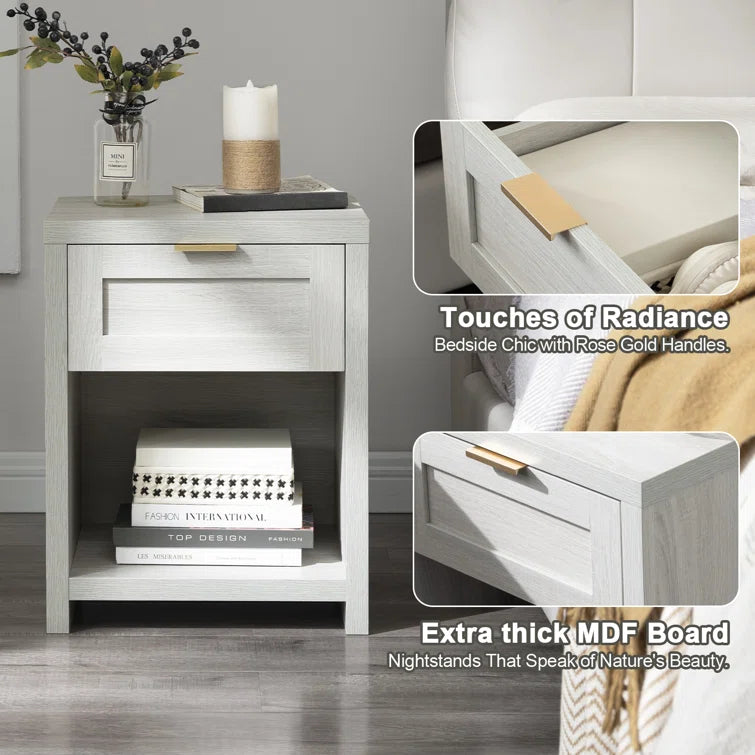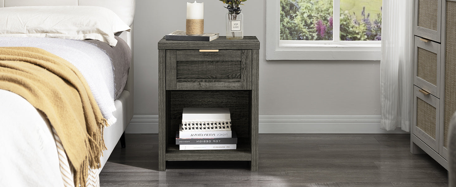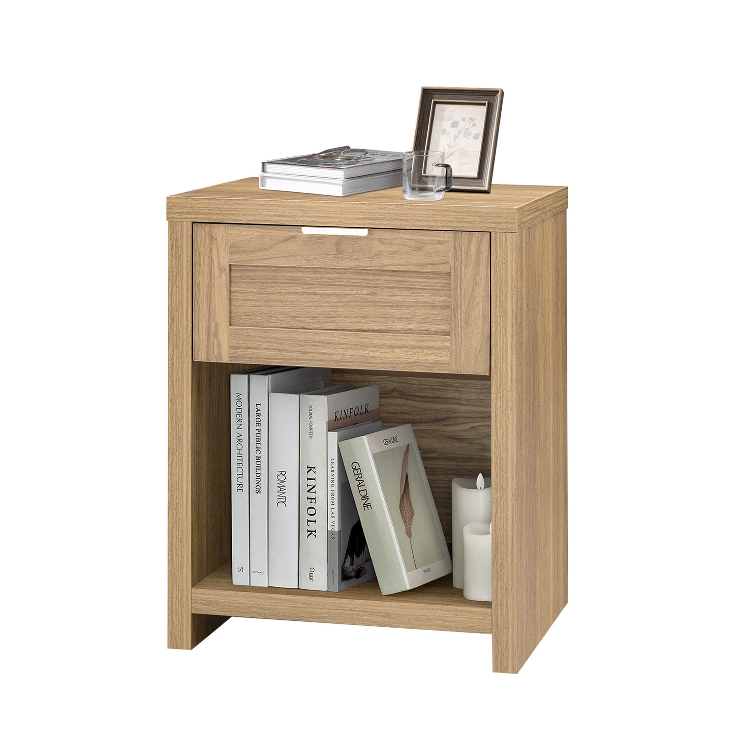{"materialstitle":"Quality in Every Detail","image":"https://cdn.shopify.com/s/files/1/0780/4230/0713/files/1_ae9e2675-f866-4119-8311-60dddf6c563d.jpg?v=1722244220","paragraph":["The Sherwood series masterfully combines simplicity and functionality, offering furniture that effortlessly adapts to modern and boho-inspired interiors. Defined by its smooth finishes, natural wood tones, and clean lines, the series introduces a serene and sophisticated aesthetic to any space.","【Streamlined Storage Solution】The Wooden Single-Drawer Nightstand is designed to enhance organization in compact spaces. The spacious drawer with smooth-glide tracks keeps essentials out of sight, while the open shelf below offers quick access to books, decor, or daily-use items. Its seamless design creates a tidy and clutter-free environment.","【Compact and Practical Design】The Wooden Single-Drawer Nightstand measures 13.7 inches (W) x 16.9 inches (D) x 21.6 inches (H), making it perfect for compact spaces. Its design includes a spacious single drawer and an open shelf, providing versatile storage solutions for bedside essentials, books, or decor. The flat top offers an ideal spot for lamps or accent pieces.","【Multi-Room Versatility】This nightstand transitions effortlessly across rooms. Use it as a bedside table in the bedroom, an end table in the living room, or a compact storage option in home offices or hallways. Its natural wood tones complement a wide range of styles, from minimalist and Scandinavian to boho and contemporary.","【Sturdy and Reliable Construction】Crafted from high-quality MDF and finished with a smooth laminate, the nightstand is built for durability and everyday use. Protective foot pads ensure stability and prevent scratches, while the sturdy construction supports all your storage needs.","【Easy Assembly】The nightstand comes with detailed instructions, clearly labeled parts, and all necessary tools for a smooth assembly process. Experience the ease and practicality of Sherwood furniture in your home with minimal setup effort."]}
