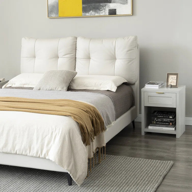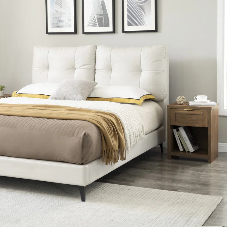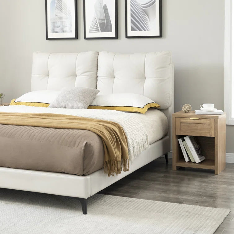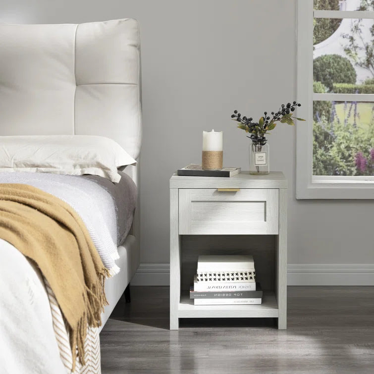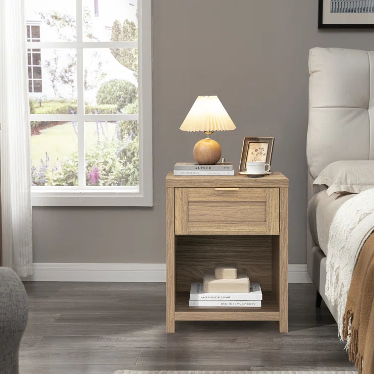 This nightstand is ideal for smaller spaces. It’s compact but still provides enough storage with the drawer and open shelf. The natural wood design fits in with my boho-themed bedroom perfectly. I love the simplicity and the functional storage space. Highly recommend it!