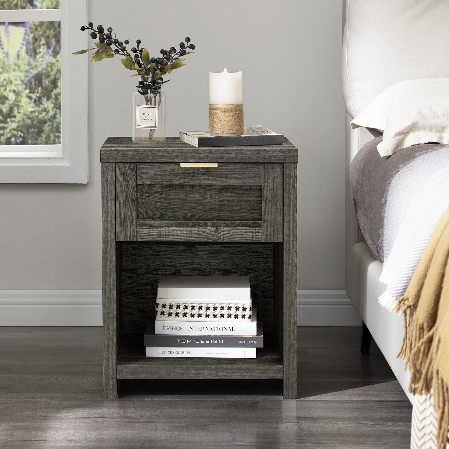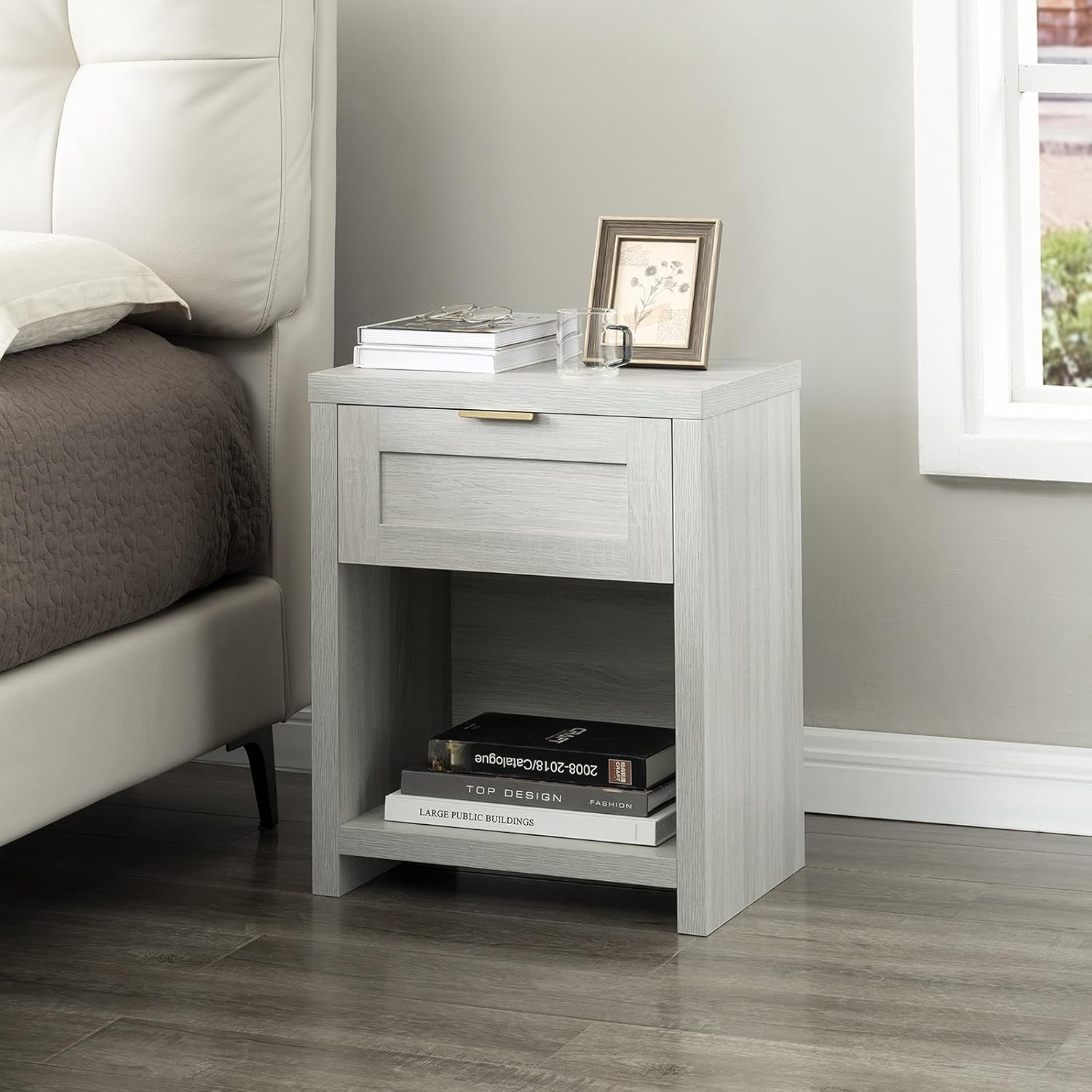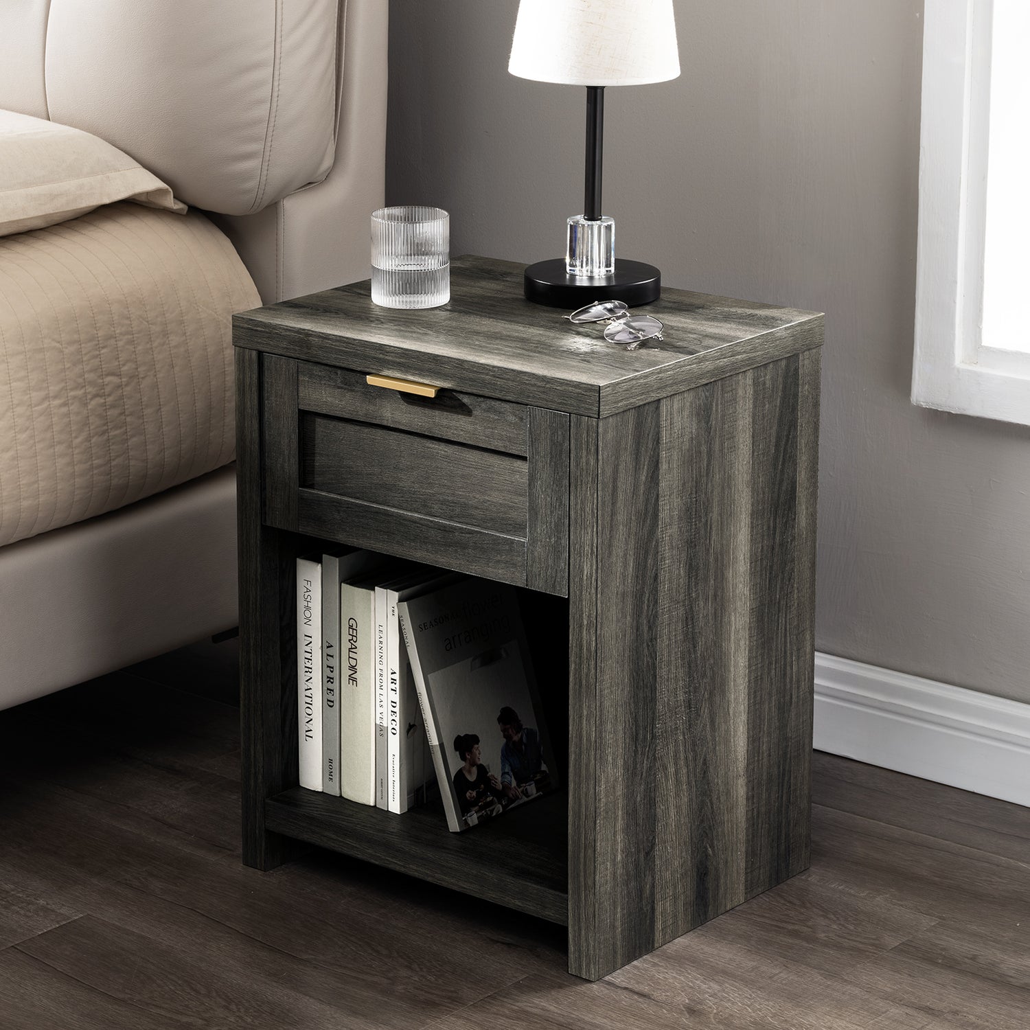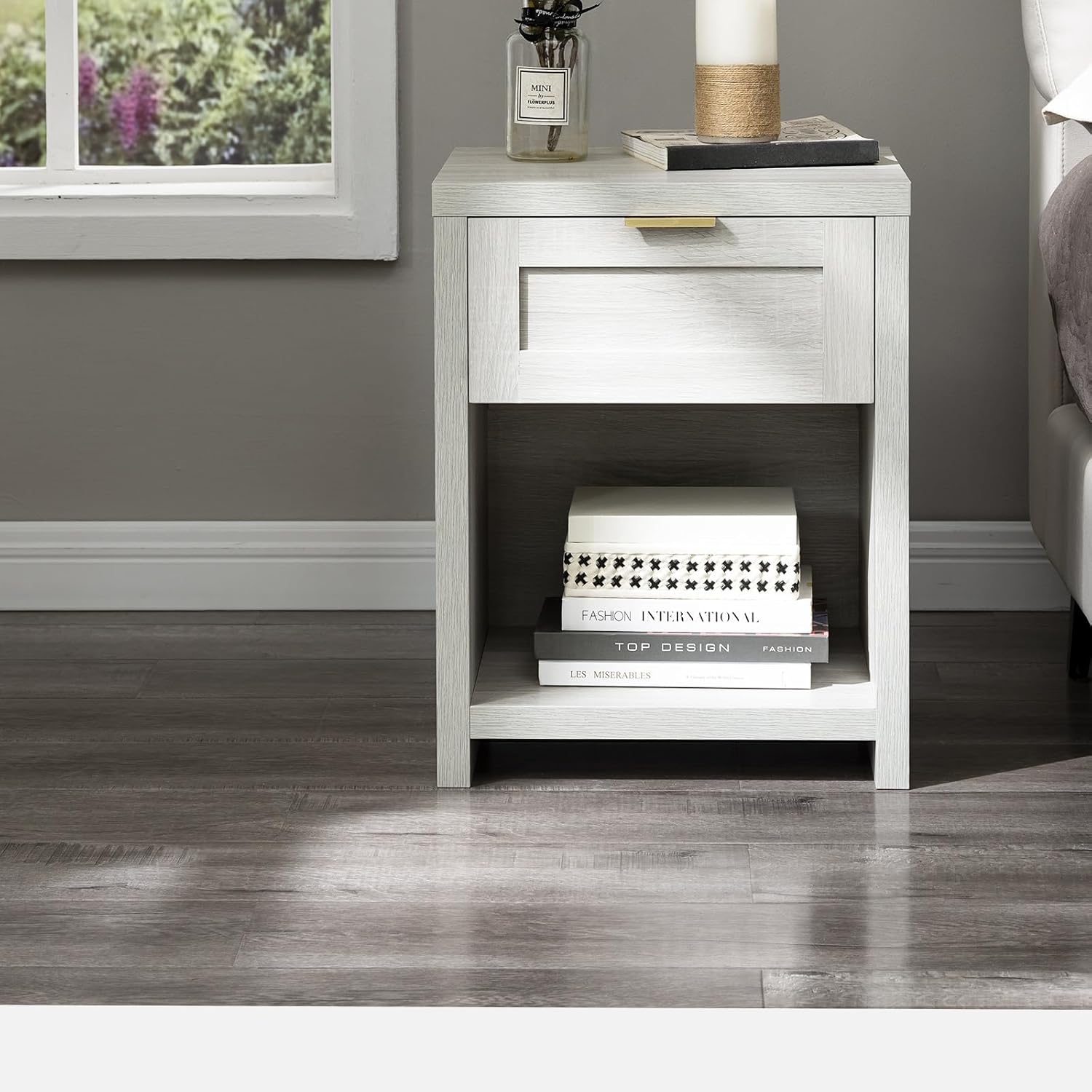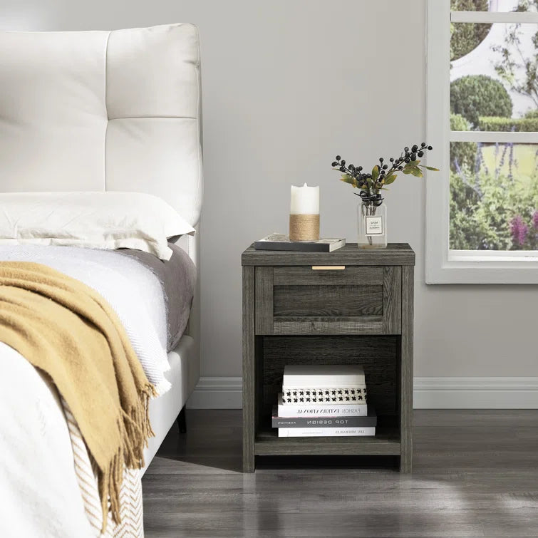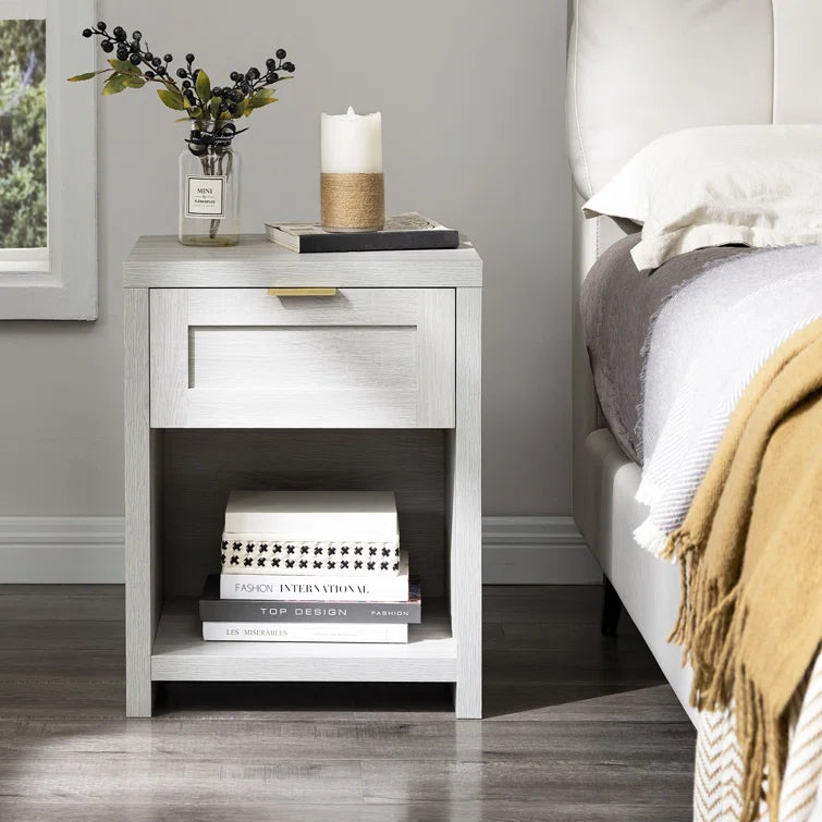 I absolutely love this nightstand! The single drawer is perfect for storing my small essentials, and the open shelf below is great for books or a decorative item. The wood finish is beautiful, and it fits perfectly next to my bed. It’s a stylish, functional piece of furniture.