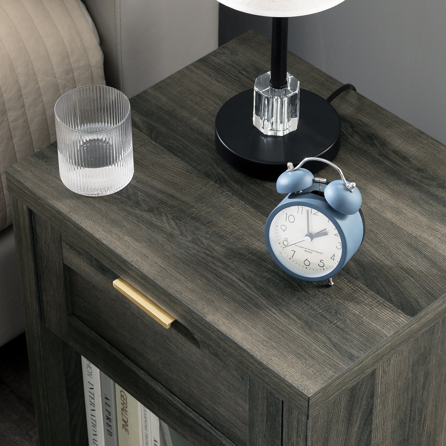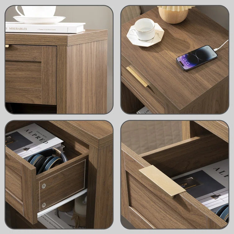 Wooden Fluted Single-Drawer Nightstand with Charging Station