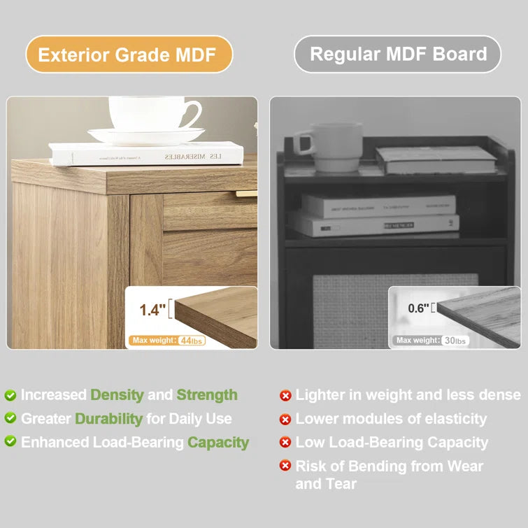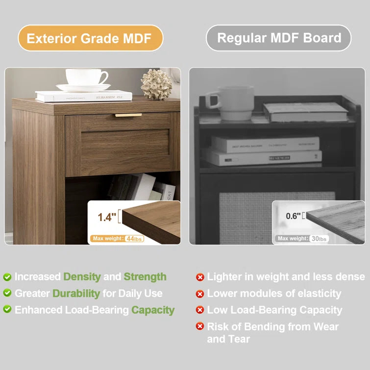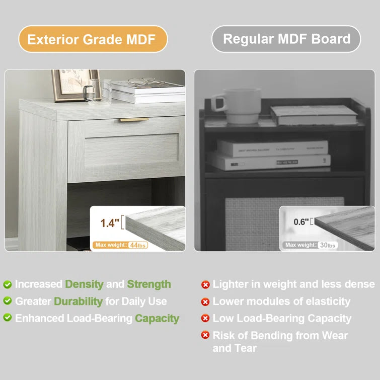 【Sturdy and Durable Construction】Made with a 1.4-inch thickened premium MDF board and a scratch-resistant, water-resistant surface to withstand daily use, this side table will stand the test of time. The sturdy construction ensures stability and durability, making it a practical and long-lasting addition to your bedroom. This side table is sturdy and odor-free, allowing you to place it next to your bed with confidence.