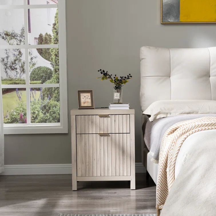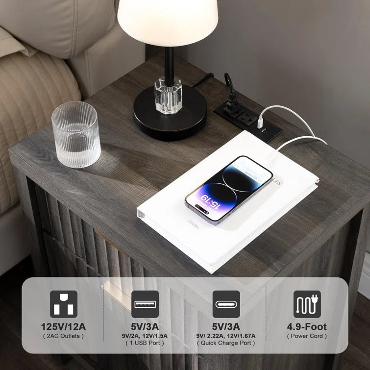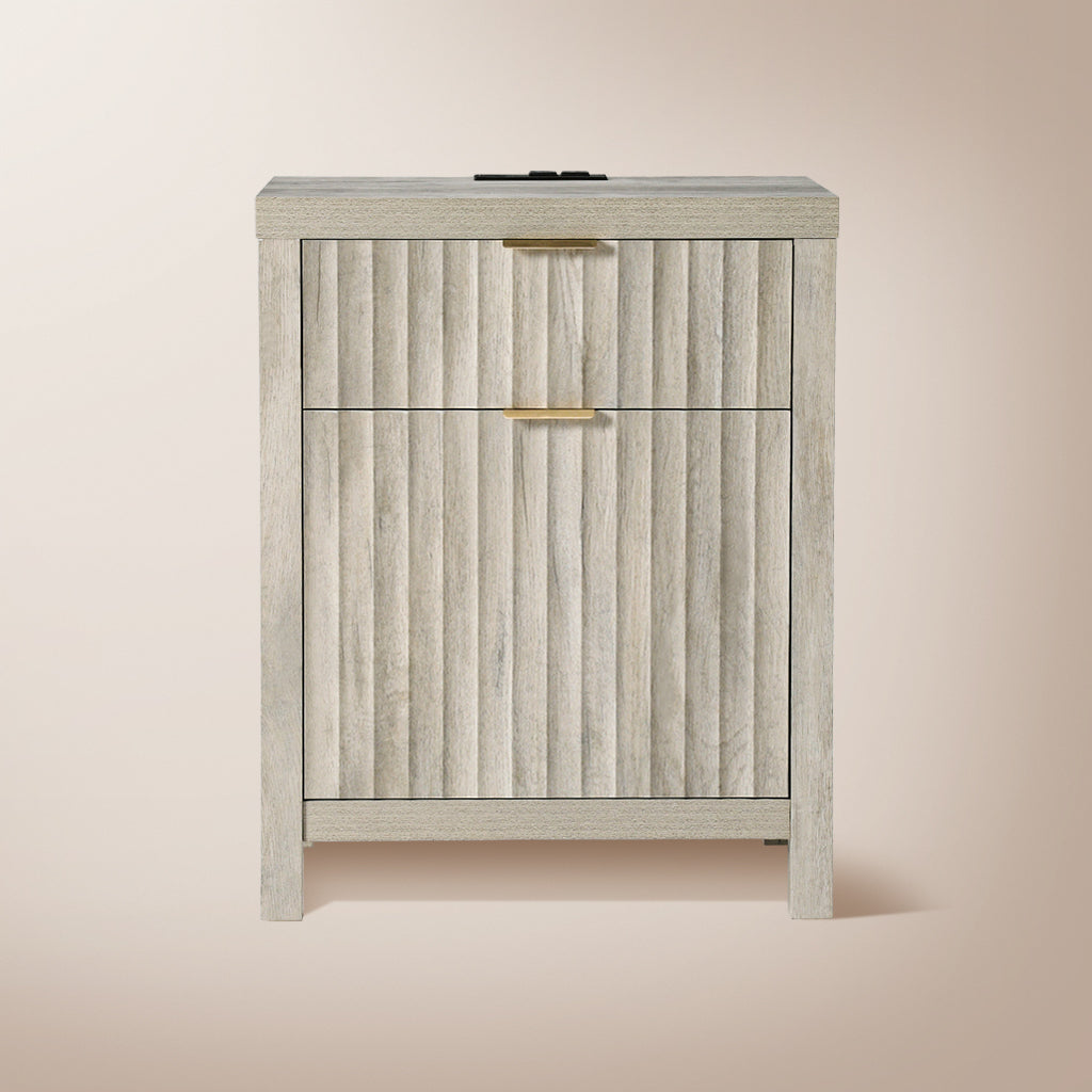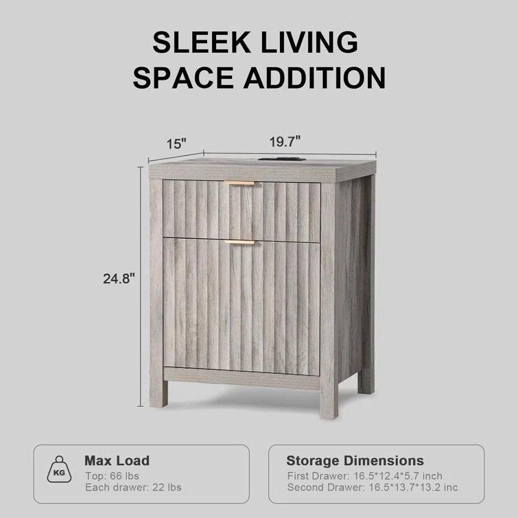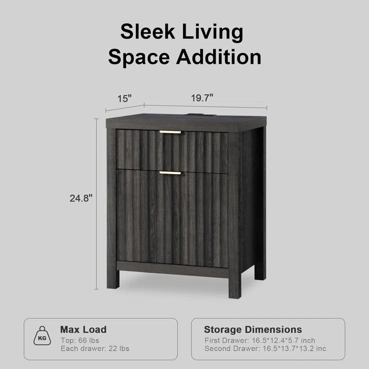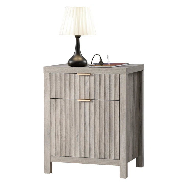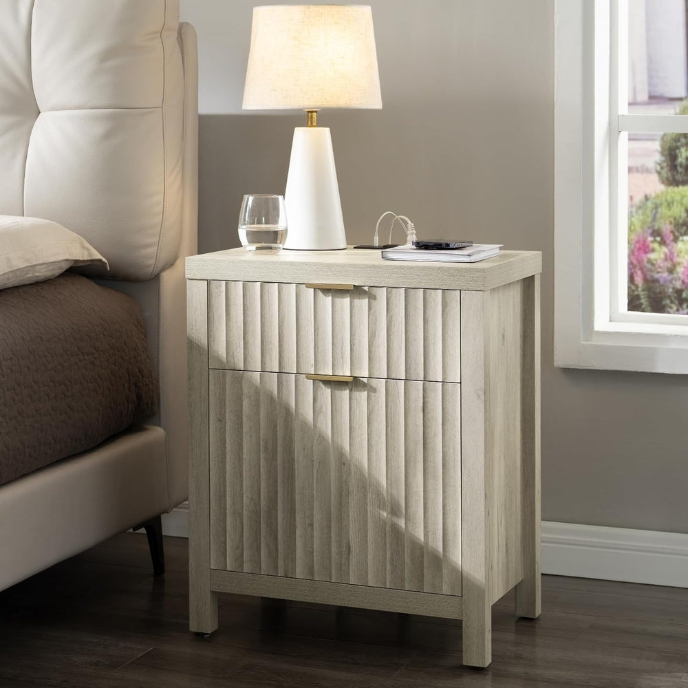 Wooden Fluted 2-Drawer Nightstand with Charging Station