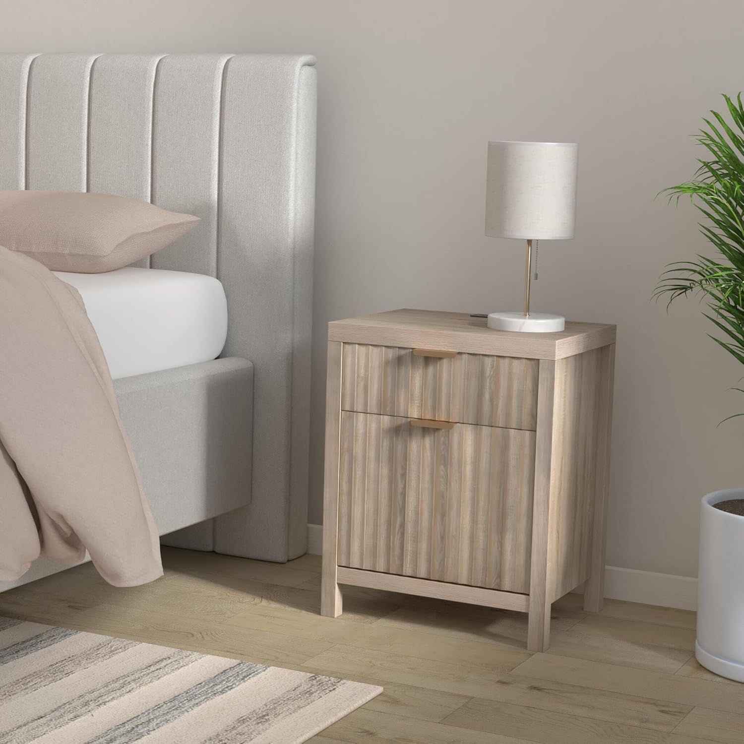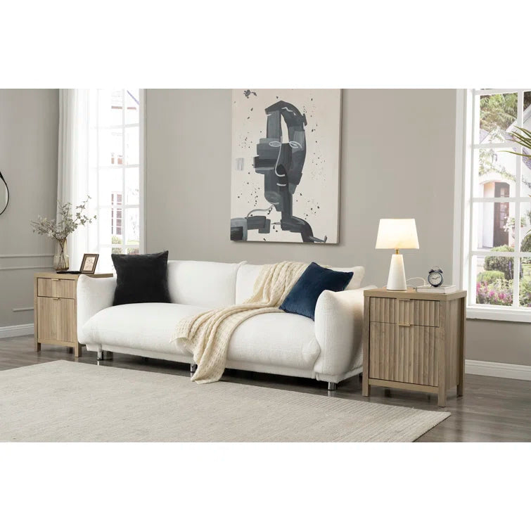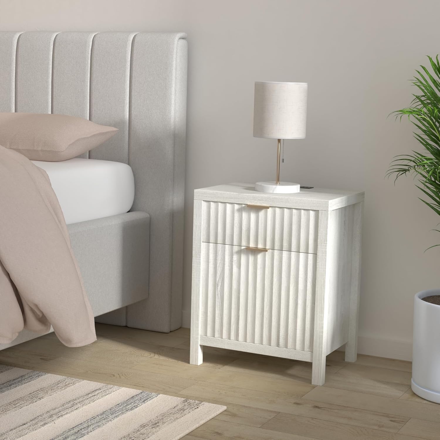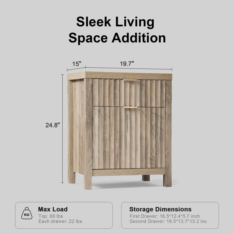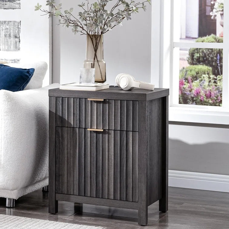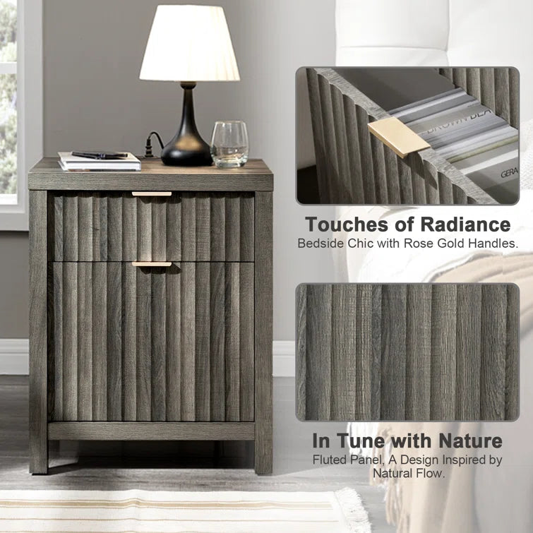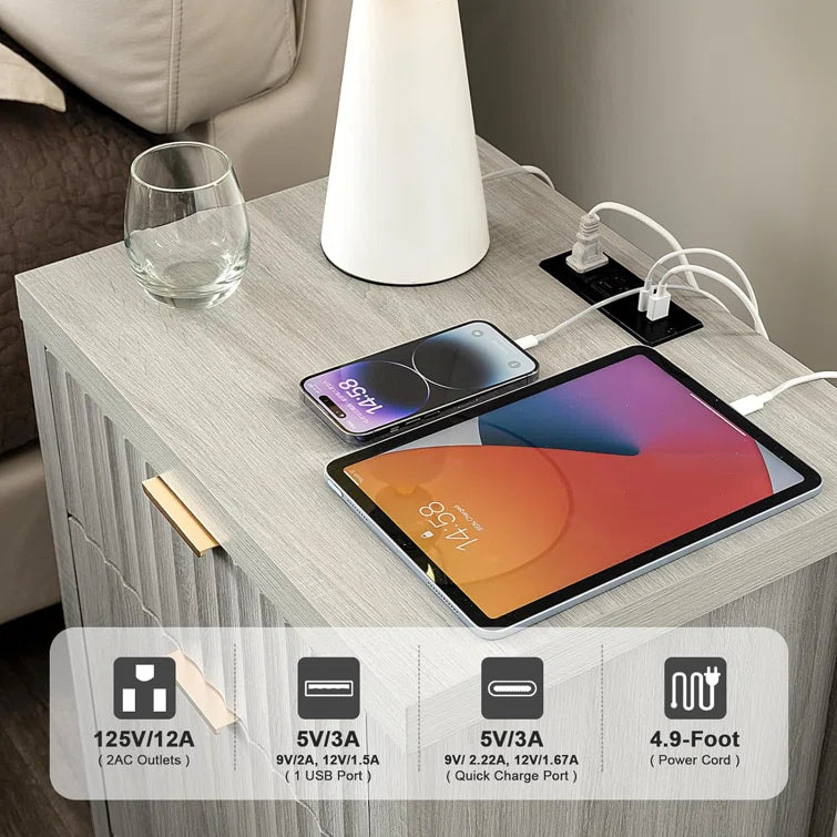 Wooden Fluted 2-Drawer Nightstand with Charging Station