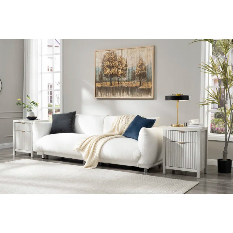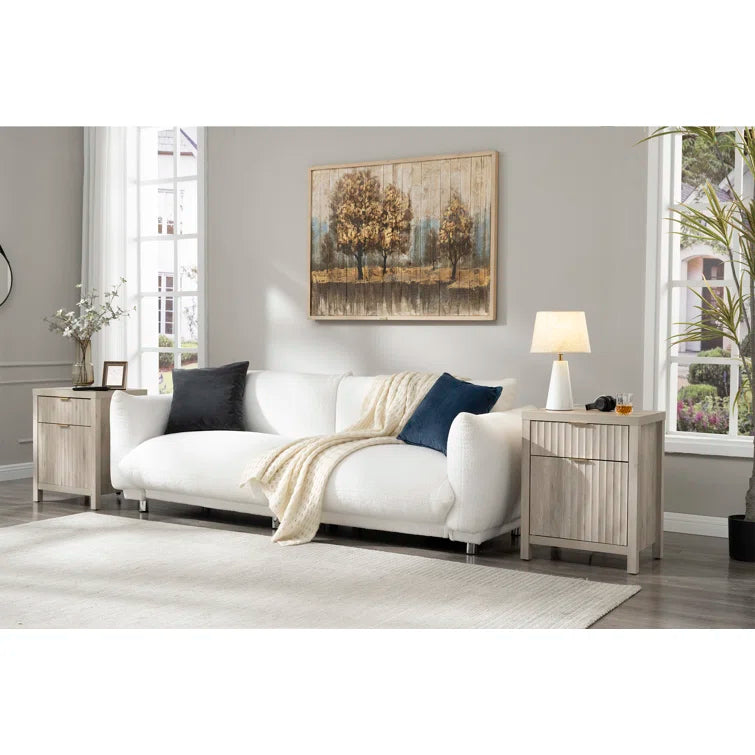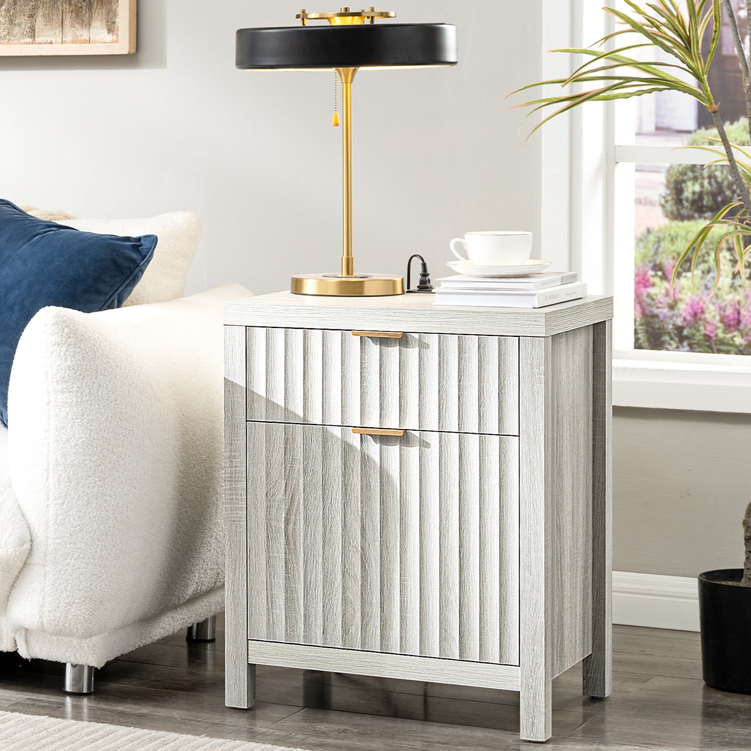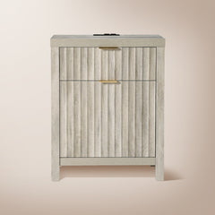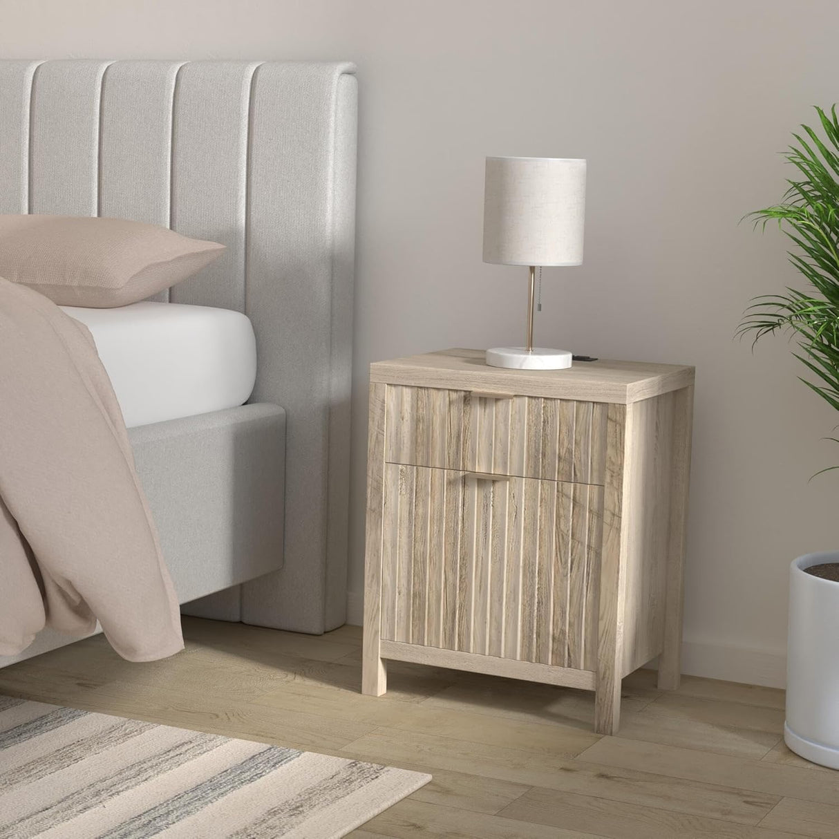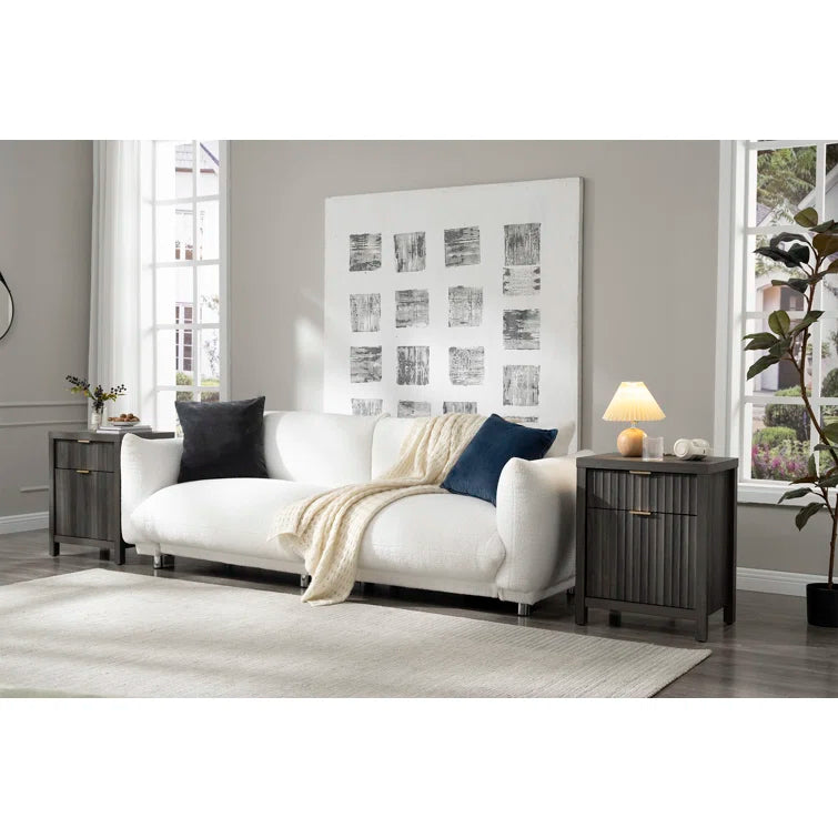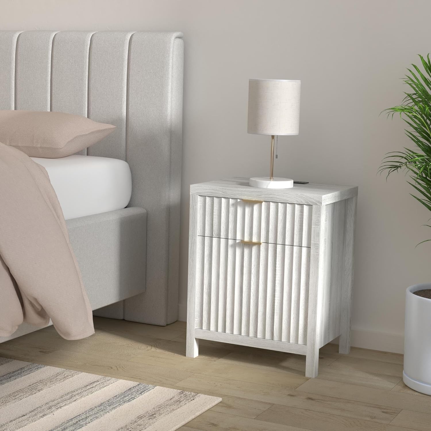 Wooden Fluted 2-Drawer Nightstand with Charging Station