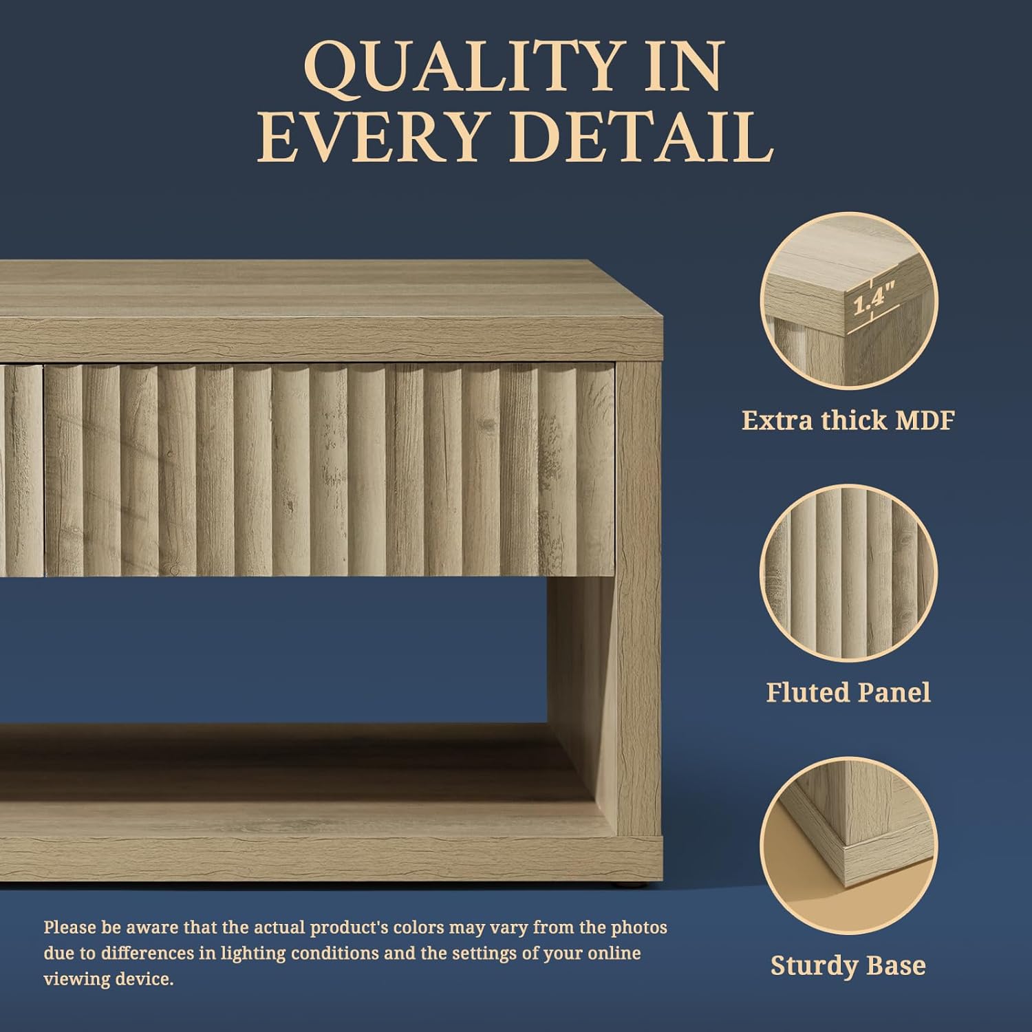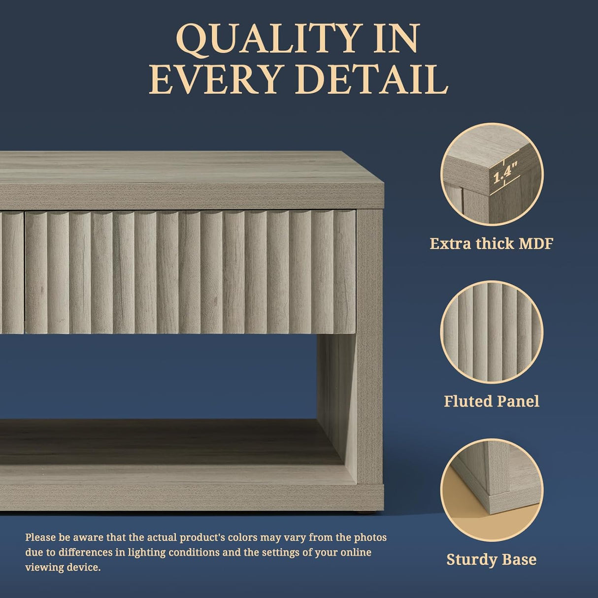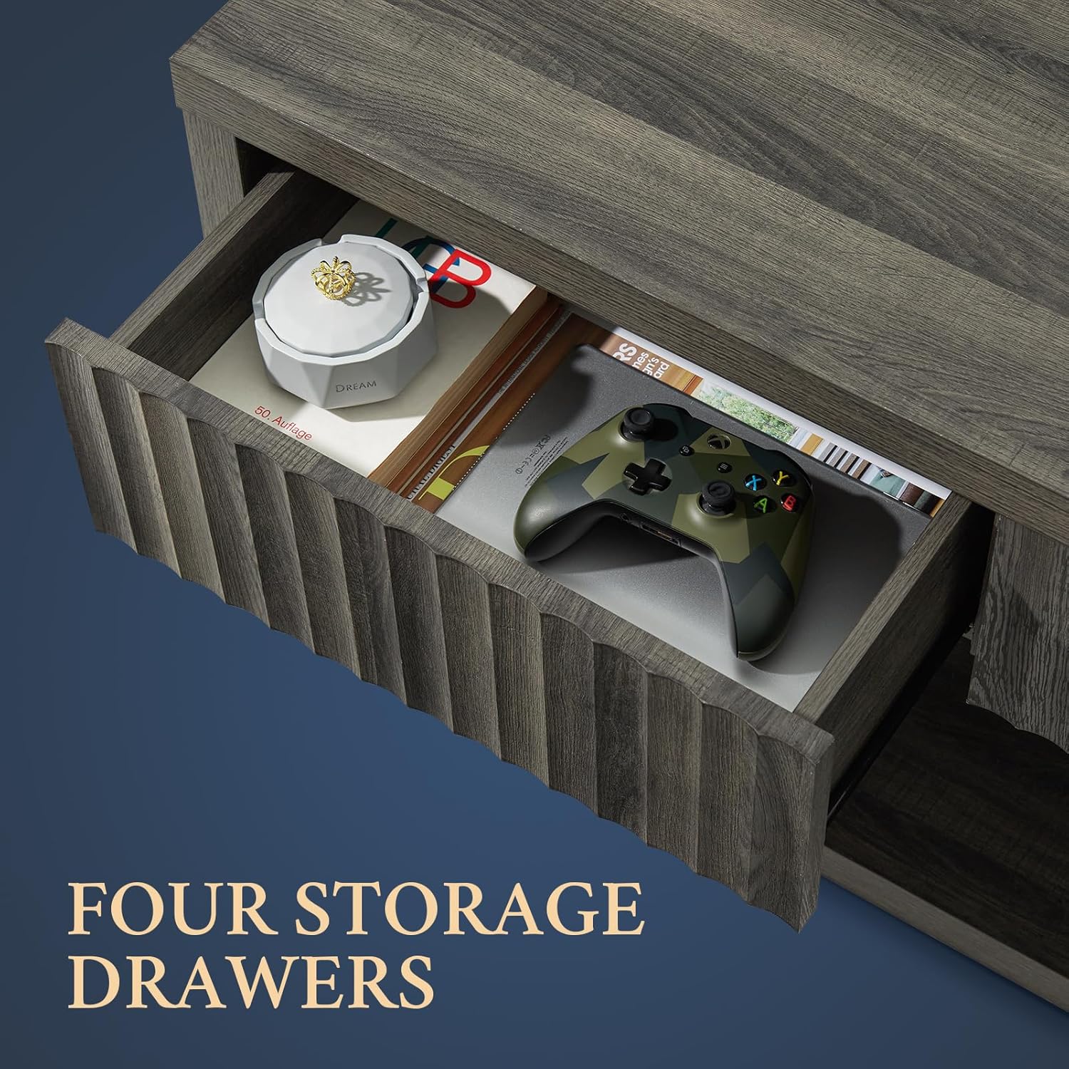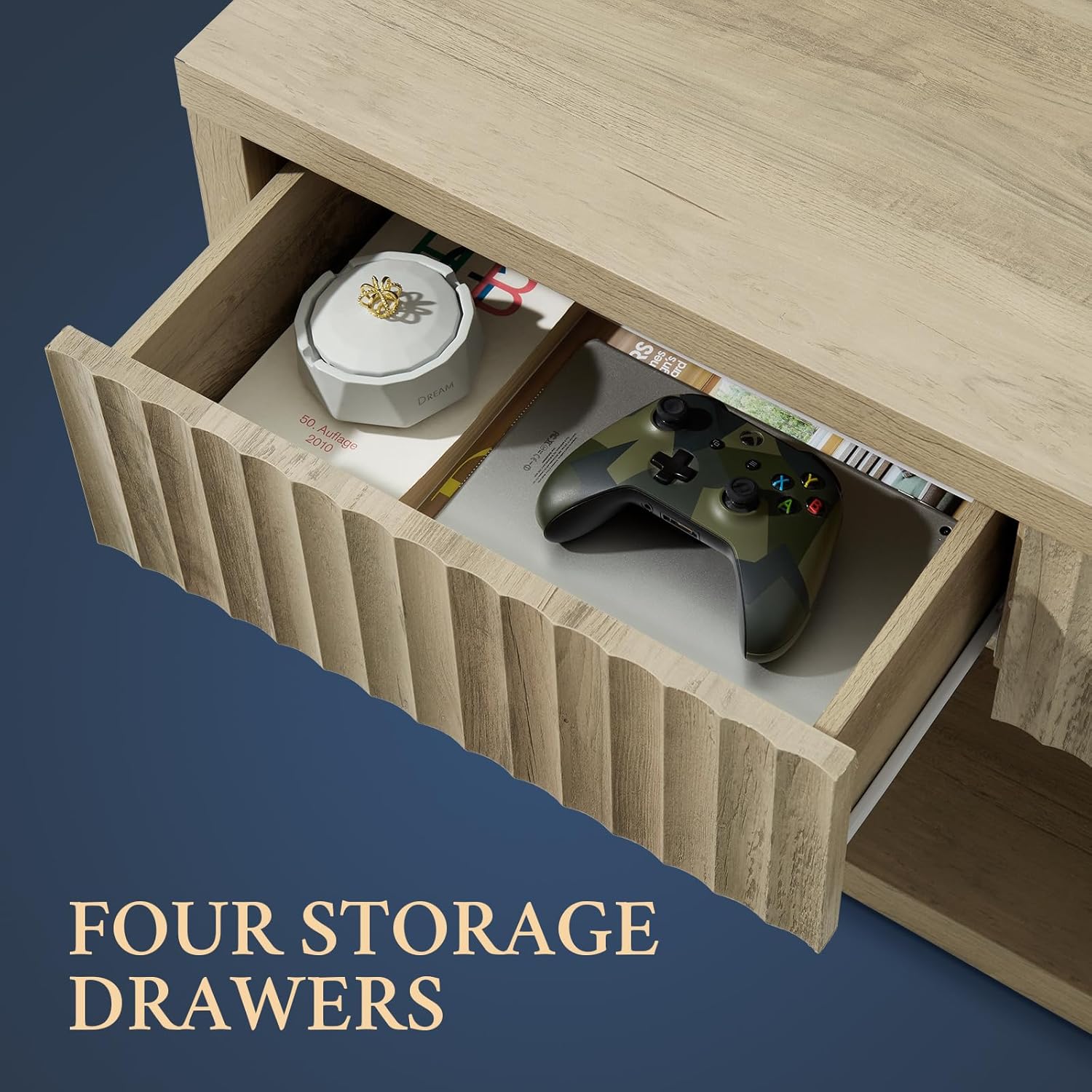 Wooden Fluted Coffee Table with 4 Storage Drawers