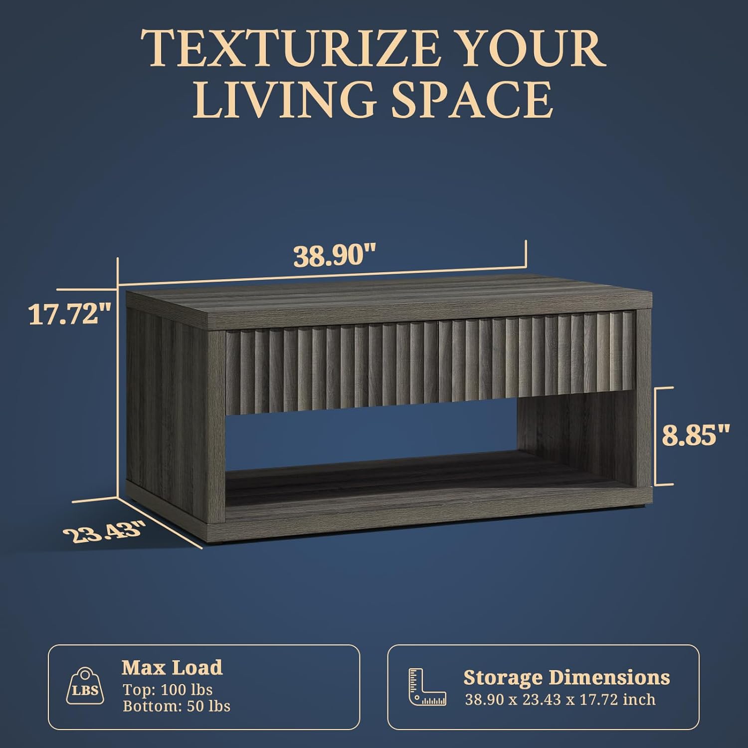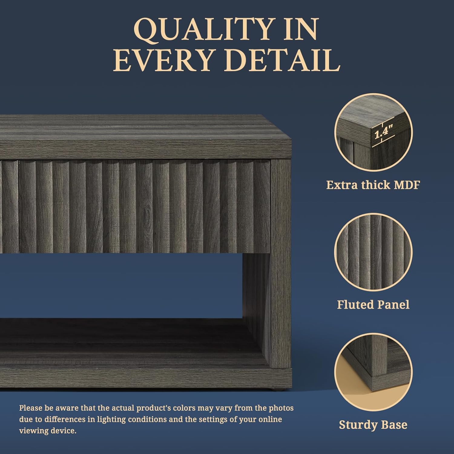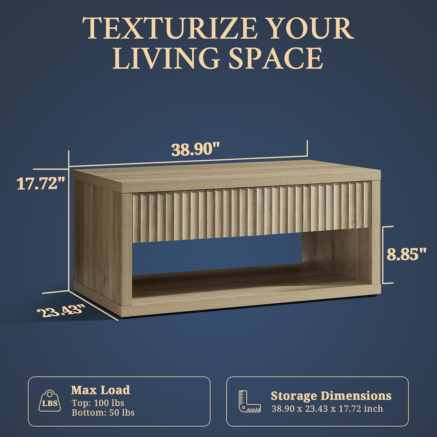Wooden Fluted Coffee Table with 4 Storage Drawers