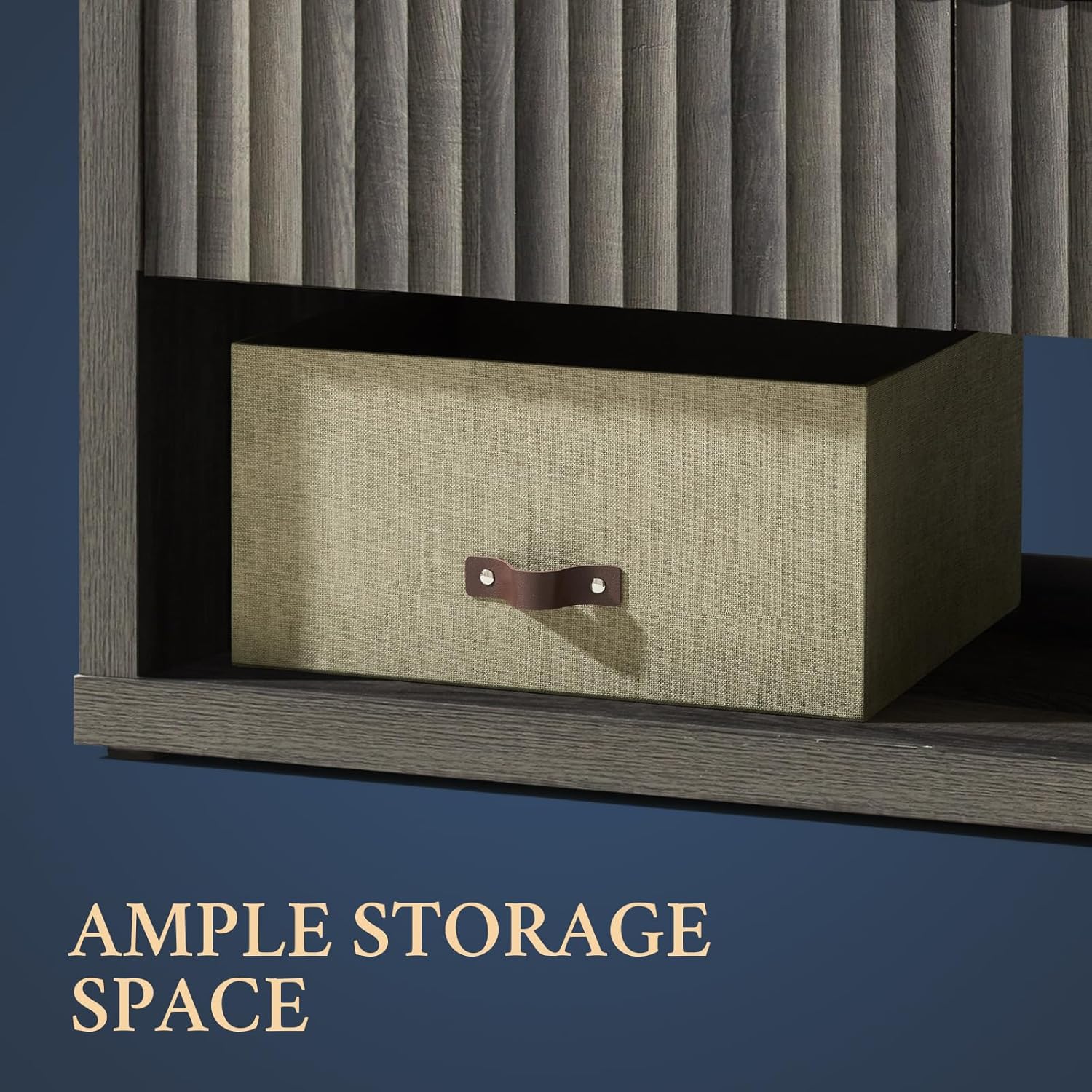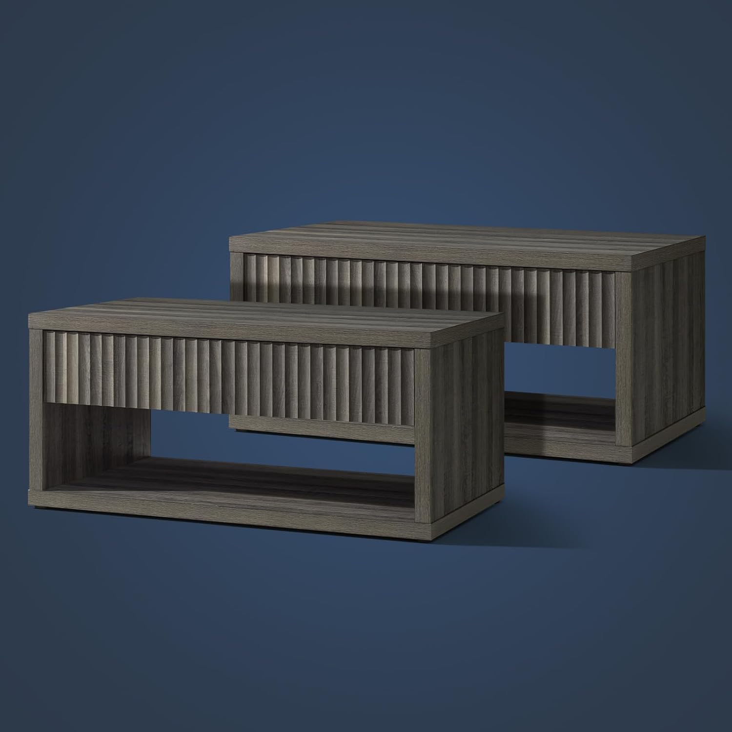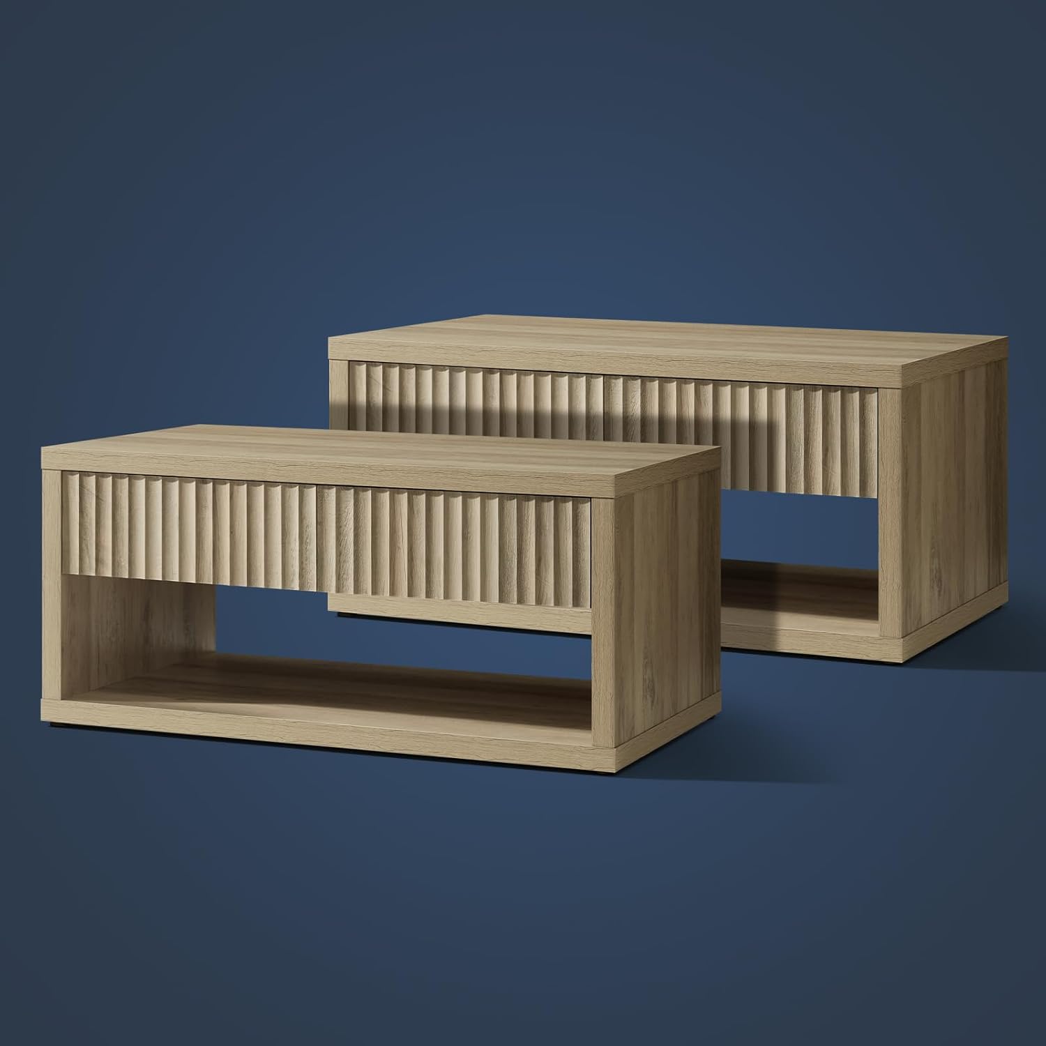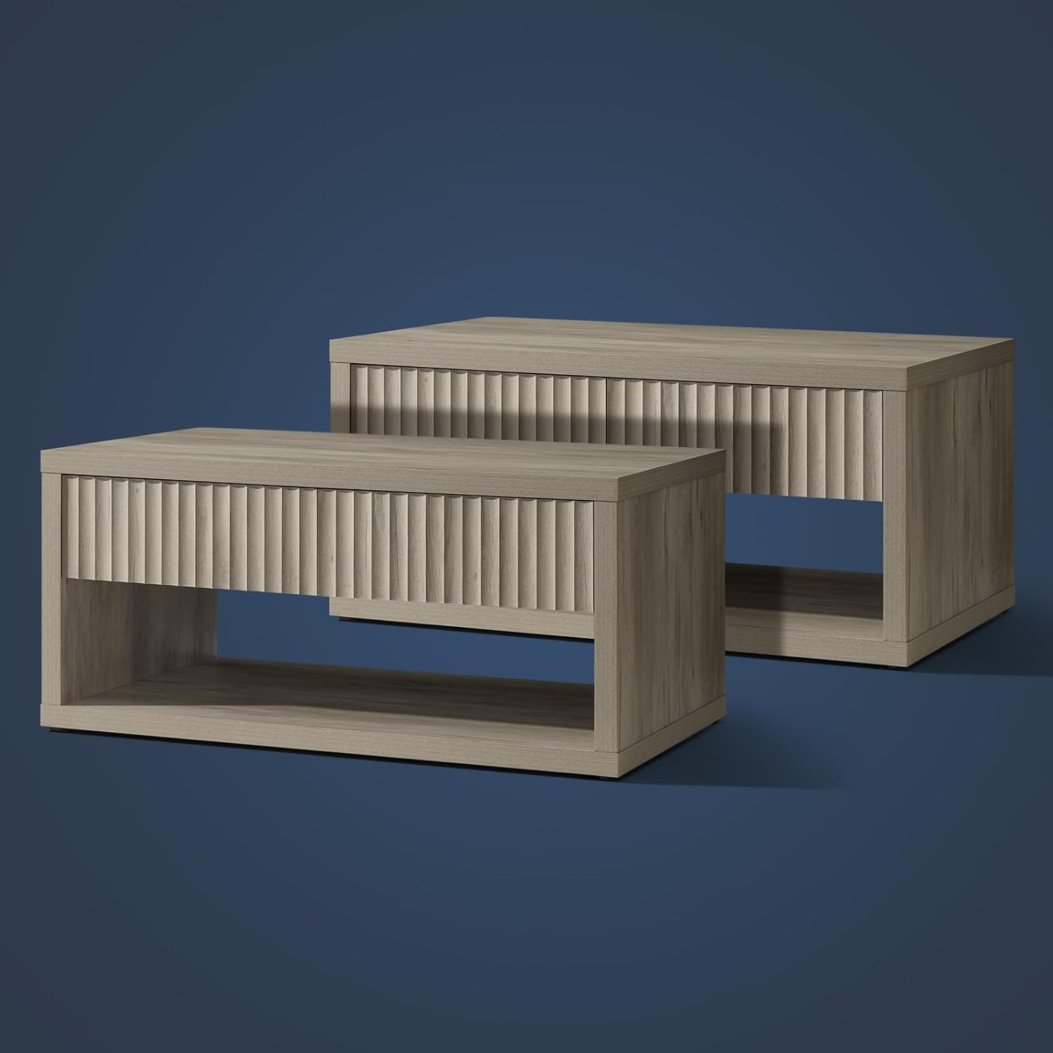 Wooden Fluted Coffee Table with 4 Storage Drawers