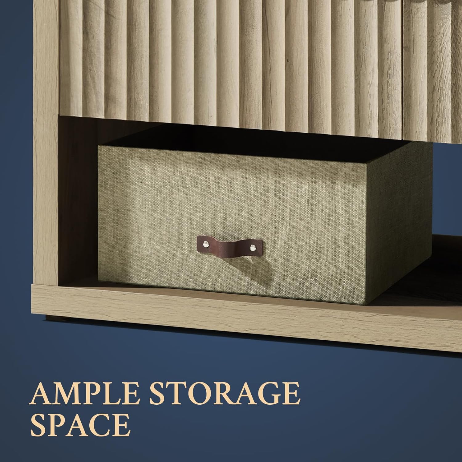 Wooden Fluted Coffee Table with 4 Storage Drawers - Sunwashed Ash Oak / 1PC / Exterior Grade MDF Board is backordered and will ship as soon as it is back in stock.