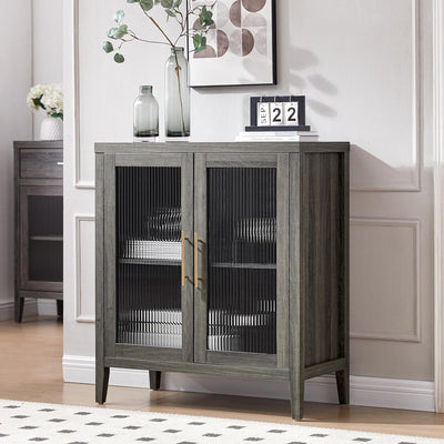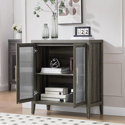 Fluted Reeded Glass Double Doors Accent Entryway Console Cabinet