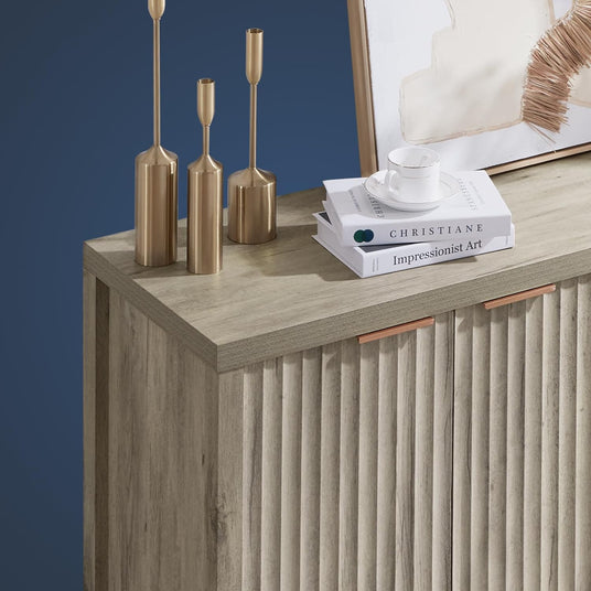The design of this cabinet is amazing! The fluted wood adds texture, and the clean lines give it a contemporary feel. I was able to fit a lot of my dining room essentials inside, and the drawers are perfect for things like serving utensils and tablecloths. A stylish, yet practical addition to my home!