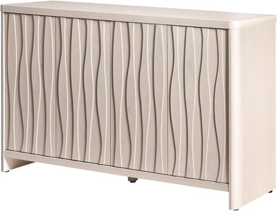 I’m in love with this cabinet! The wave pattern on the doors is so modern and eye-catching, and the four doors give me plenty of storage space for all my things. It fits perfectly in my living room and looks even better in person. Worth every penny!