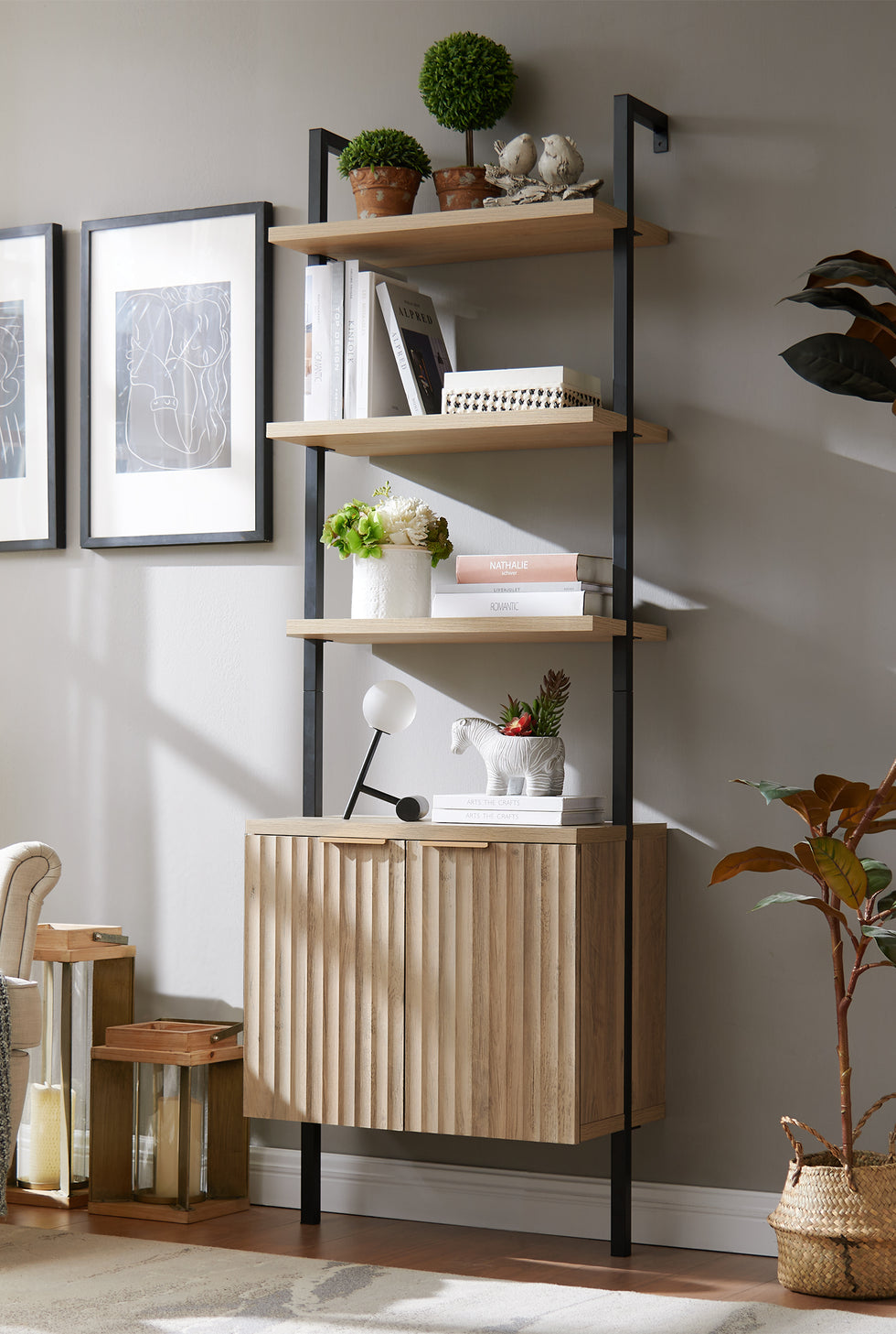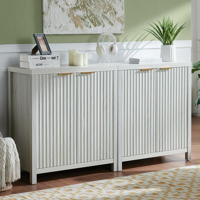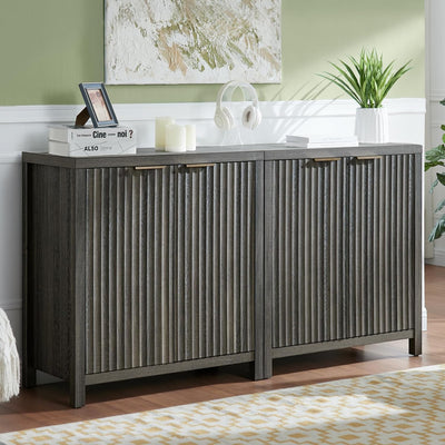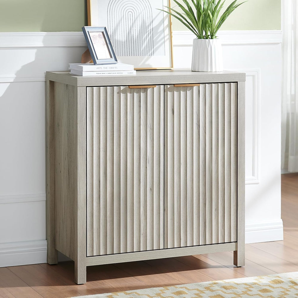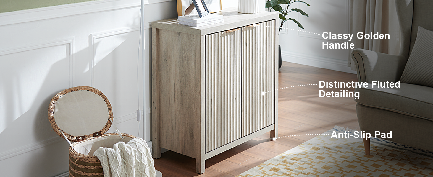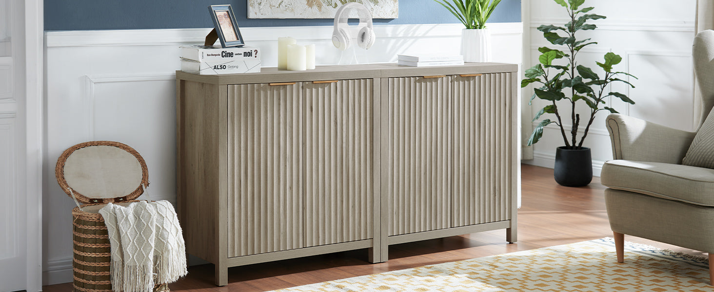 Wooden Fluted Double-Door Buffet Cabinet - Sunwashed Ash Oak / 1PC / Exterior Grade MDF Board is backordered and will ship as soon as it is back in stock.
