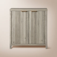 Wooden Fluted Storage Cabinet with Double Doors and 3 Drawers