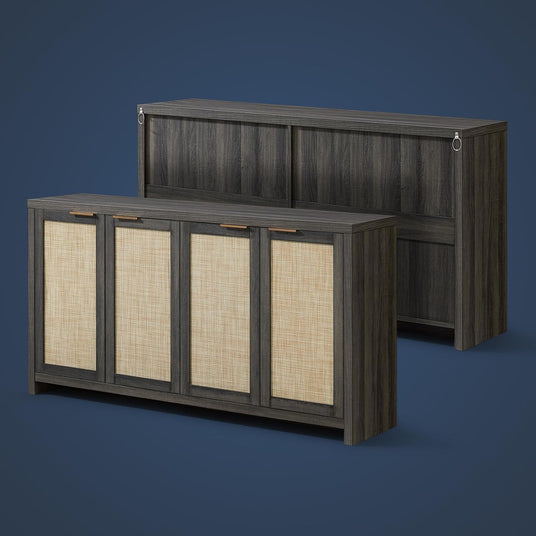 Rattan 4-Door Storage Sideboard Cabinet - Weathered Oak / 1PC / Exterior Grade MDF Board is backordered and will ship as soon as it is back in stock.