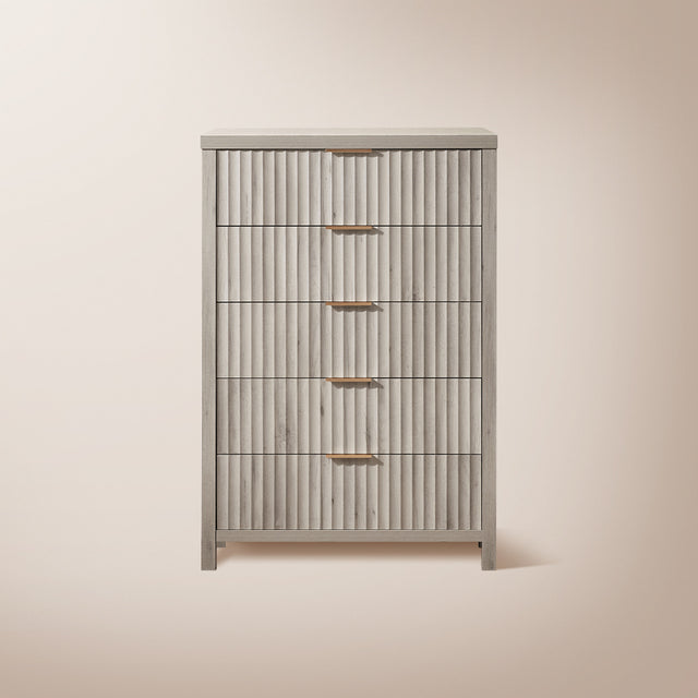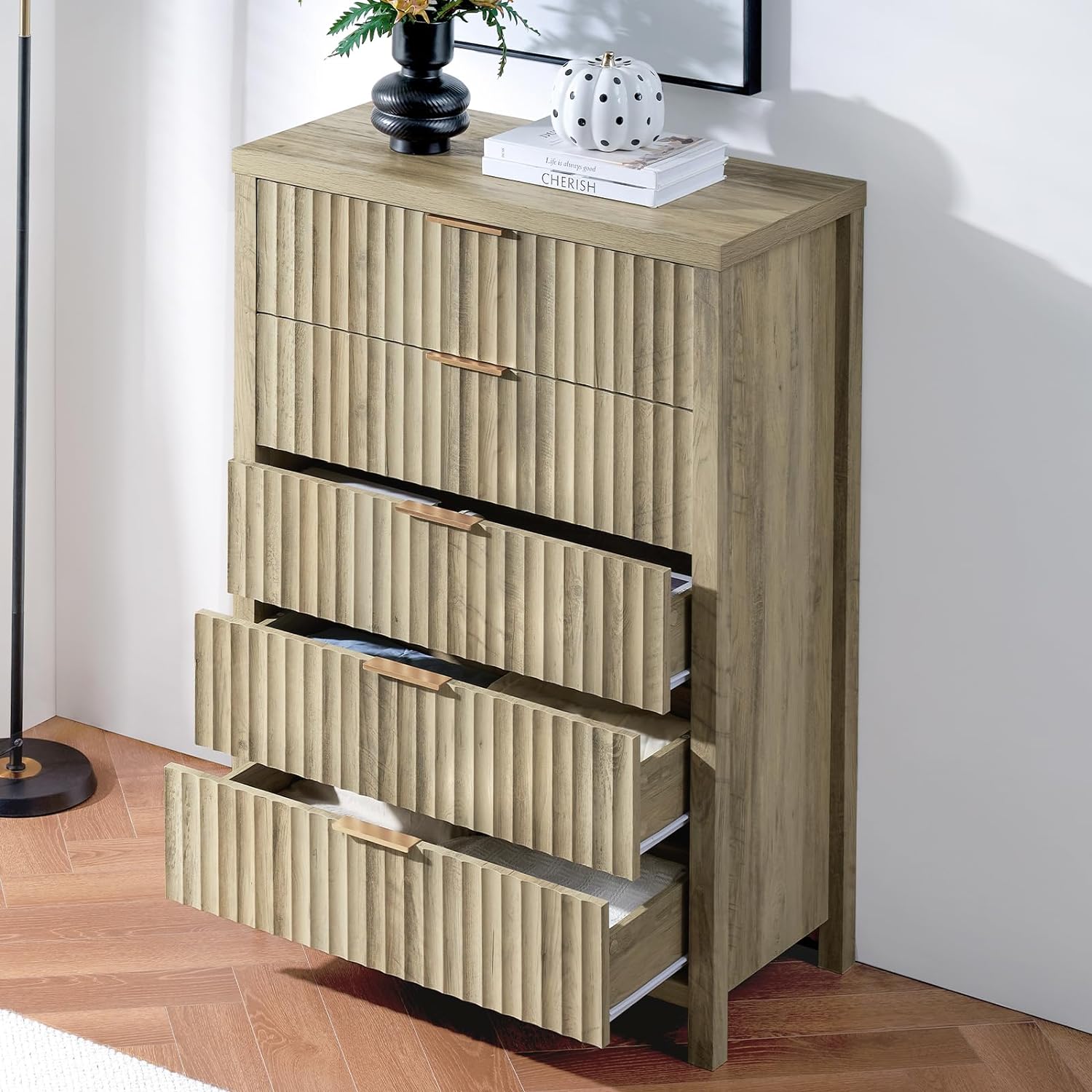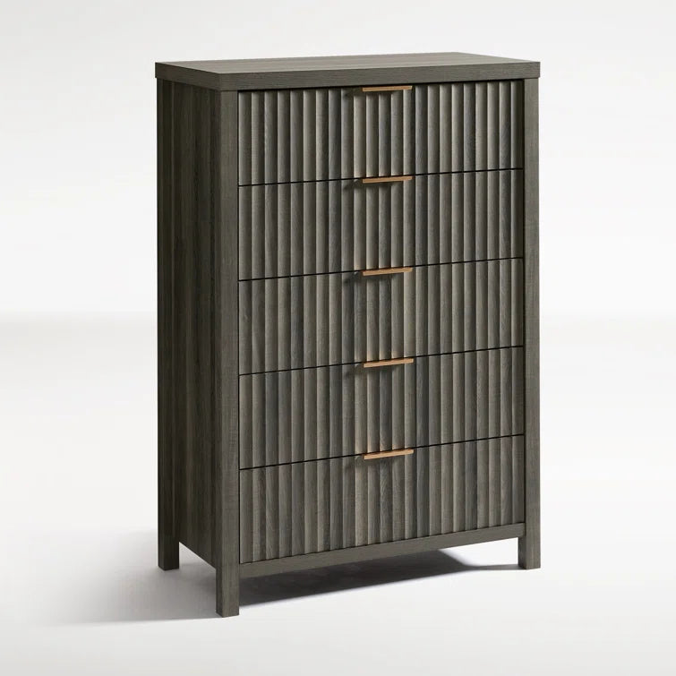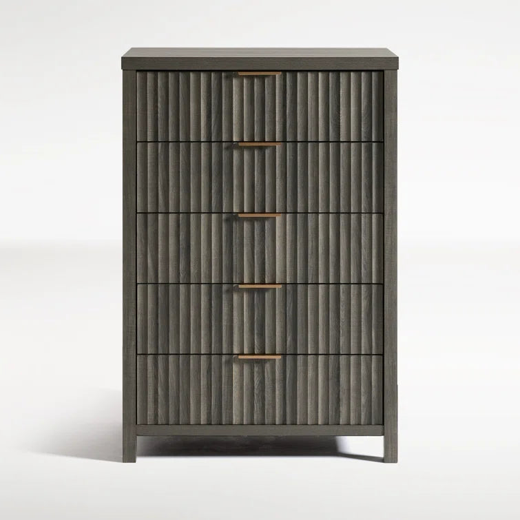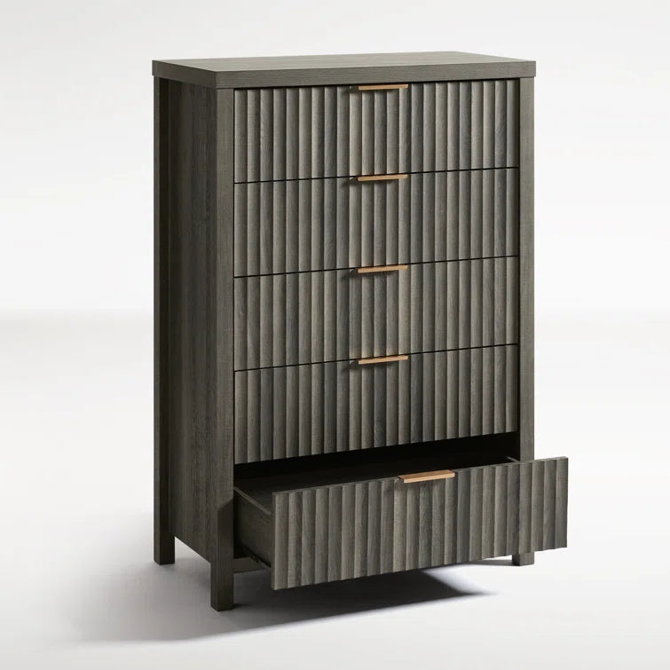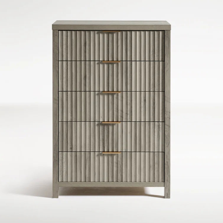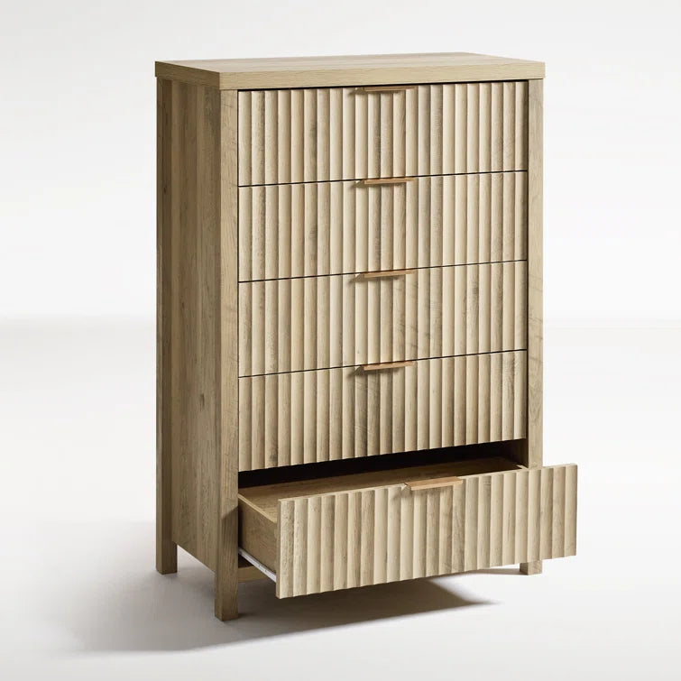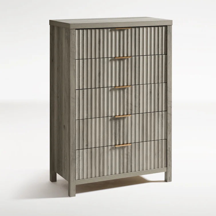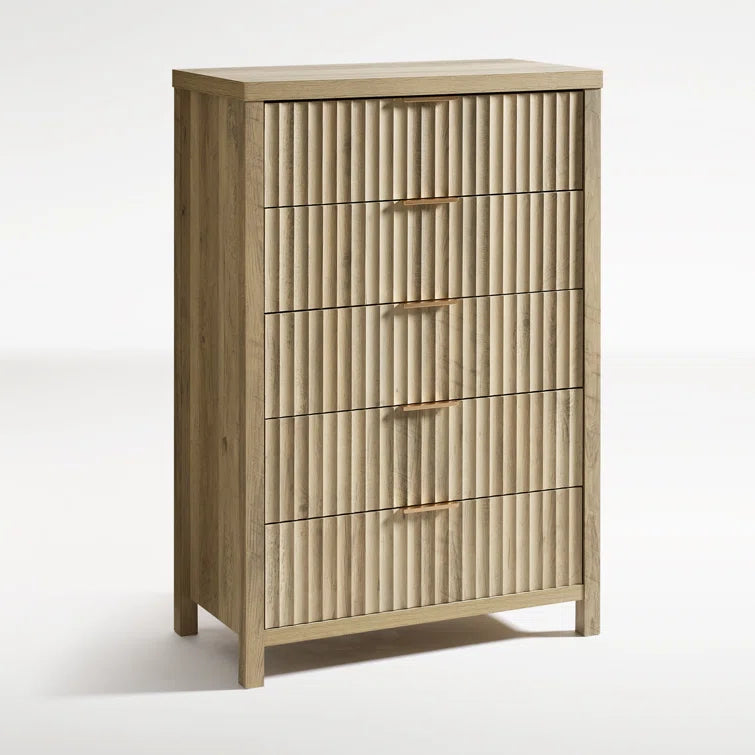 Wooden Fluted 5-Drawer Chest with Curved Silhouette Design
