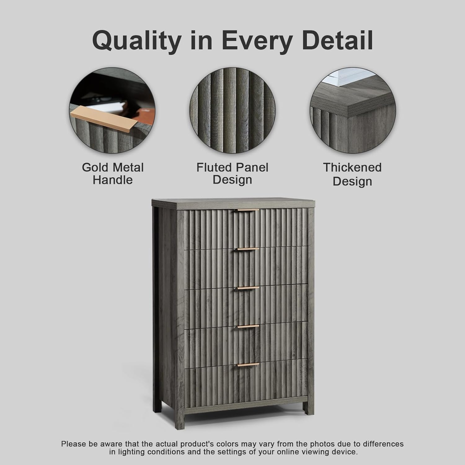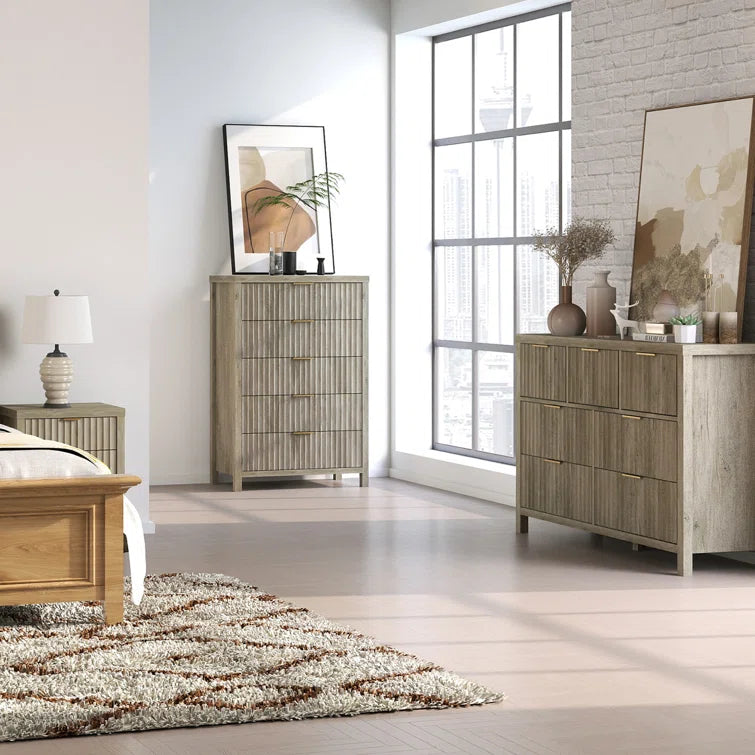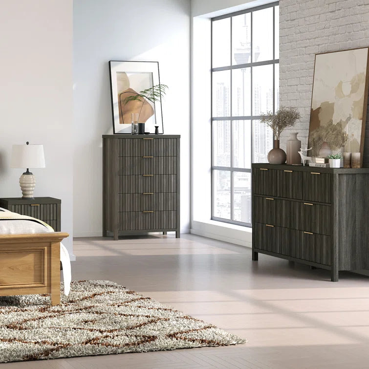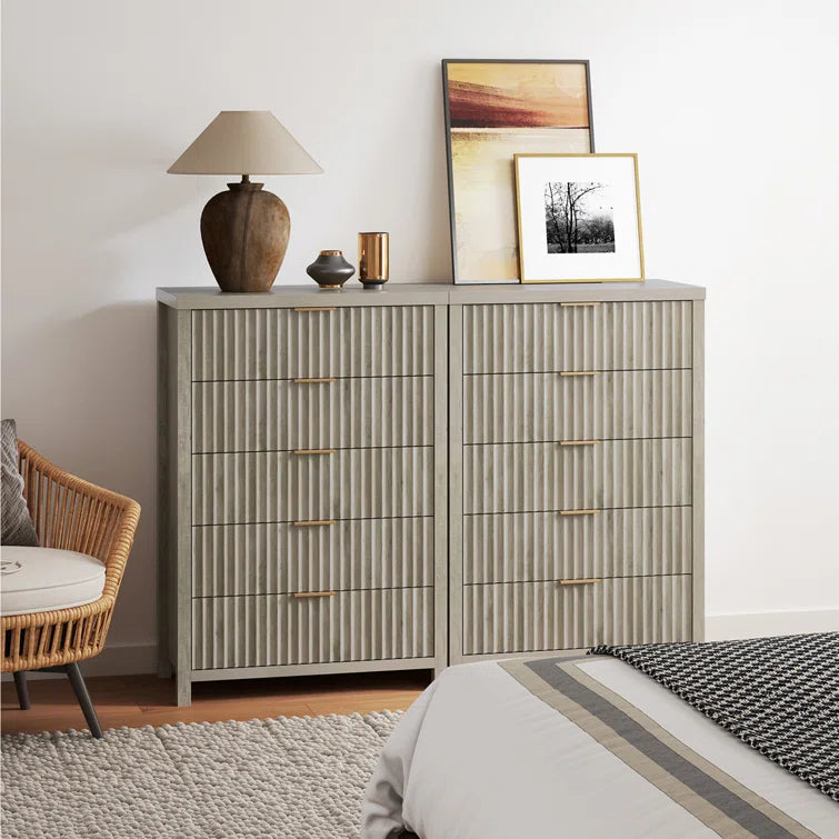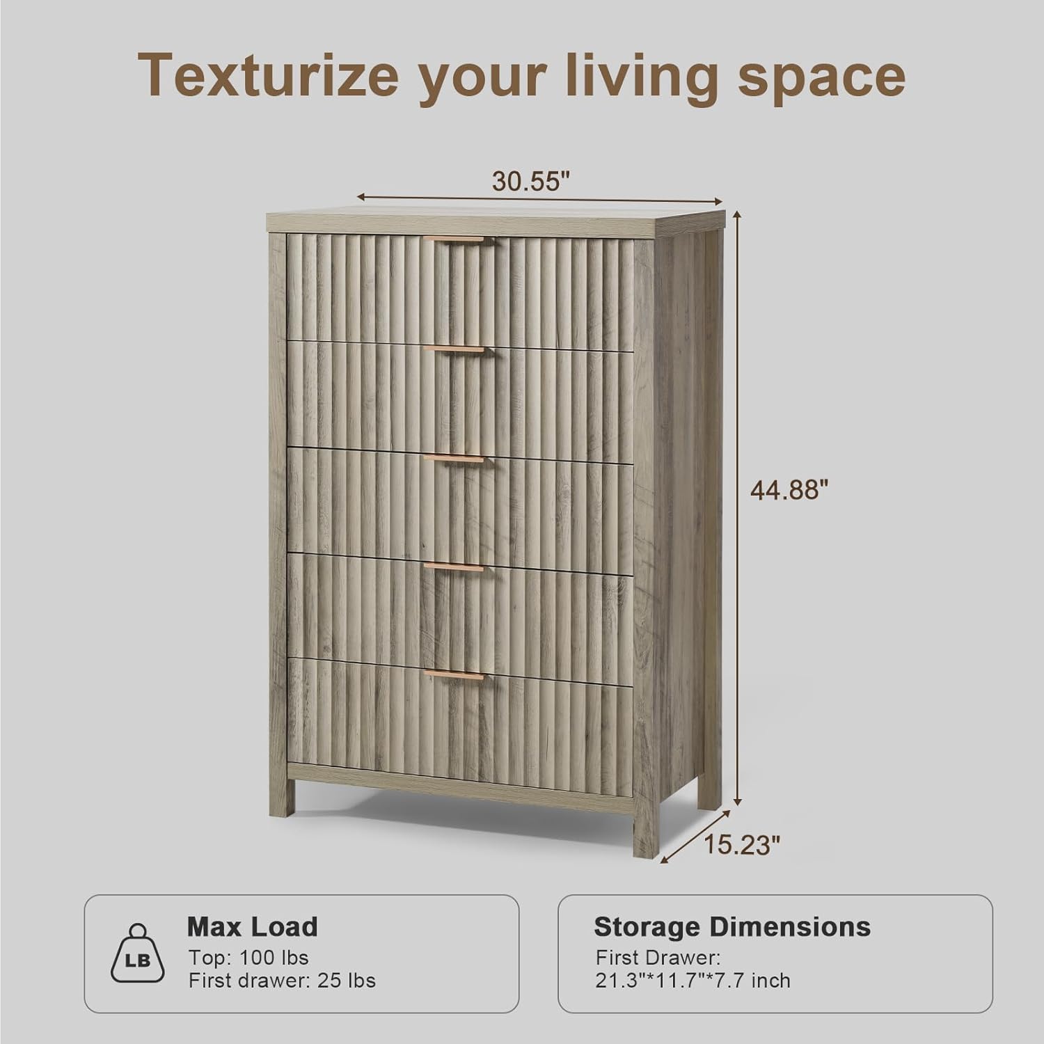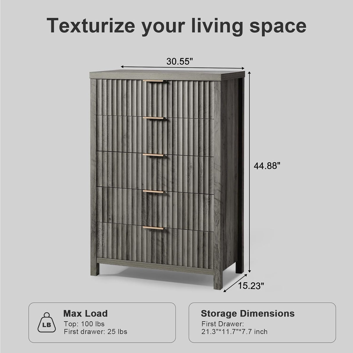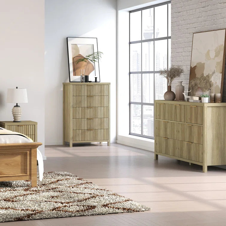 Wooden Fluted 5-Drawer Chest with Curved Silhouette Design