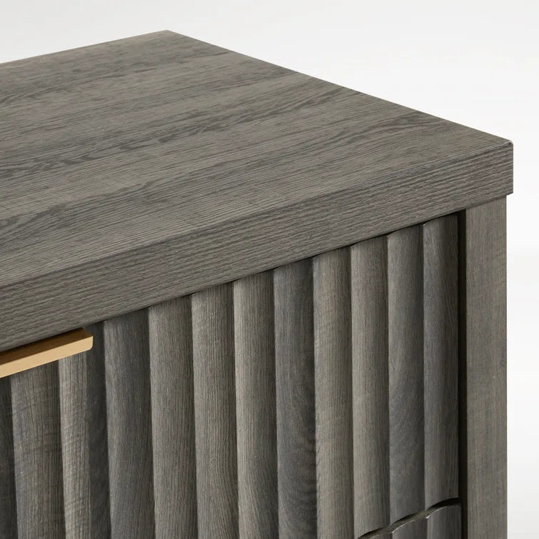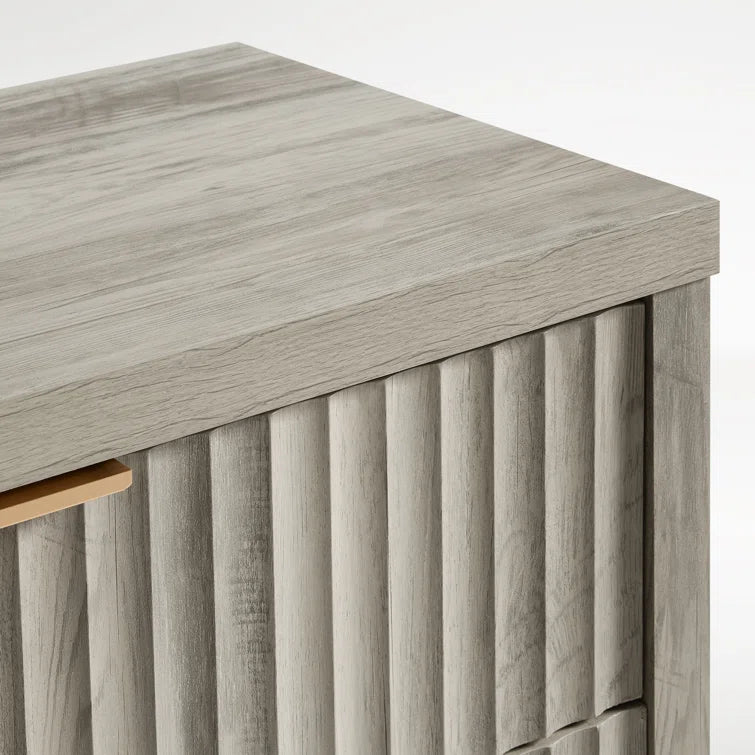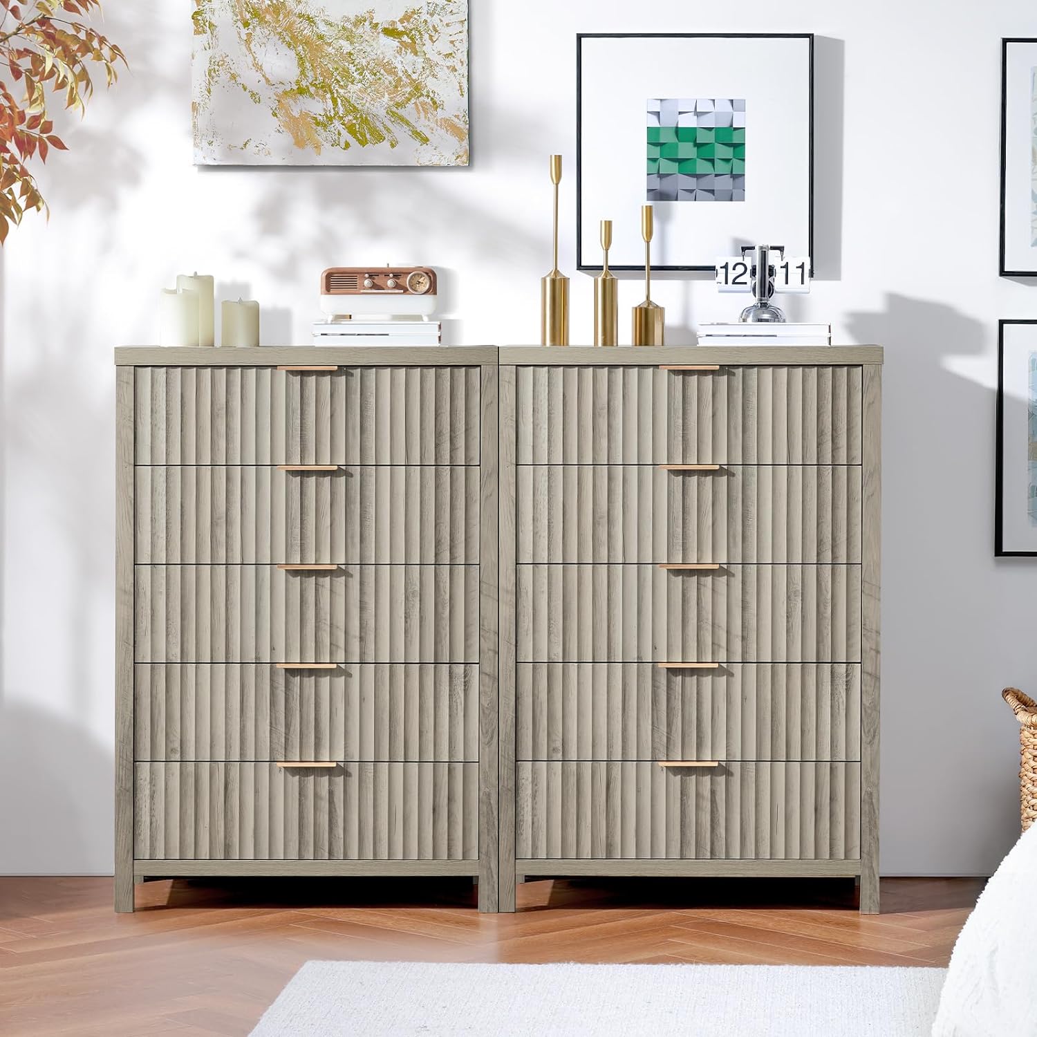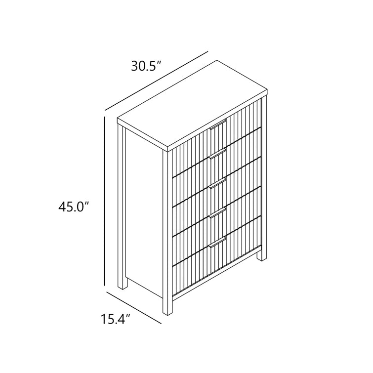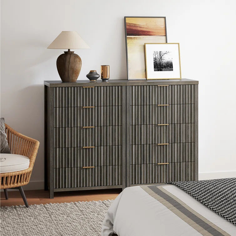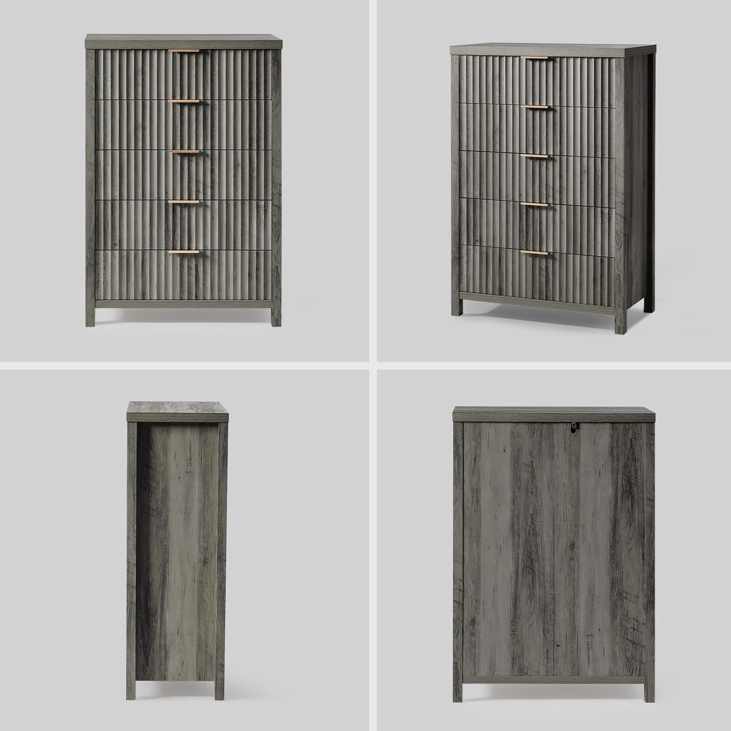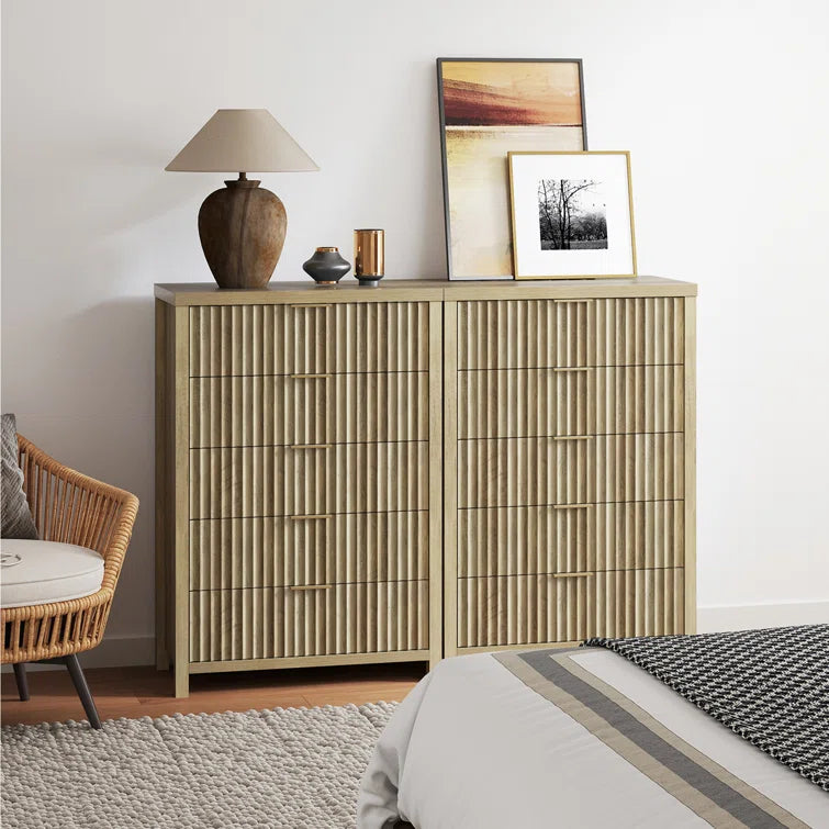 Wooden Fluted 5-Drawer Chest with Curved Silhouette Design