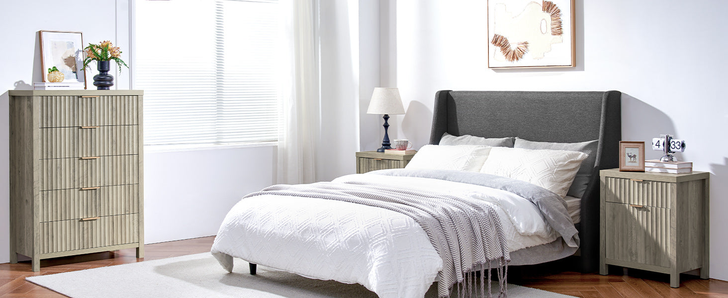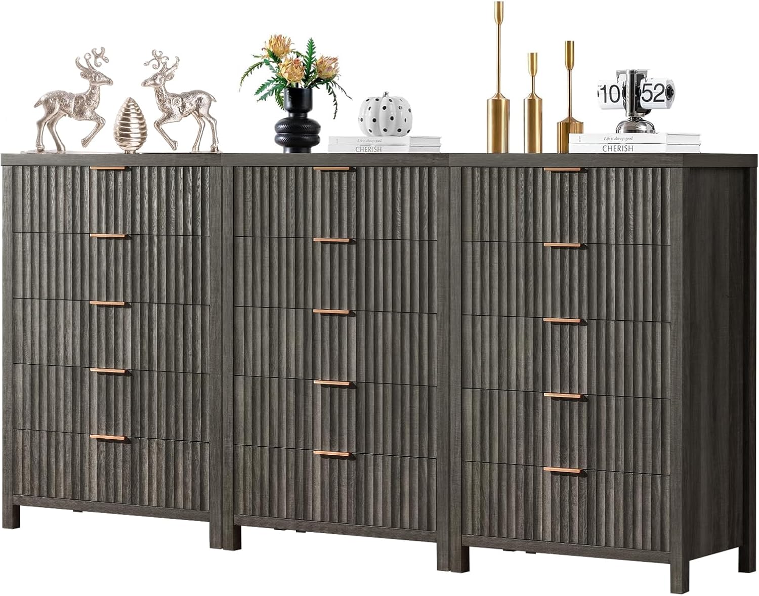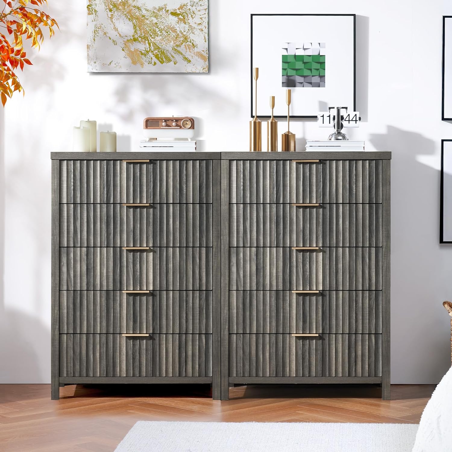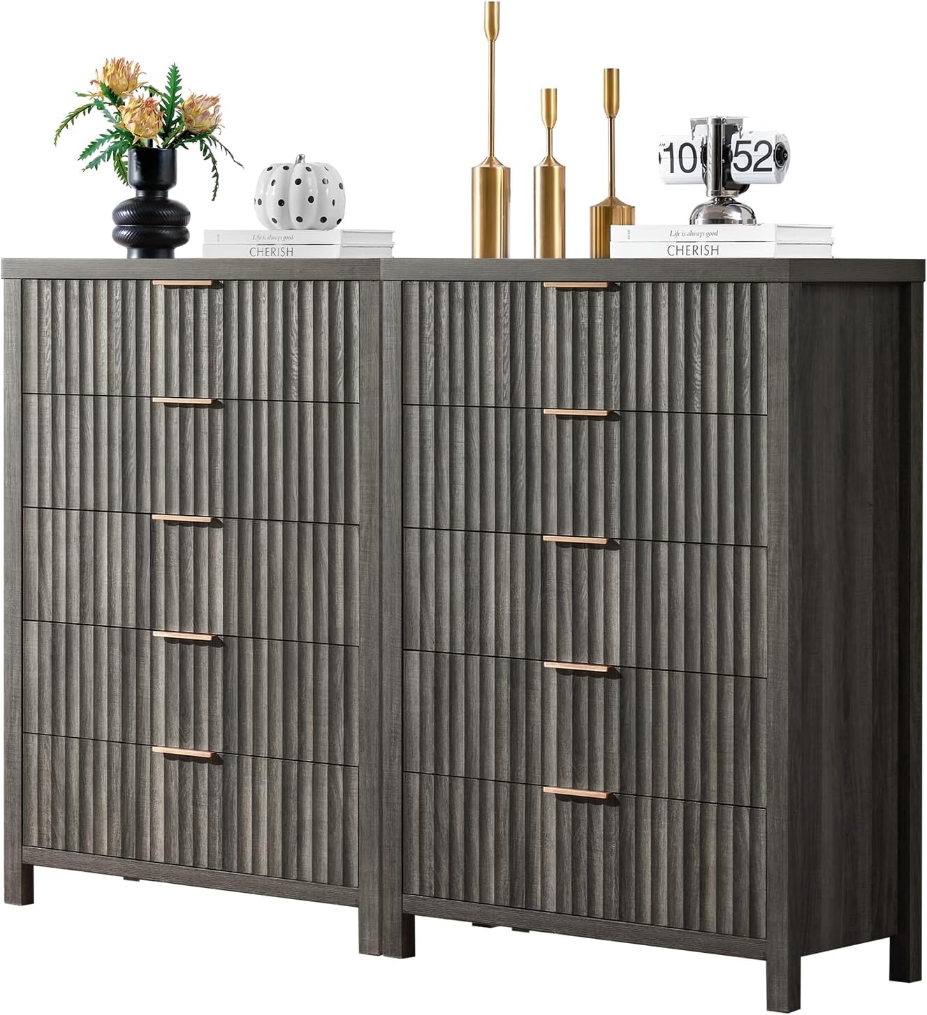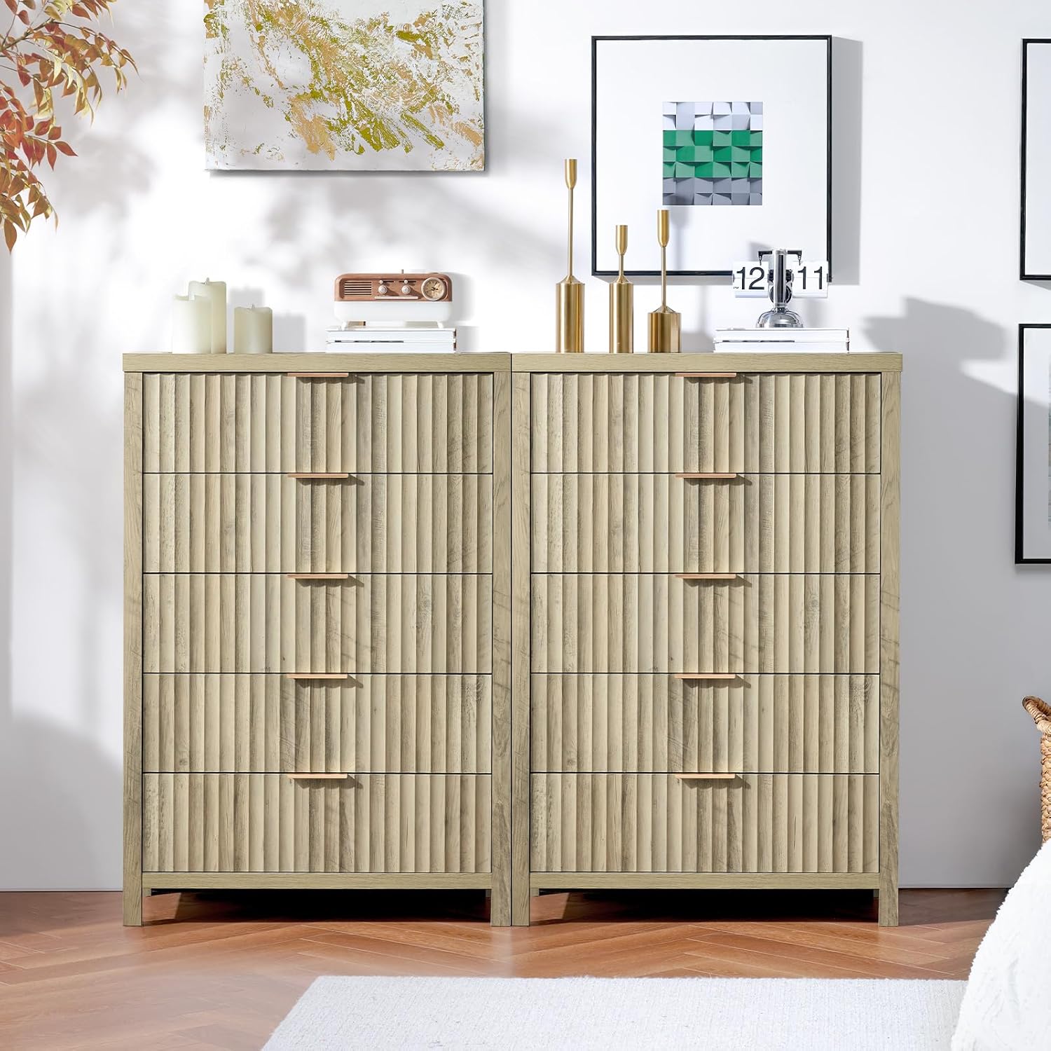 Wooden Fluted 5-Drawer Chest with Curved Silhouette Design
