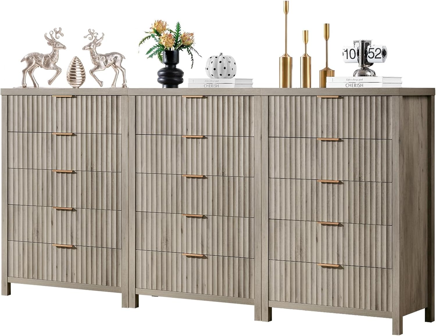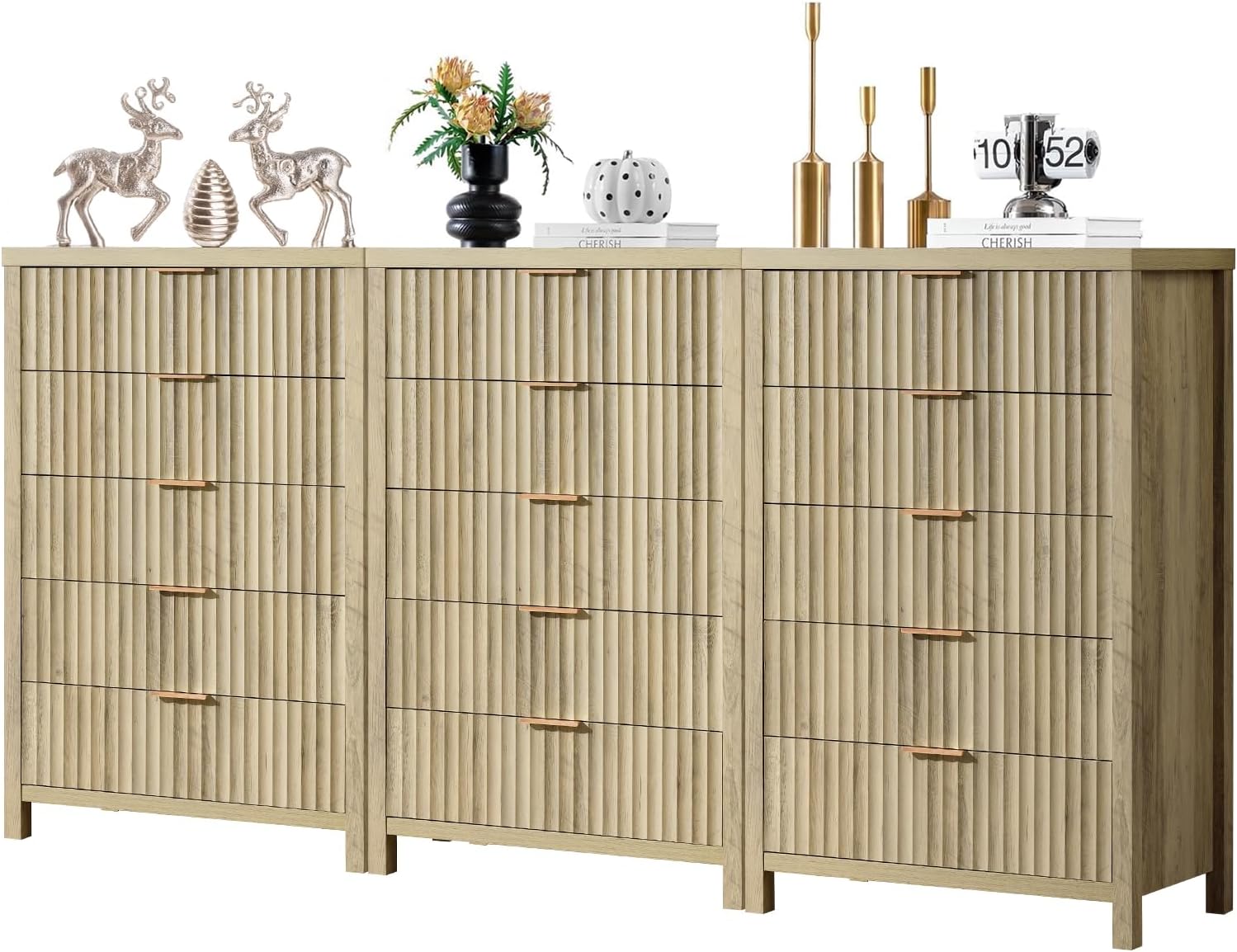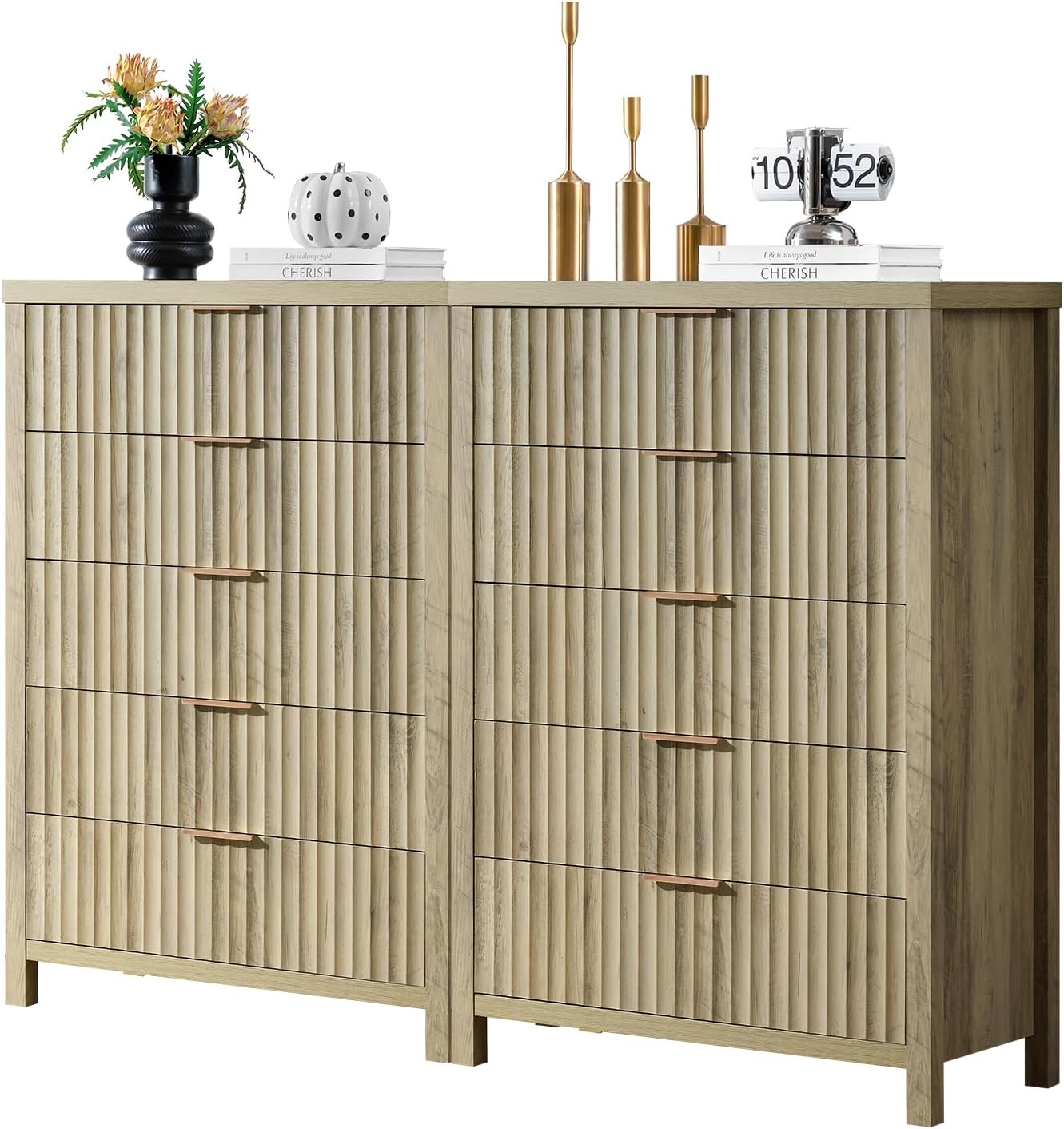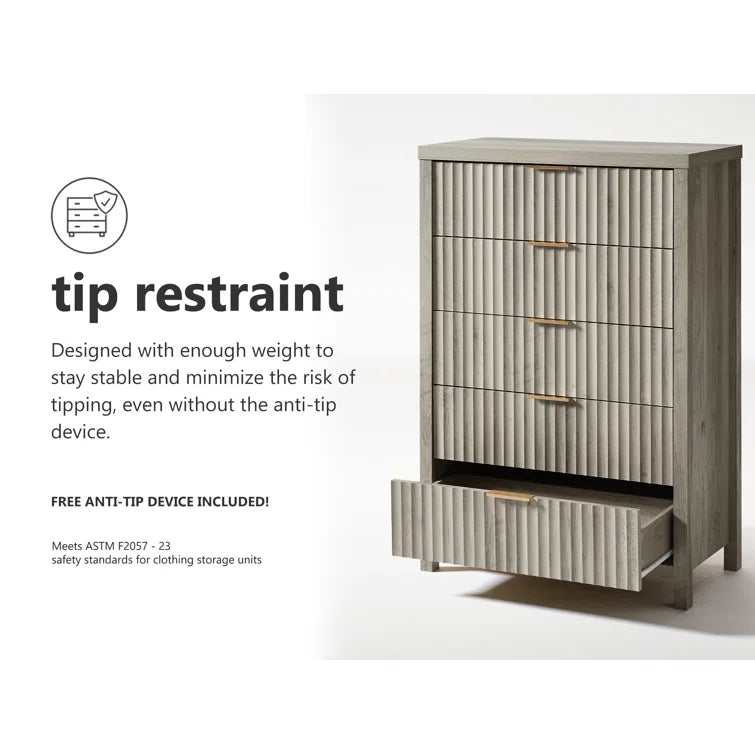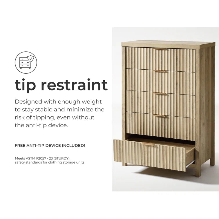 Wooden Fluted 5-Drawer Chest with Curved Silhouette Design - Sunwashed Ash Oak / 1PC / Exterior Grade MDF Board is backordered and will ship as soon as it is back in stock.
