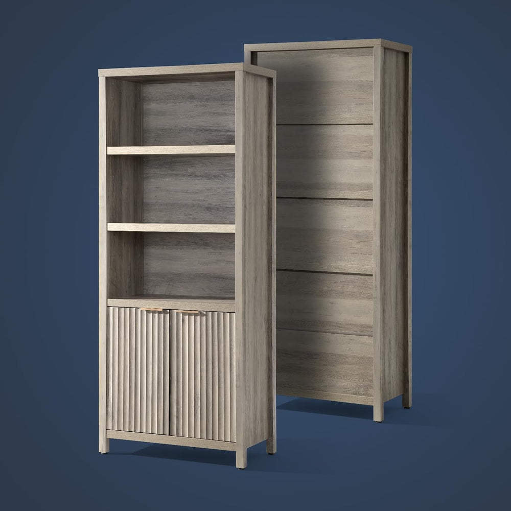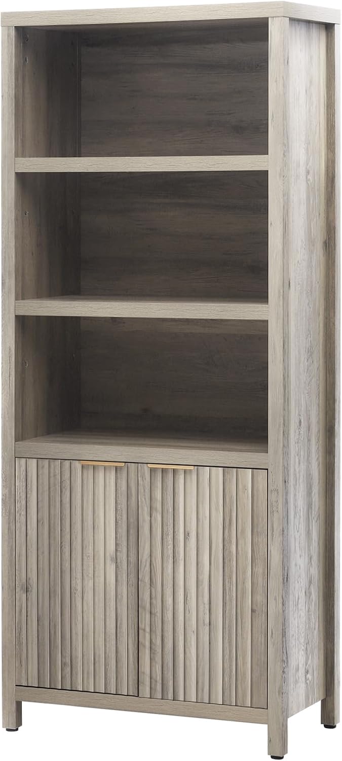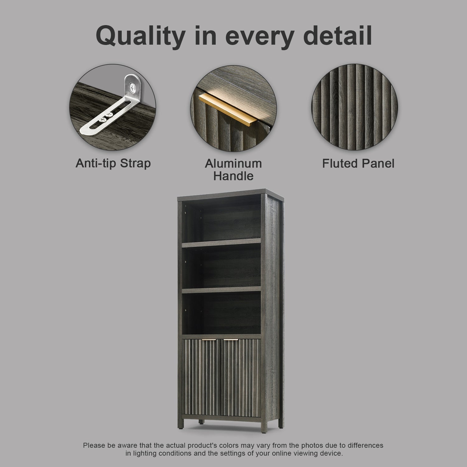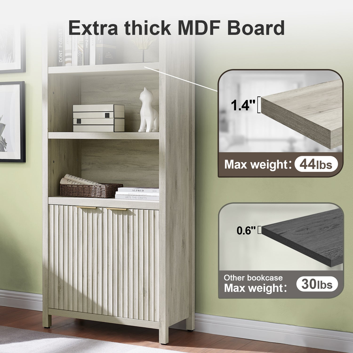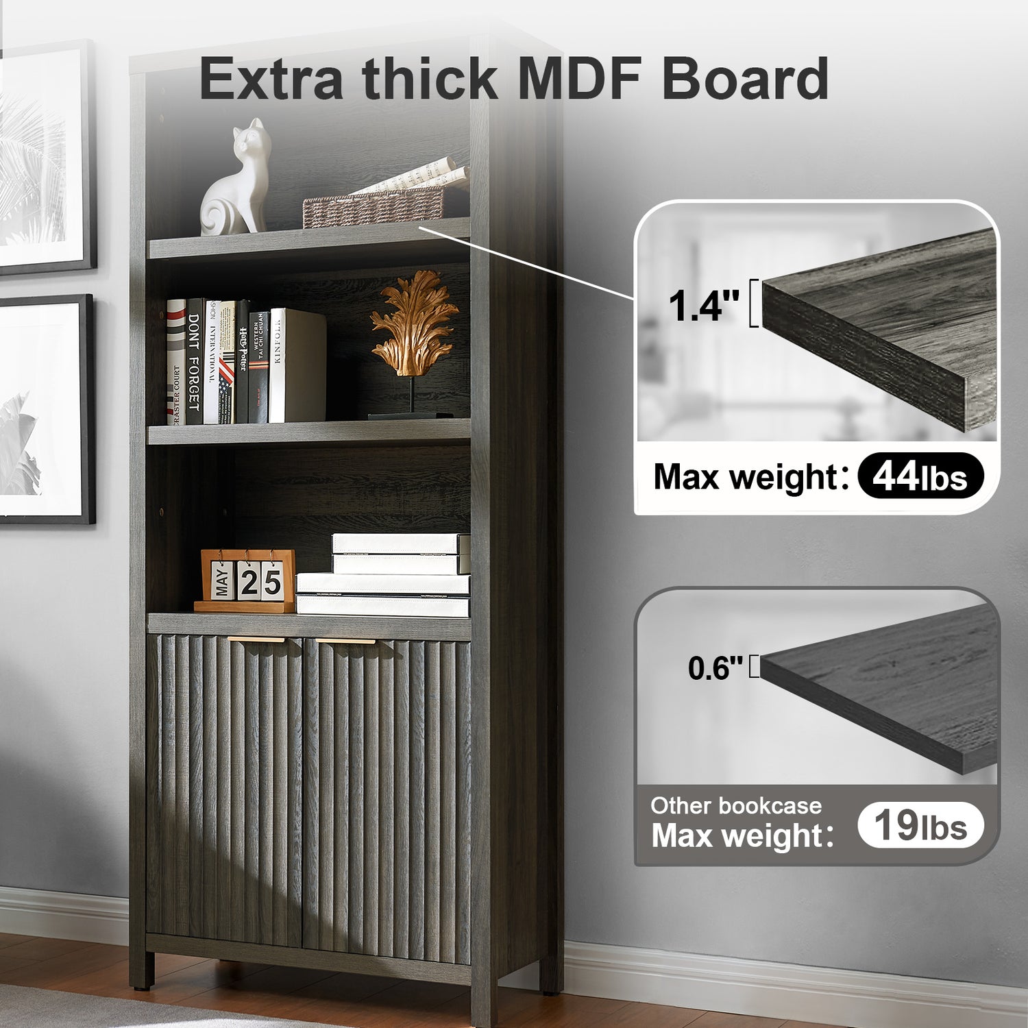 Wooden Fluted 5-Tier Tall Bookcase Cabinet with Doors - Grey Oak / 1PC / Exterior Grade MDF Board is backordered and will ship as soon as it is back in stock.
